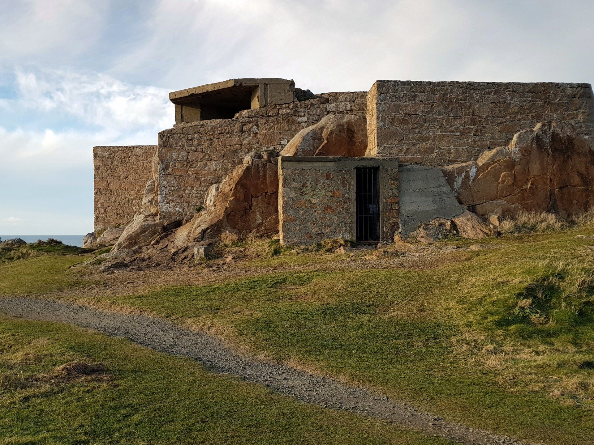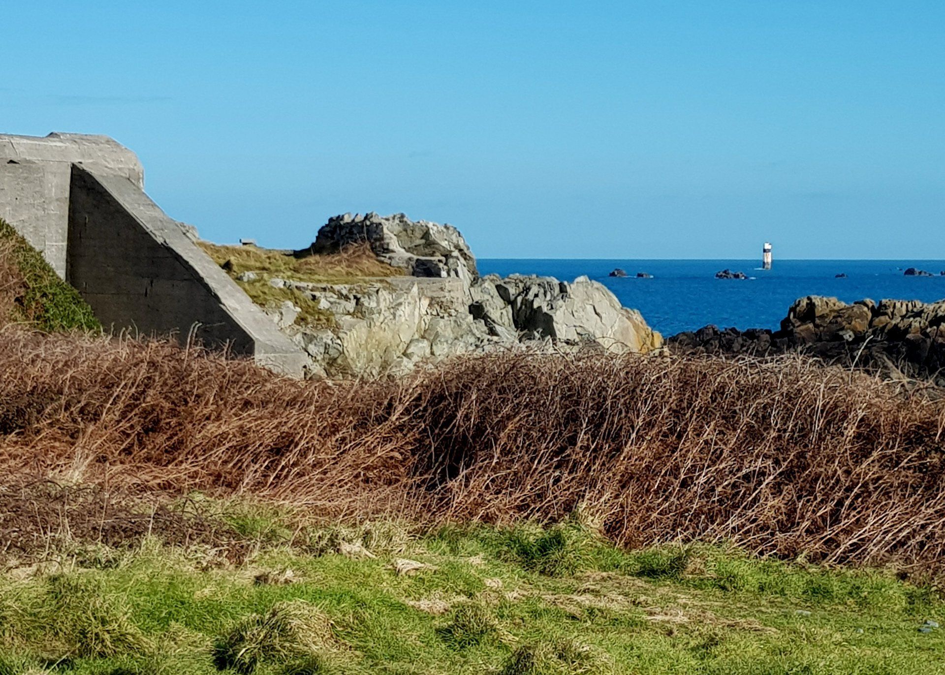 Loophole Tower No. 5 is a fine example and proudly flies the Guernsey flag, it’s slightly raised location offering a fine panoramic of Pembroke Bay. This is a bit of an aberration in these parts. Everything else is wild and exposed, left to its own devices, but Pembroke sits with a long expanse of sandy beach and is a popular destination Whilst the older set of fortification on the Island date back to the late 18th/early 19th century, the 21st century introduced a new set of imposing structures, those built by the occupying German forces during WWII. Pembroke has a German defence structure that to this day holds back an attacking force – the sea! Unfortunately, this old sea wall is crumbling and major debate rages on how to move forward.