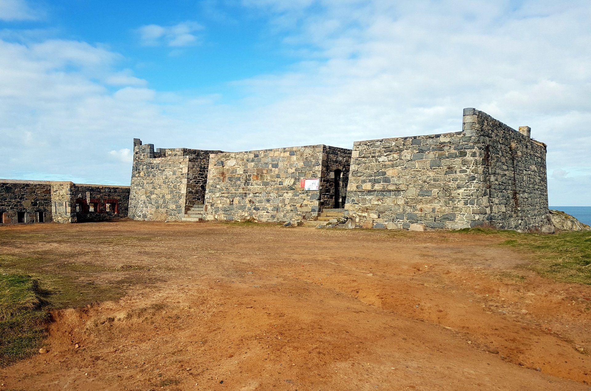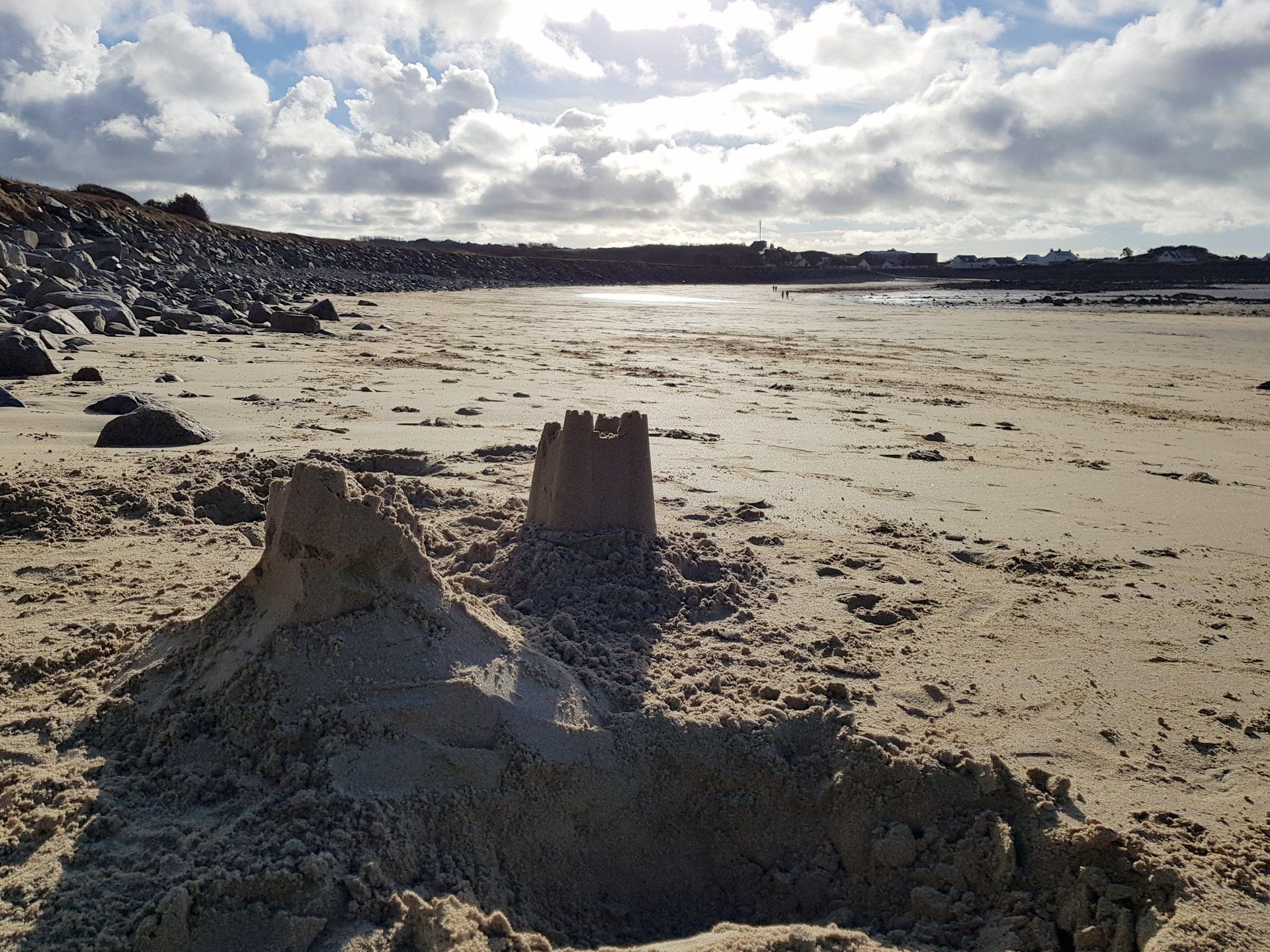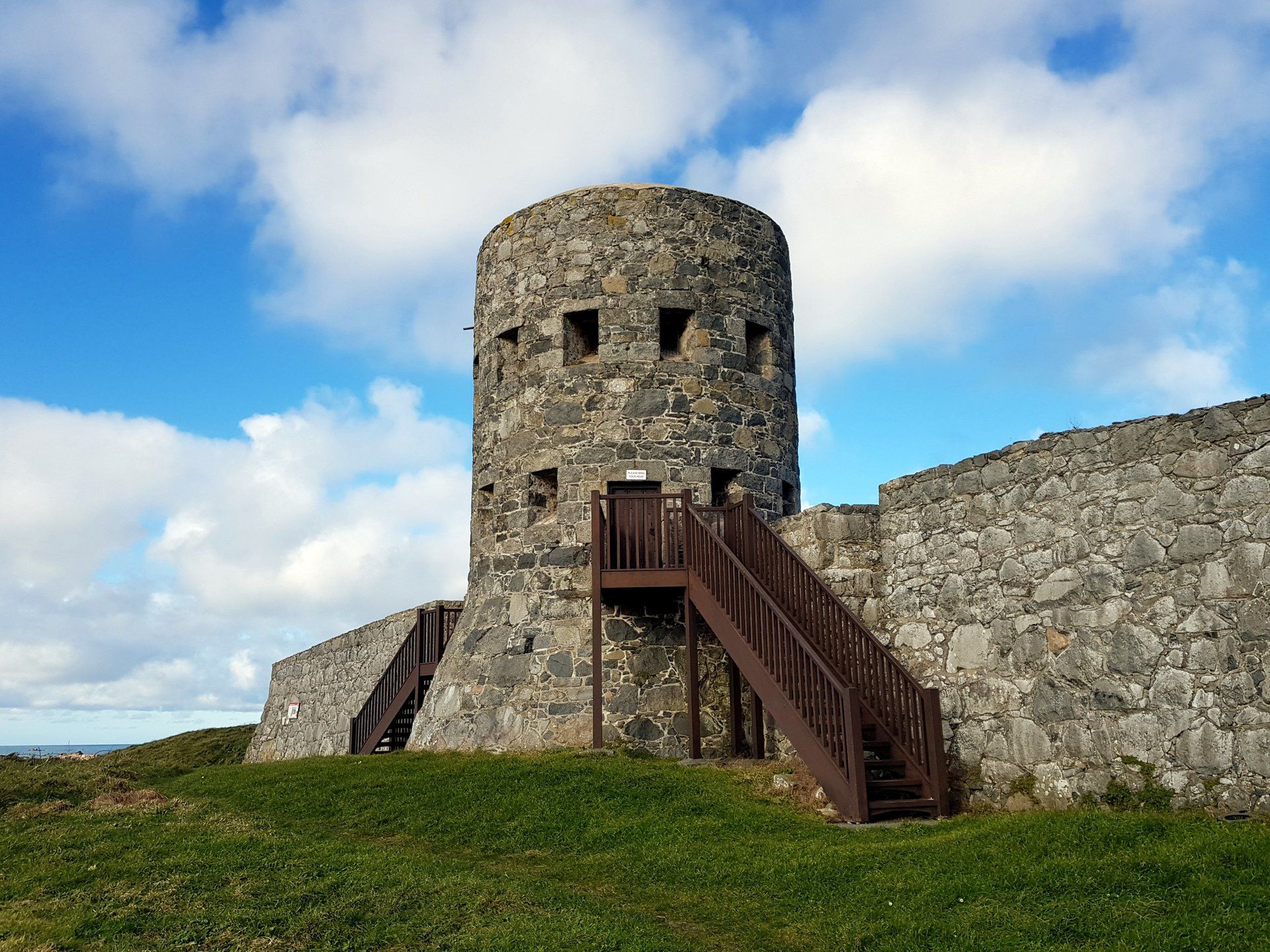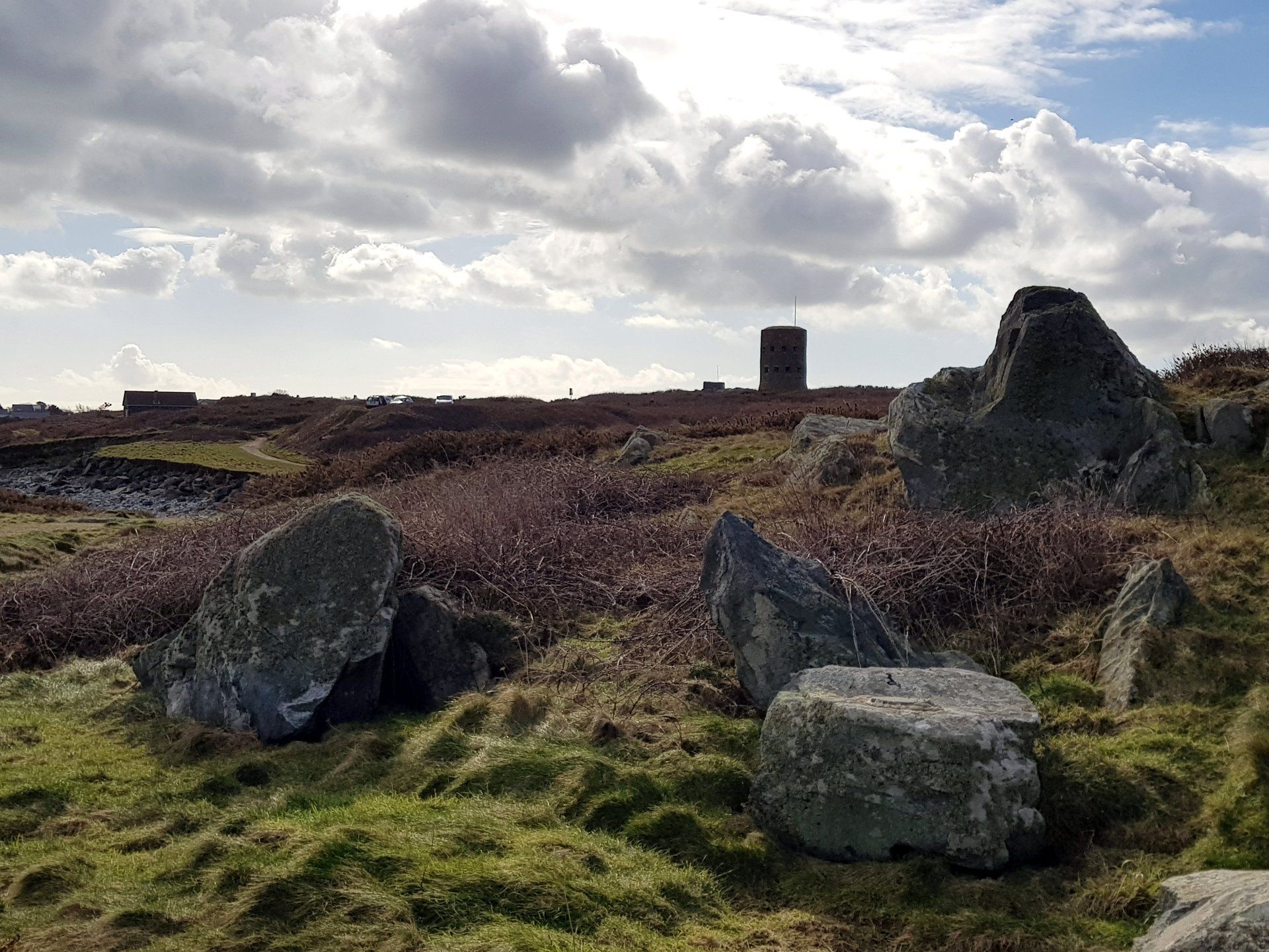The route is interrupted by Fort Le Marchant, another defence raised from fears of French invasion, mainly in the early 1800’s, now home to the local shooting range. I have a mooch around and take in the views – just making out Alderney in the distance Back on track and the trail heads towards the more civilised Pembroke Bay, but before that I have a stroll up to Loophole Tower No. 5. There were originally 15 of the towers built in the late 1700’s as defence against the French, with 12 remaining to this day. They are an iconic sight in Guernsey (and Jersey, although slightly different in design). I passed the first surviving tower on my January walk (No. 3 at Mont Crevelt) but today I see a total of 7.