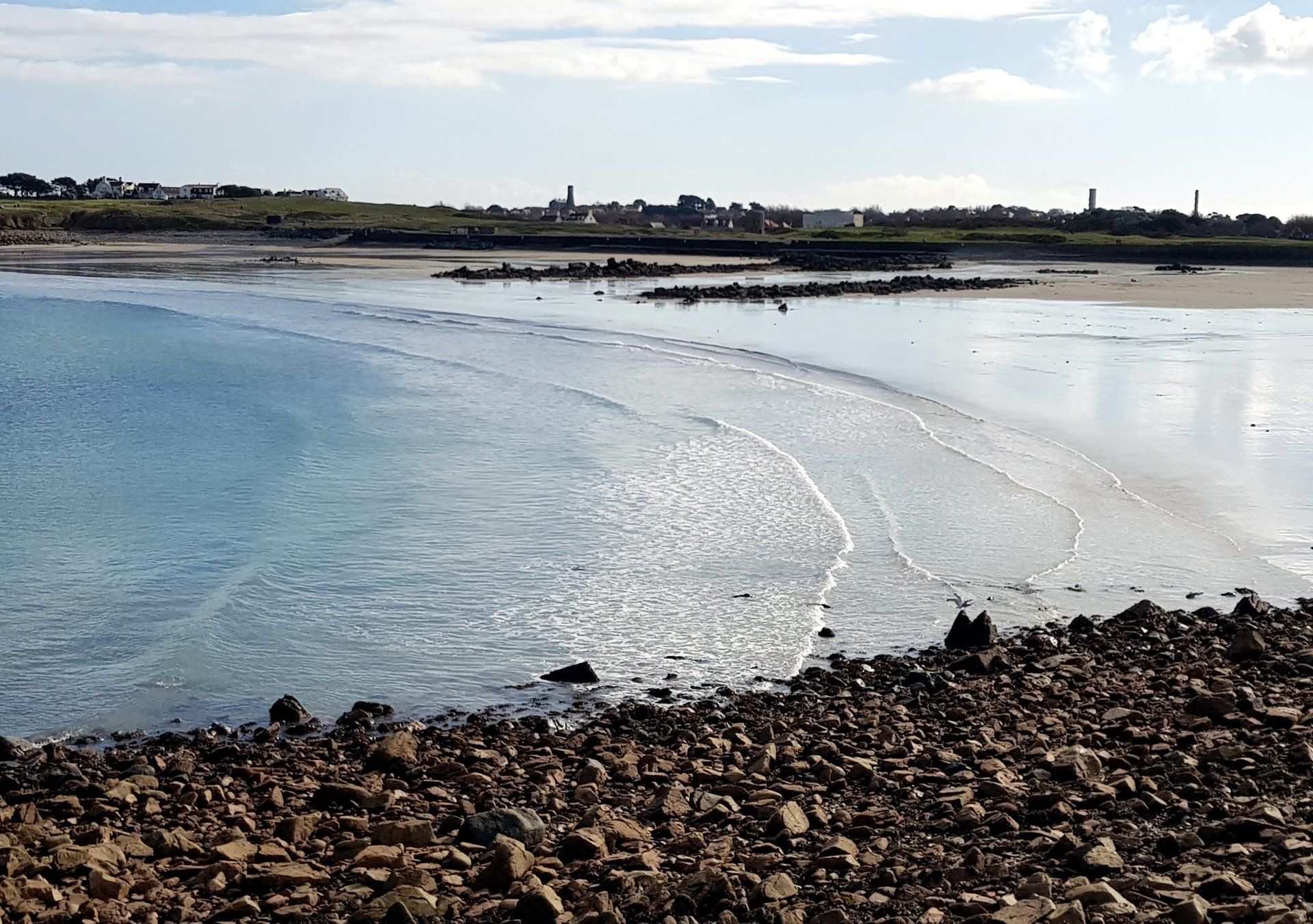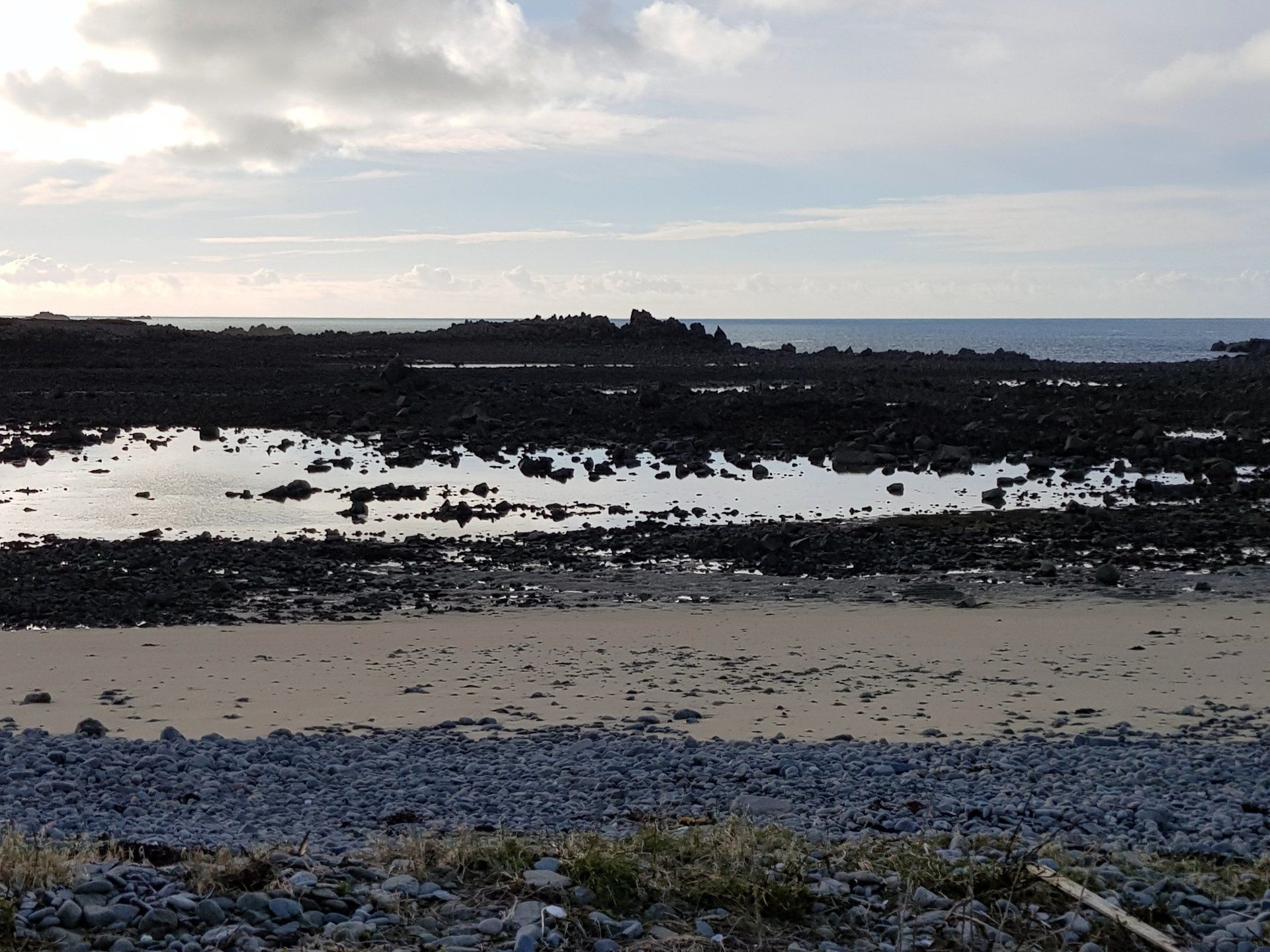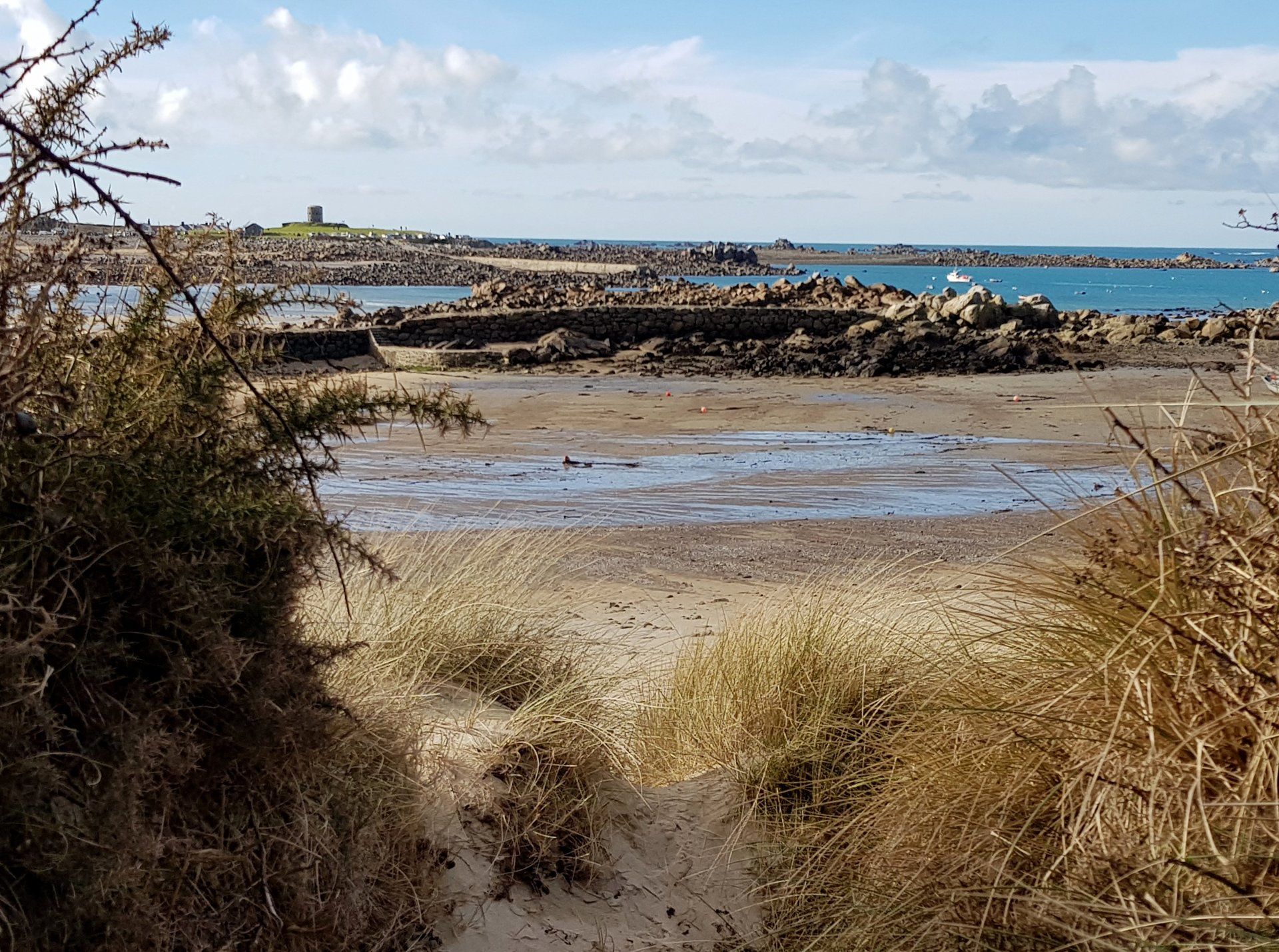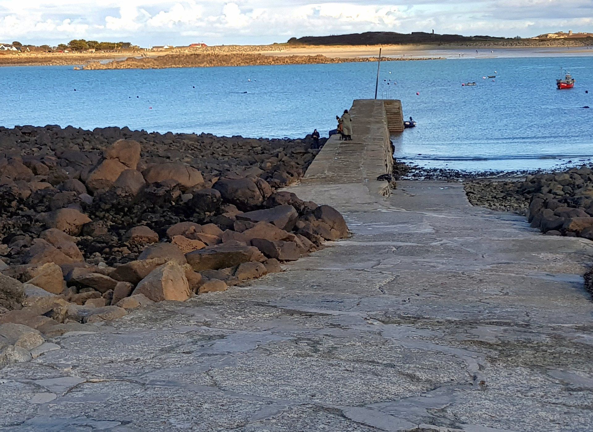 But at this halfway point of my walk, I temporarily stop as I am meeting the family for lunch at a favourite restaurant. An enjoyable hour or so later, and suitably refuelled and refreshed, I step back out on to the path and pass alongside L’Ancresse golf links though to Les Amarreurs which makes up the top side of the greater Grand Havre Bay, a coastal inlet that forms a natural harbour I grew up in this area so the next couple of miles are home territory for me – I spent my summers on these beaches as a kid so a few memories! Jumping off Les Amarreurs and Grand Havre piers, snorkling, boating, simply clambering about.