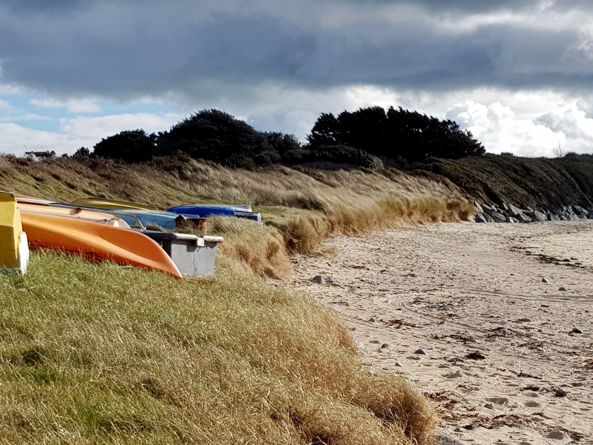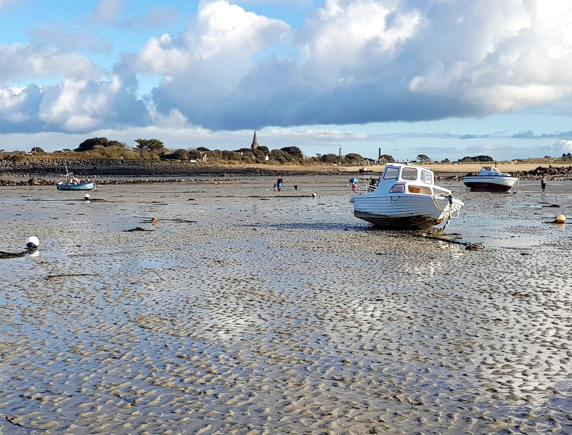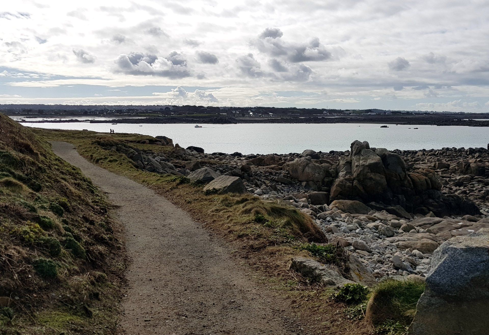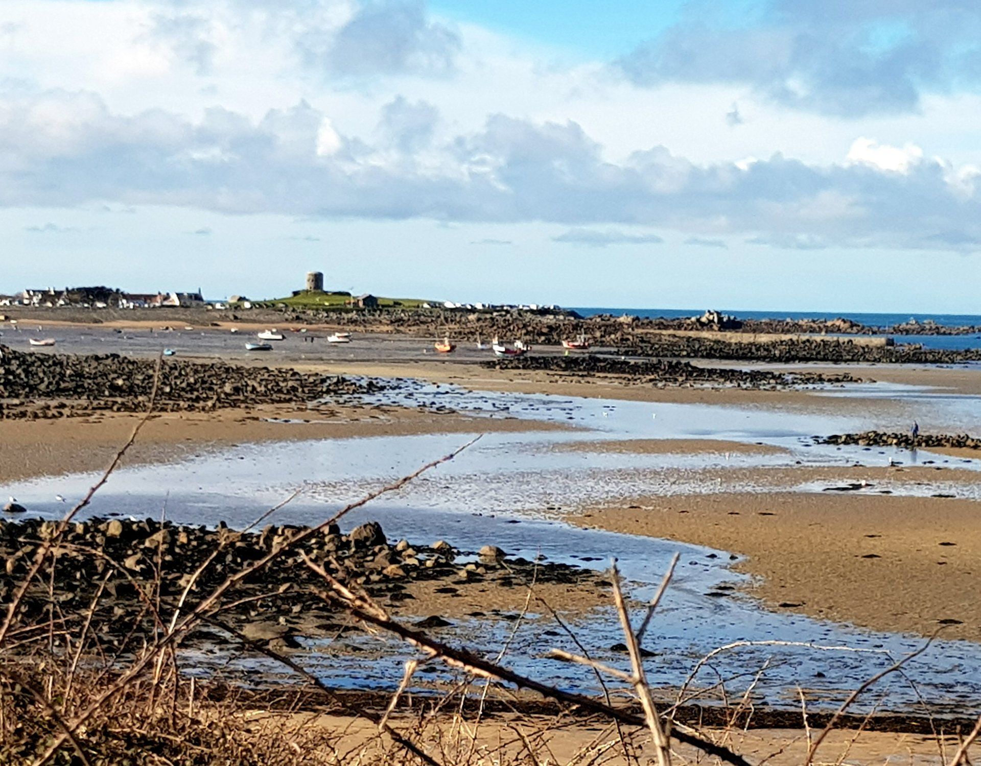 But at this halfway point of my walk, I temporarily stop as I am meeting the family for lunch at a favourite restaurant. An enjoyable hour or so later, and suitably refuelled and refreshed, I step back out on to the path and pass alongside L’Ancresse golf links though to Les Amarreurs which makes up the top side of the greater Grand Havre Bay, a coastal inlet that forms a natural harbour I grew up in this area so the next couple of miles are home territory for me – I spent my summers on these beaches as a kid so a few memories! Jumping off Les Amarreurs and Grand Havre piers, snorkling, boating, simply clambering about.