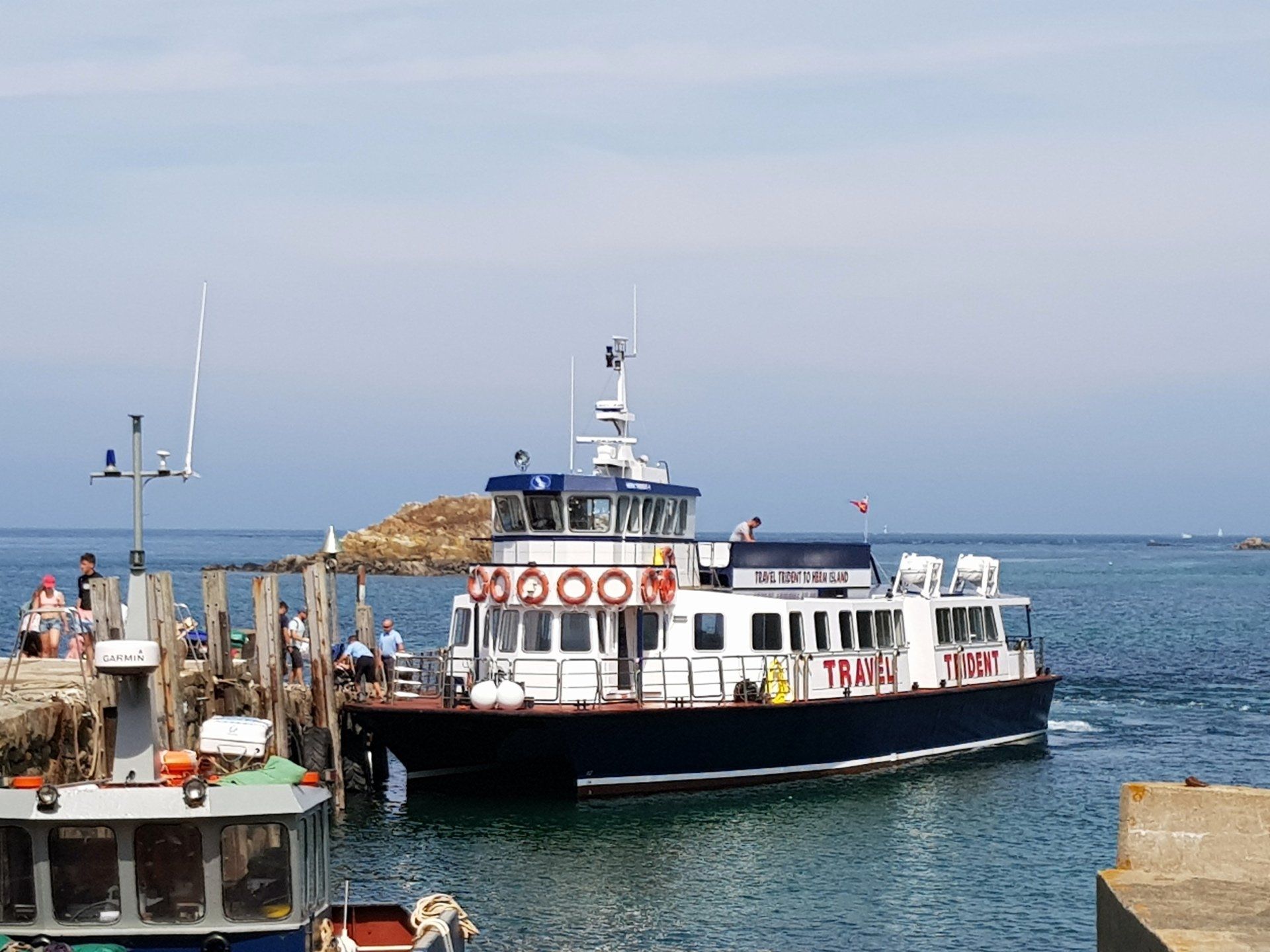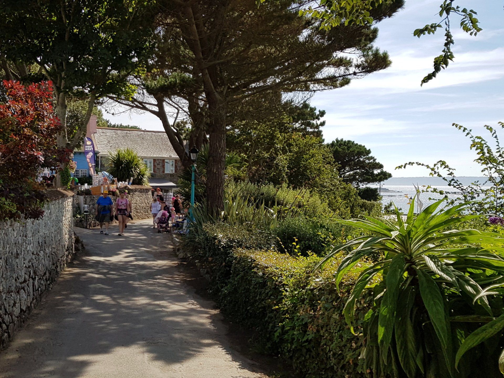 We sit on the top deck of the Travel Trident for the 15 minute boat trip, seeing Guernsey slip into the distance, whilst Herm soon presents itself and we step off onto the harbour quay. It is busy with people, including lots jumping off the sea wall given the high tide, others boating, kayaking and just having fun in the sun.