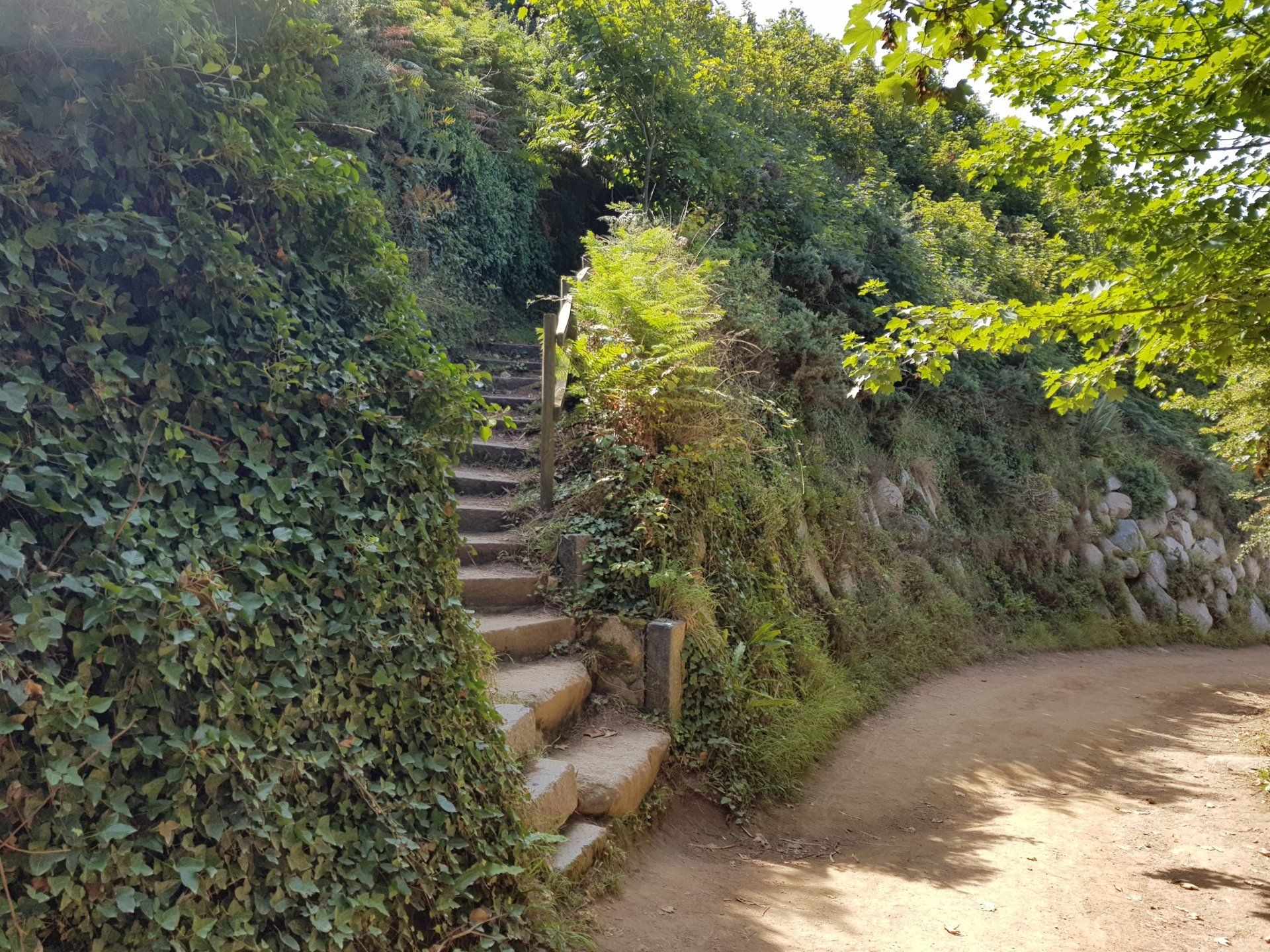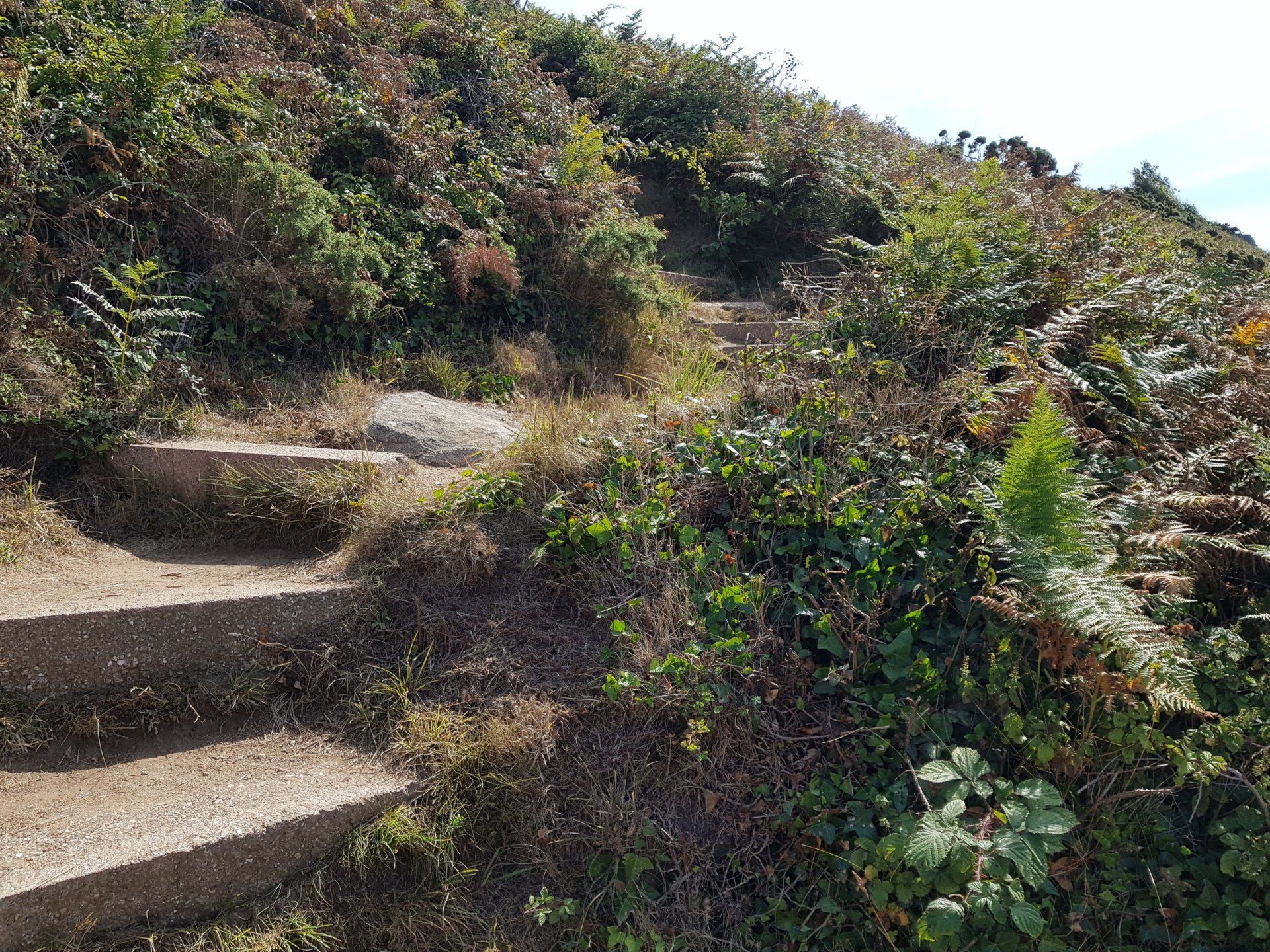 Most of the day trippers go left but we take a right to start our anti-clockwise tour, passing through the genteel surroundings of the White House, soon approaching Rosaire steps where we divert up on to the South Coast ‘cliffs’.