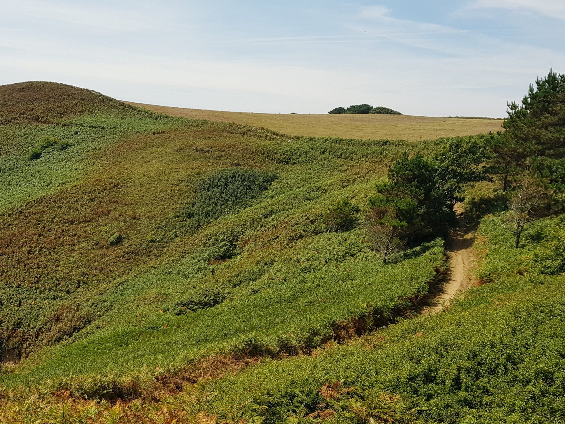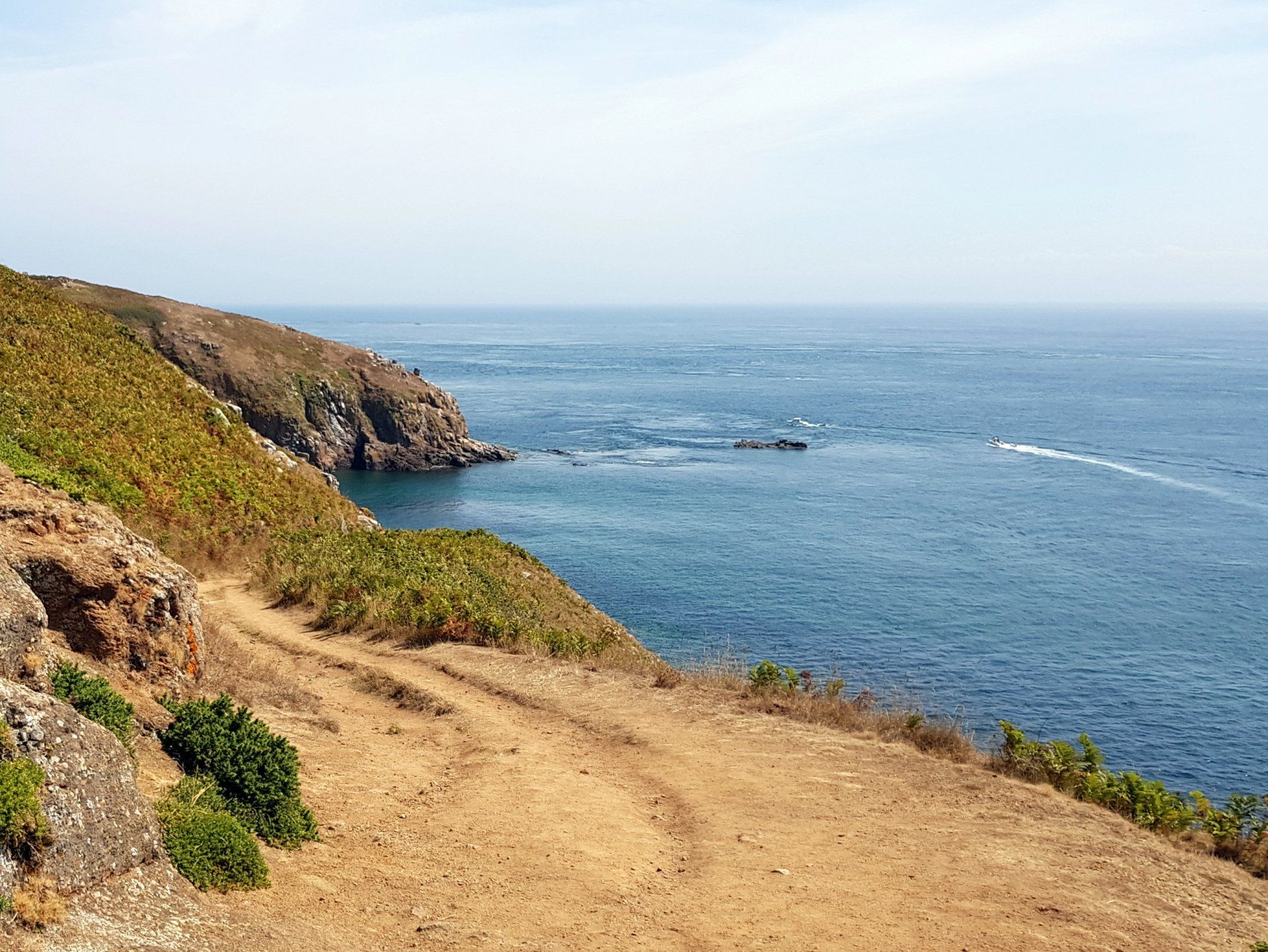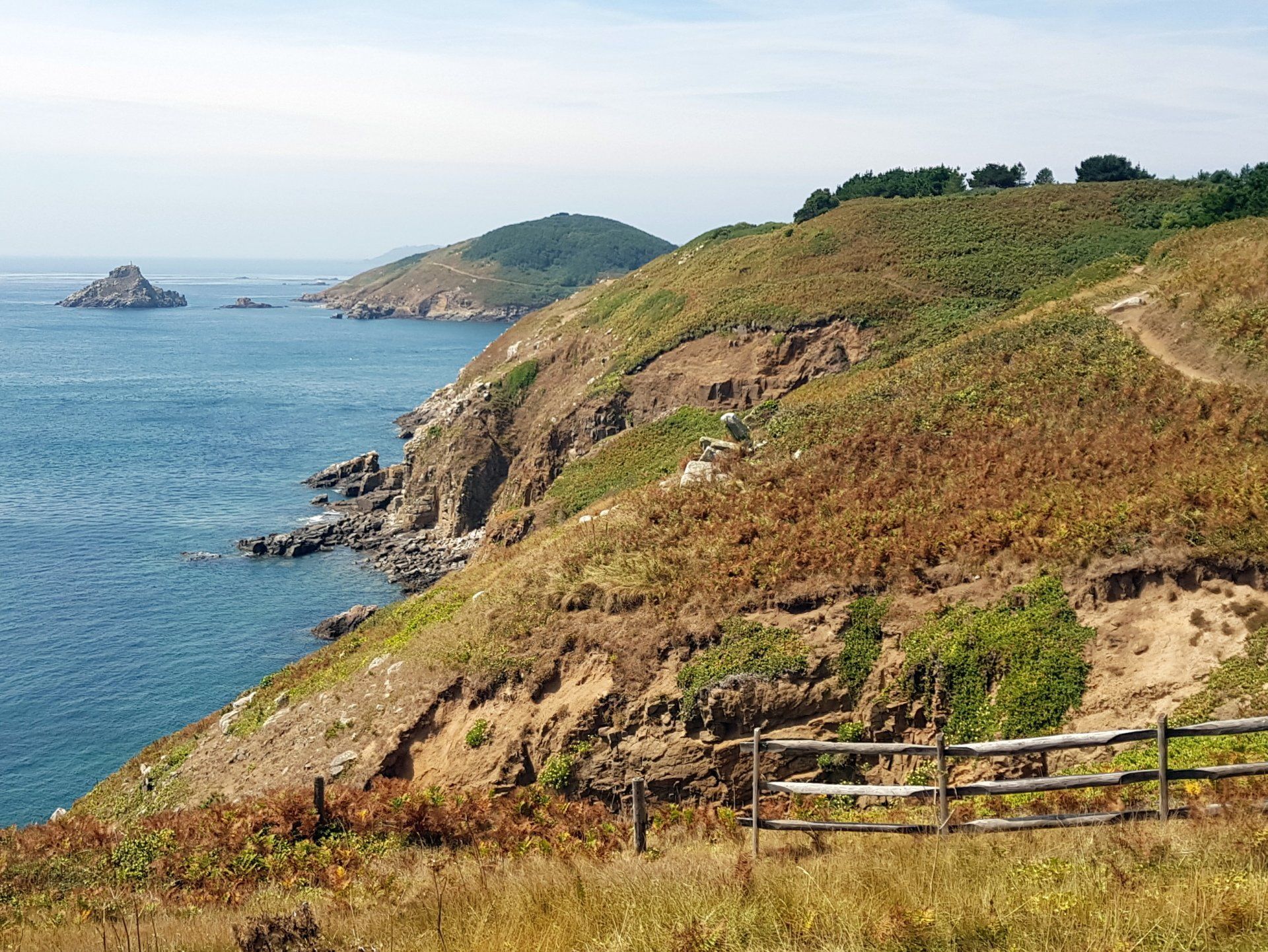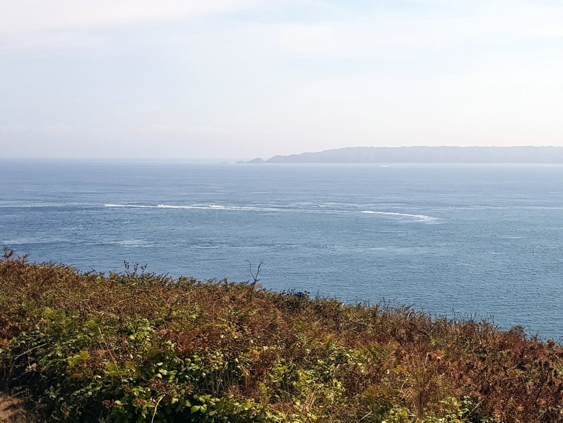 The path continues with a few minor ups & downs, generally offering a very pleasant saunter on a beautiful day. Sark is a hazy, somewhat distant view but I bet this can be a spectacular scene when the sun is setting and the light is fully shining on Sark’s cliffs.
