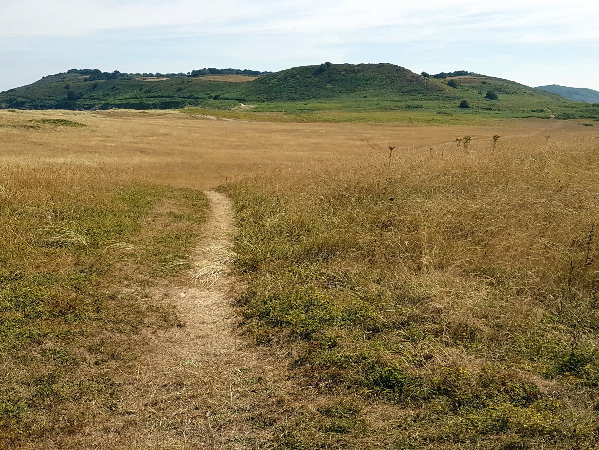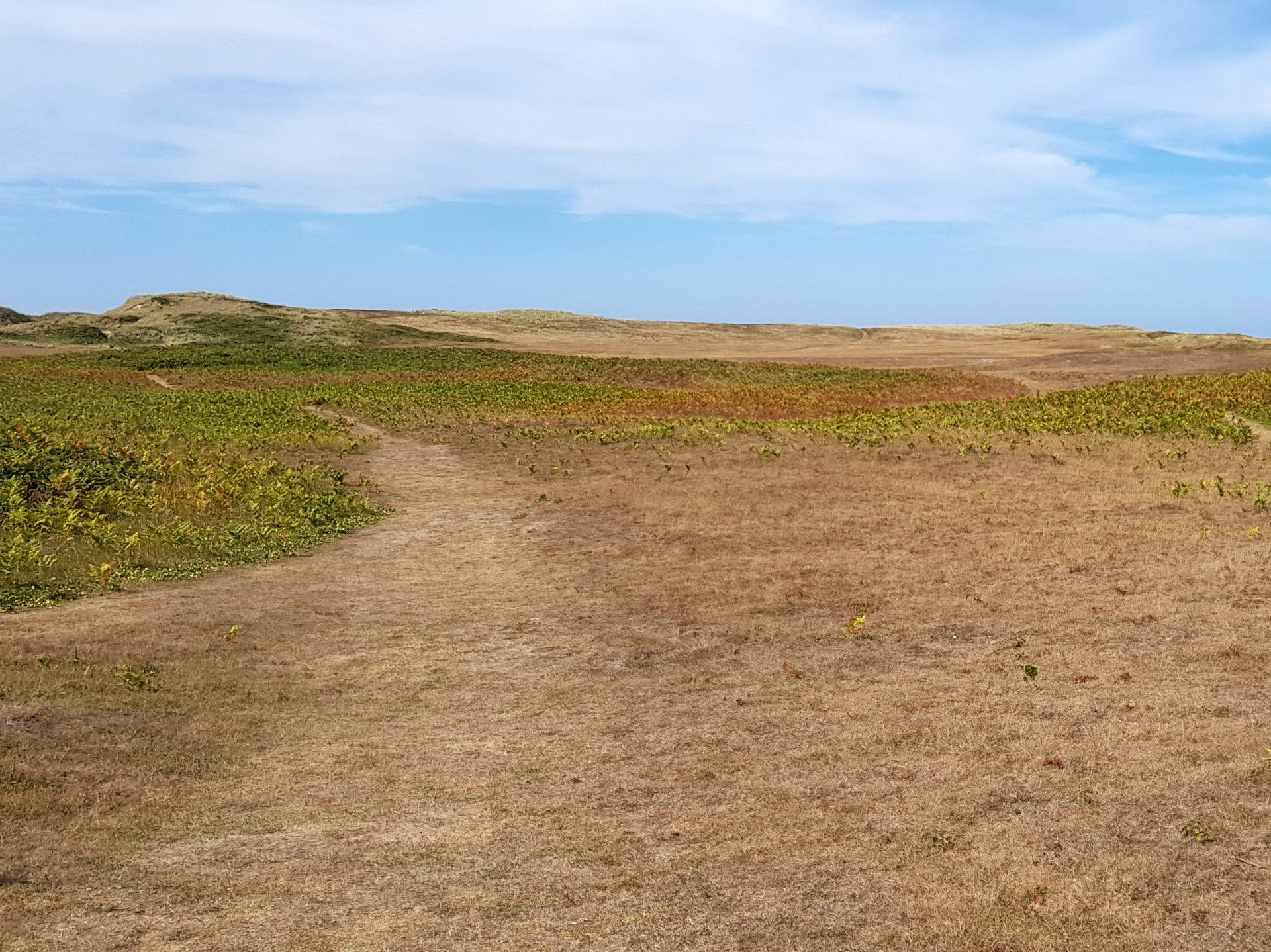 After a while we need to move on to complete our circumference circuit before catching the boat home. The remainder of the route is low level common up to the deserted North coast, with the grass and spongy heather so dry it virtually crackles when you stand on it.