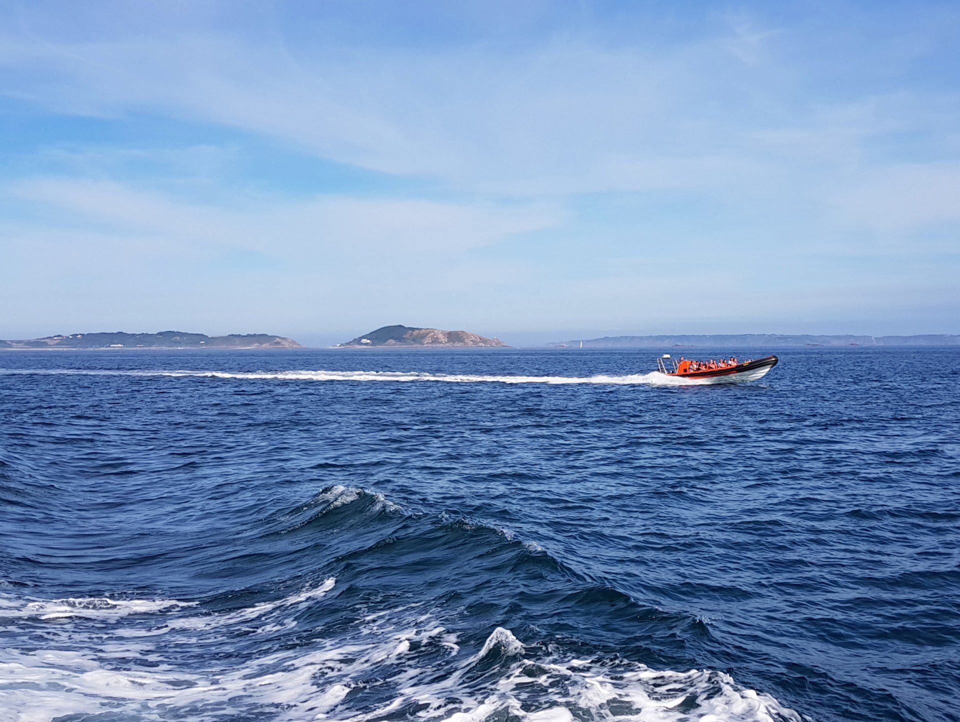We emerge to some fine views across to Jethou and back to Guernsey, with a lot of boat activity, including a ‘donutting’ RIB giving out thrills to it’s passengers.