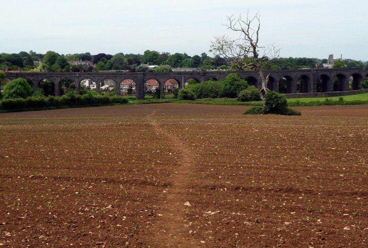Some of the fields have high grass and many of the paths are overgrown (including lots of nettles) and my legs are getting rashy. Really I need long trousers rather than my shorts but I am not ready for my wet weather over-trousers so put on my gaiters for a bit of protection, removing them as I come up to Shepton Mallett so I don’t look ridiculous in the high street!. I take a short diversion from the trail into that high street, which is very picturesque but empty but manage to find a shop open and stock up on drinks as it is humid again. On leaving Shepton Mallett there is a very striking viaduct, I assume disused.