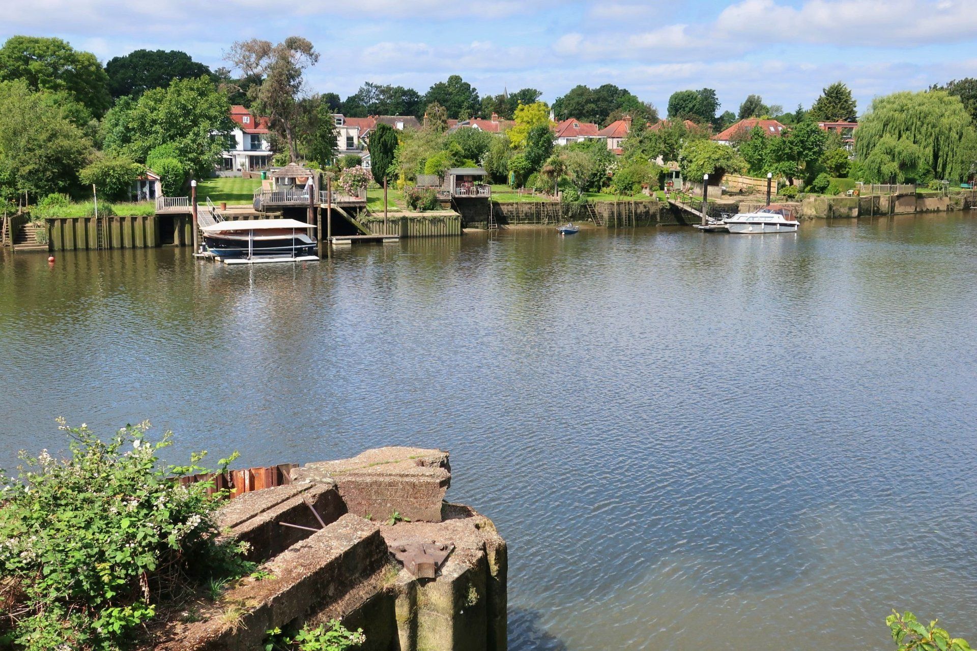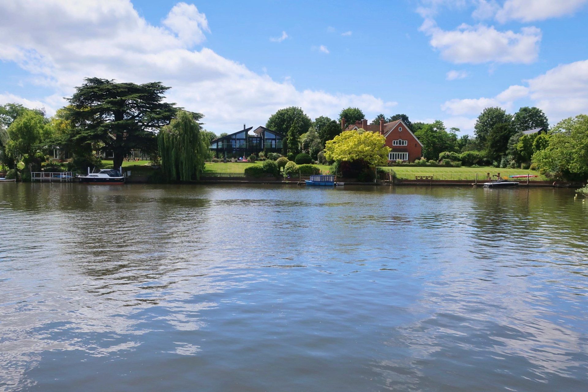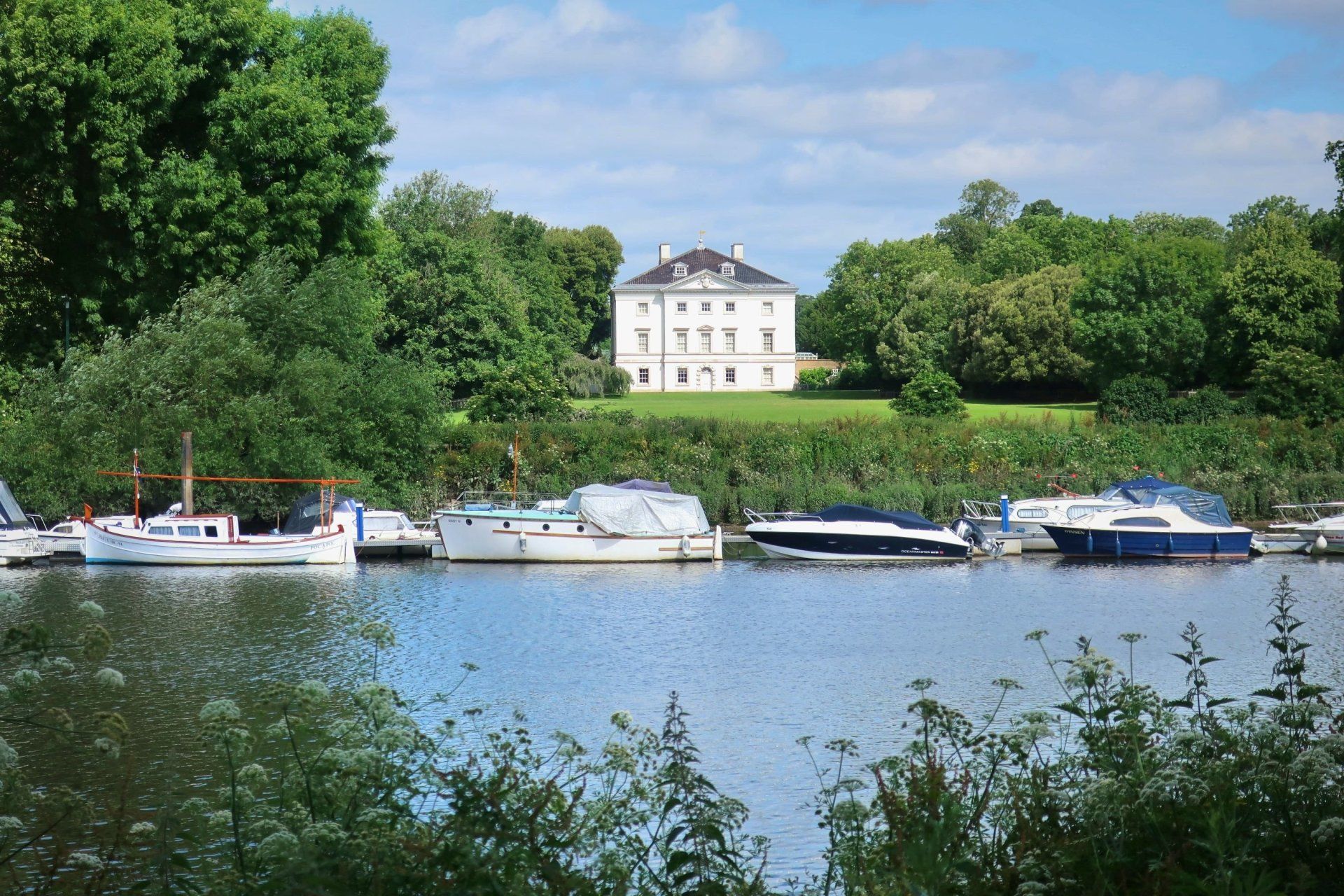I cross to the South bank over the footbridge at Richmond Lock, an arty structure with a practical purpose of regulating water levels in the upper Thames. This crossing takes me into a different environment, the more refined area of Richmond waterfront, then a general rural setting which continues for much of the day – a natural path following the river bank, often looking over to residential on the other bank. These are river-front houses, some quite large, many with their own dock and moored boat. Very nice!