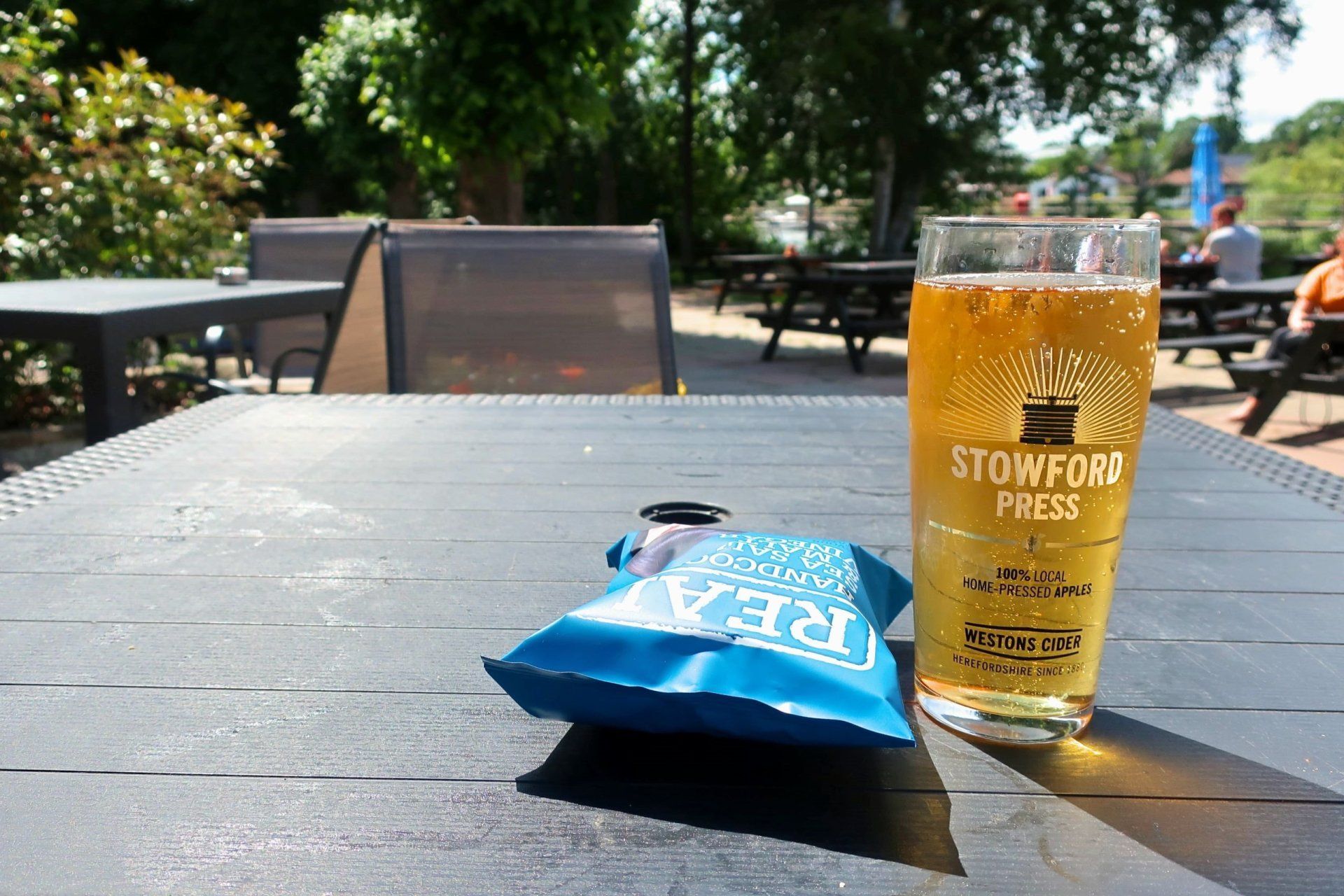 The scene feels very English – rural setting, riverbank, boats, swans & geese, anglers, dog walkers and cyclists and…eventually, a lovely pub (The Weir), where I stop for a drink and snack