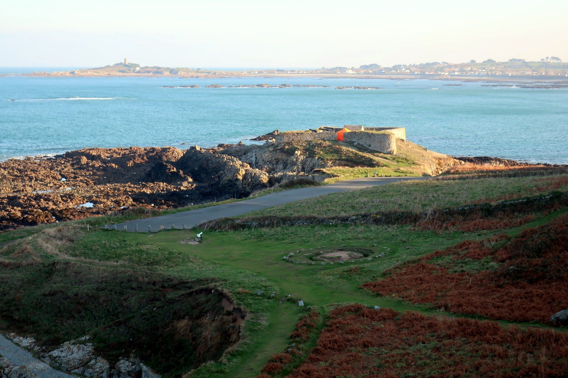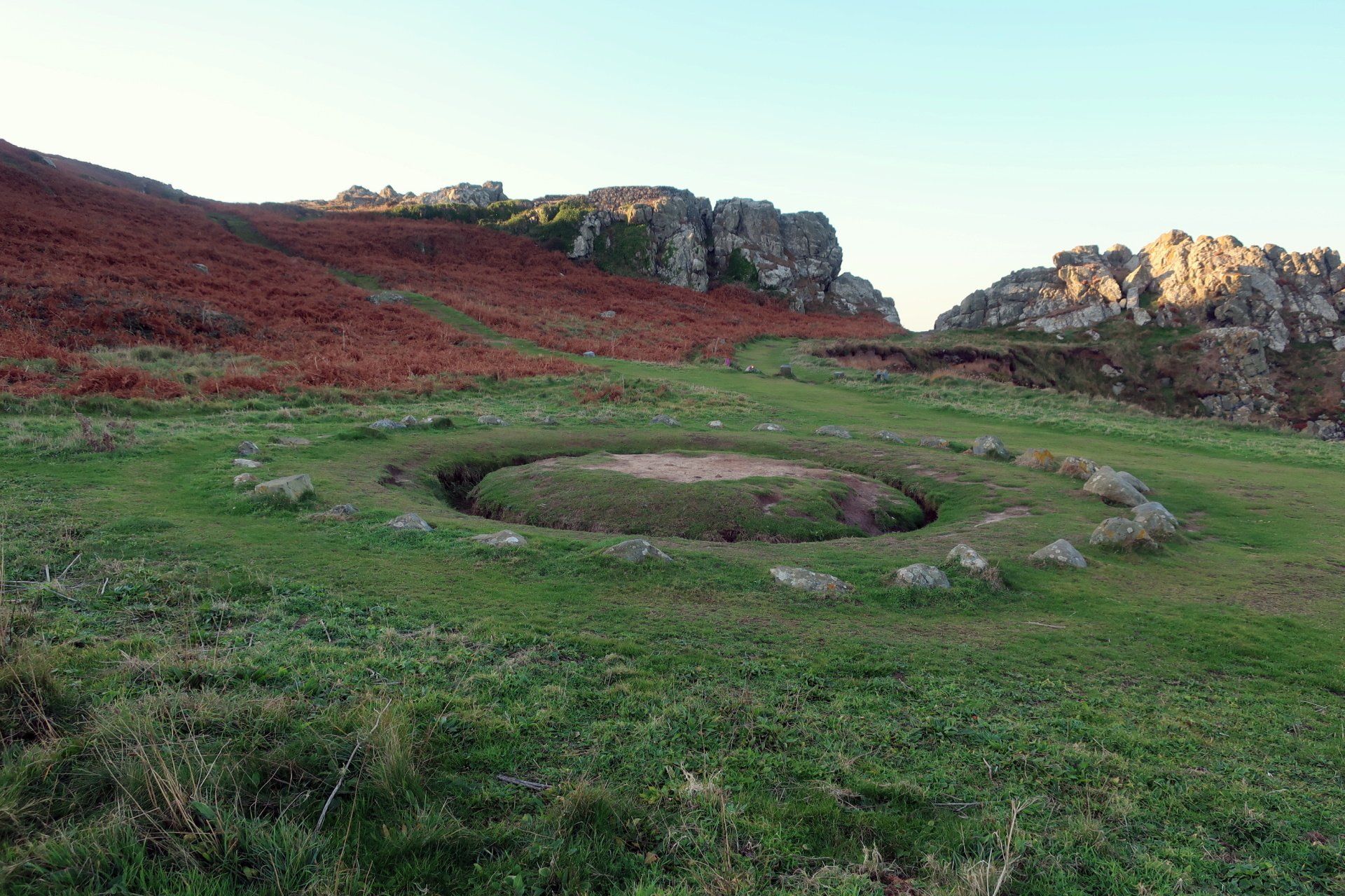 Along the path and I descend to the South West corner of the Island, home to another old fort – Fort Pezeries – and the Tables des Pions, otherwise known as the fairy ring. In reality this was a meeting and eating place, but local myth has it as a place of fairies and witches.