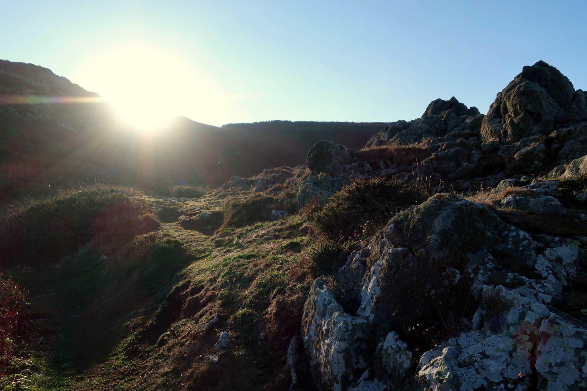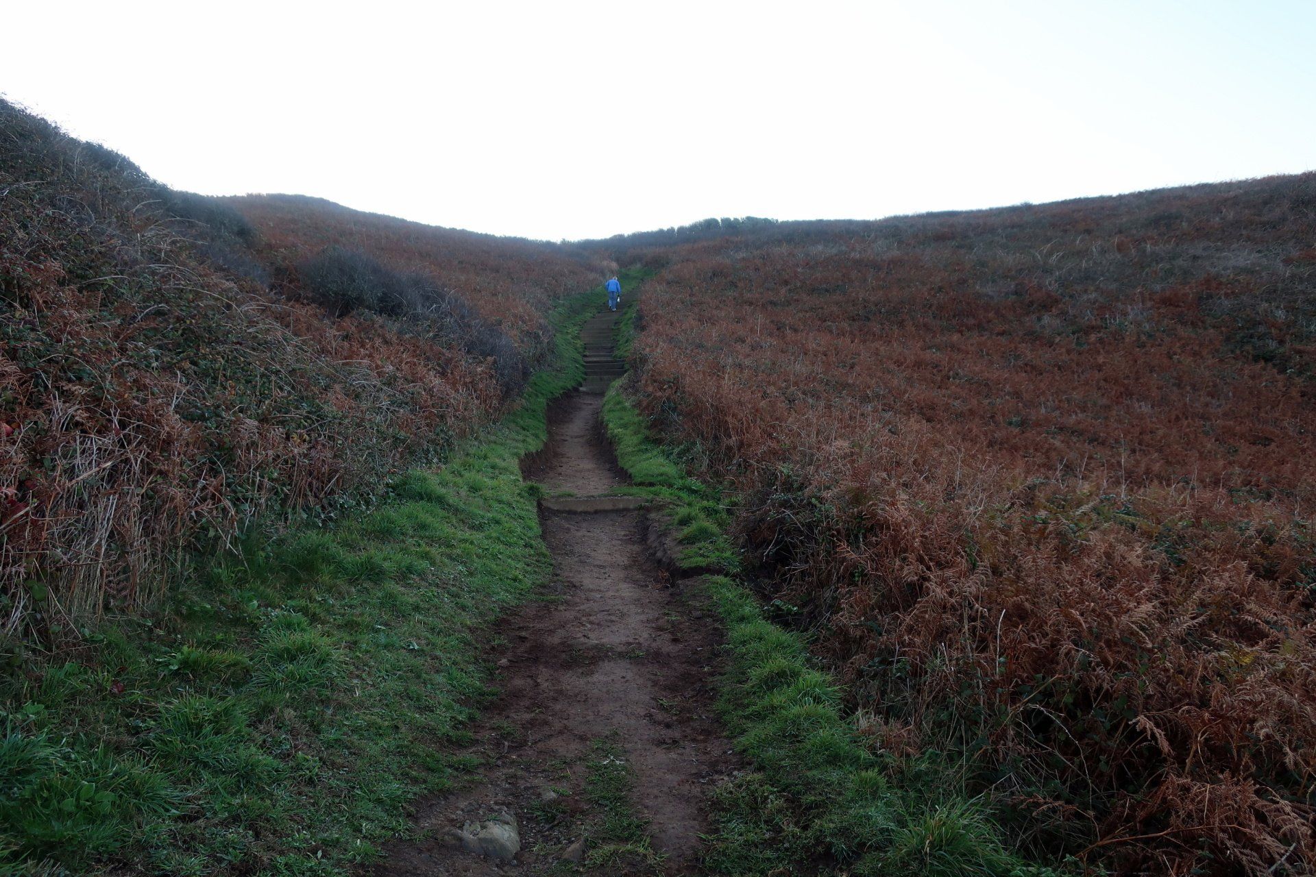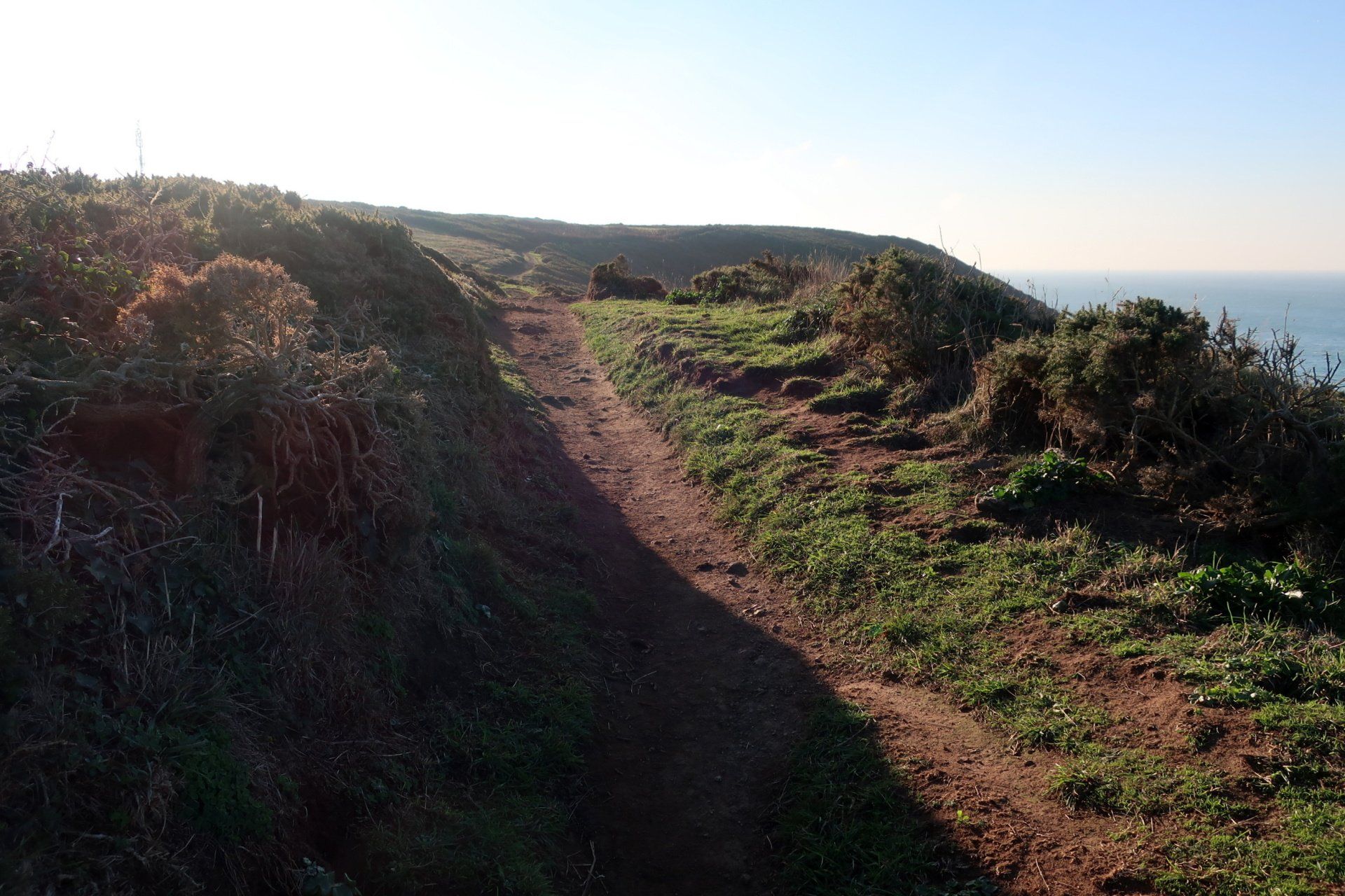 Outside of these man made items is of course the natural stuff. And what great stuff it is. Headlands, dipping down into valleys, the path snaking around, up, over and down, the sea ever present smashing into the rocks below. The sun lights up the scene, the low angle in this winter giving a bit of drama (although making photos a bit of a challenge!).
