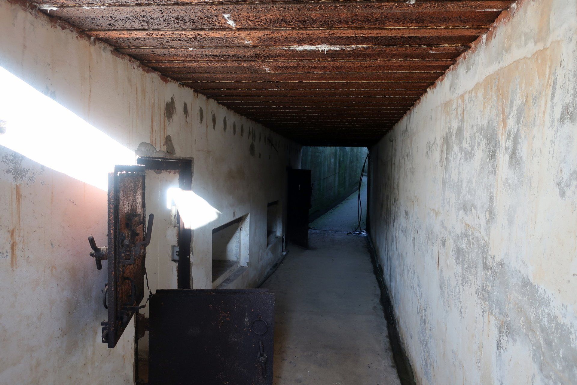 Other armaments making up the defences were field guns, machine guns, mortars and searchlights, all of these overseen by the command bunker (MP4). I also enter this, from the outside a large concrete mass, but inside feeling confined. It is abandoned but negotiable with care and I go down 2 levels and then return to start and up 2 levels, all these at one time housing operational and accommodation. It is hard to imagine being stationed here.