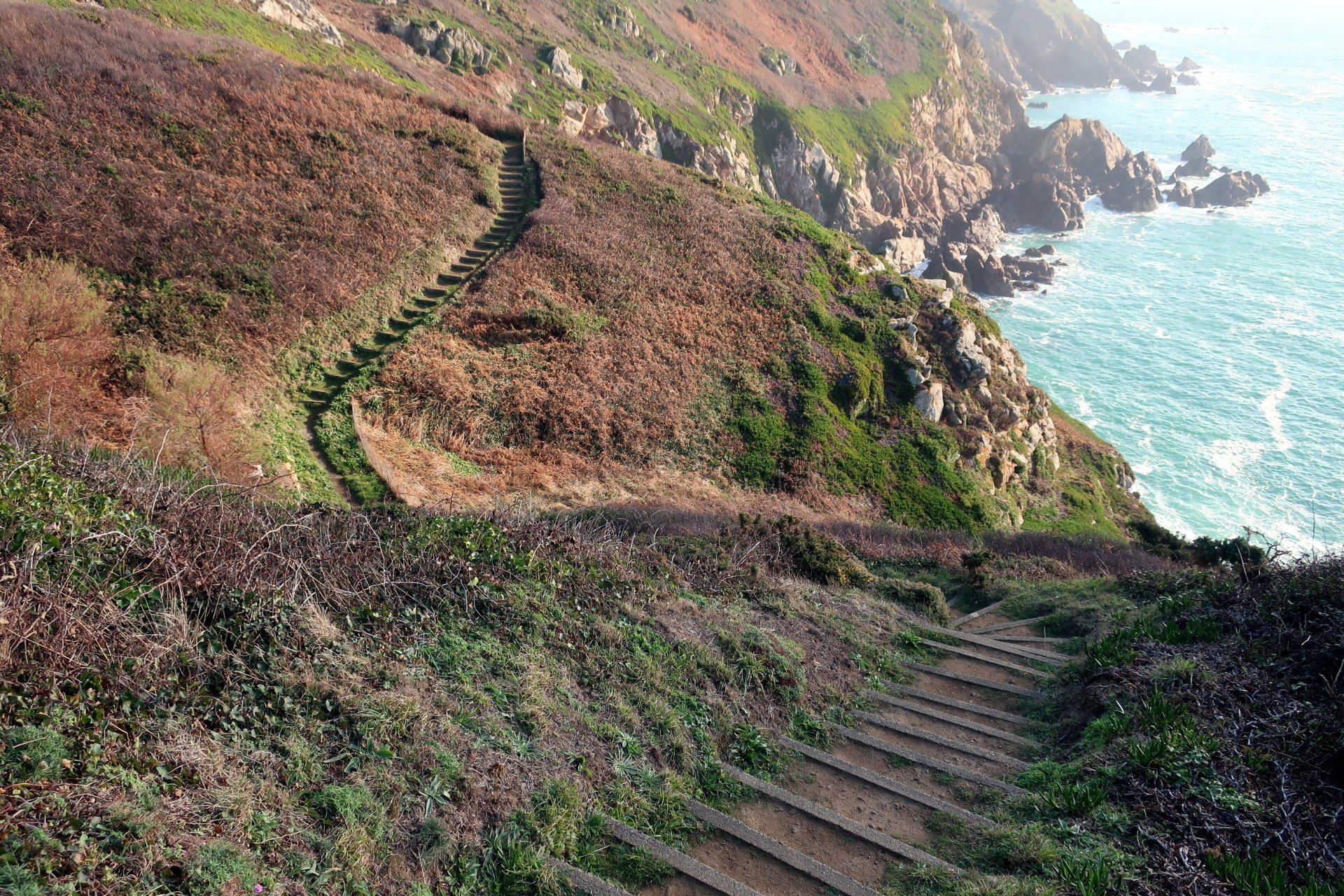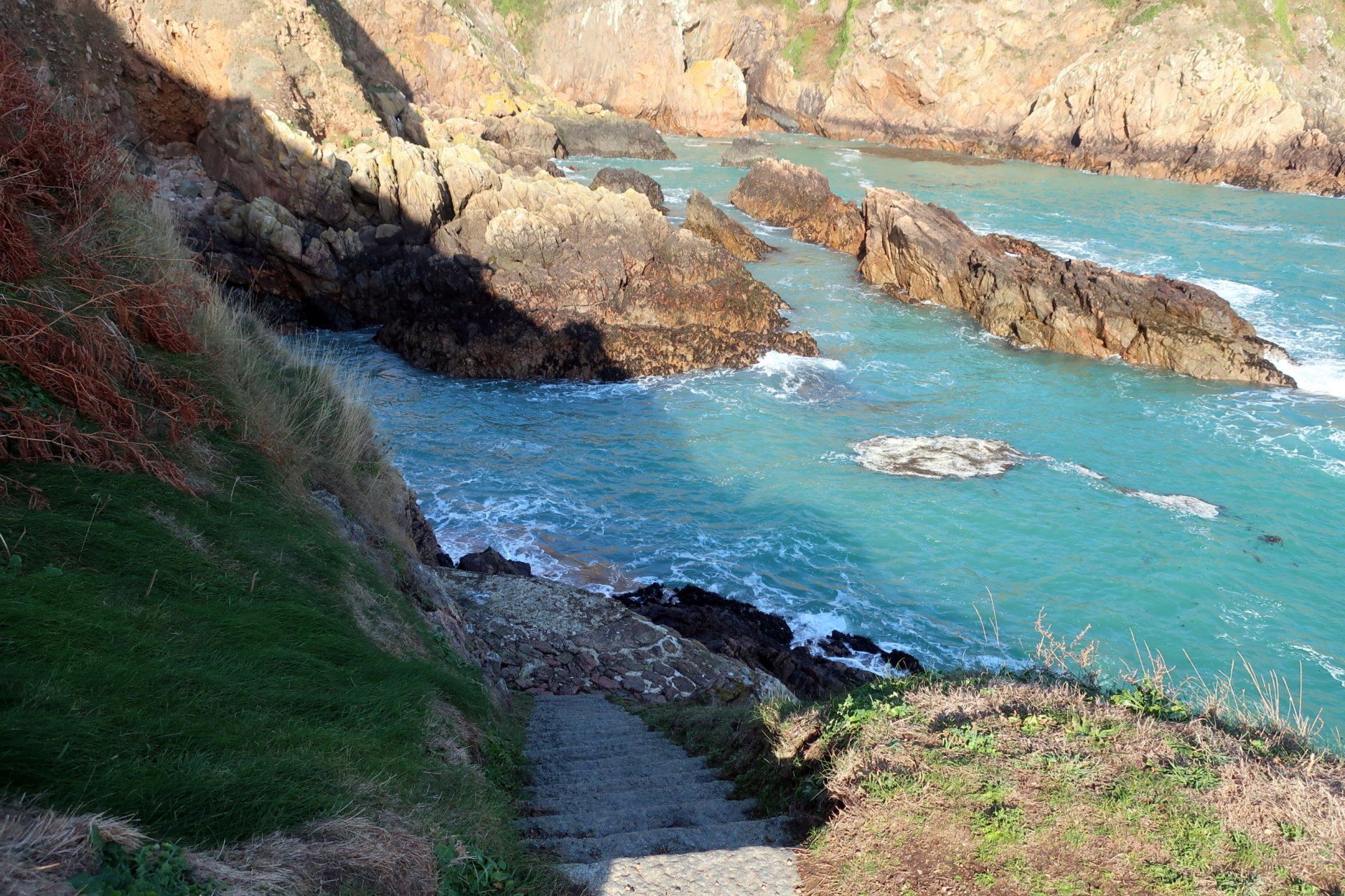 Across, the next inlet is Petit Bot, my destination for today. I climb up the path to higher level and then back down to the next small peninsular, looking back into Petit Bot itself, then back up and finally down the final set of steps to end the walk.