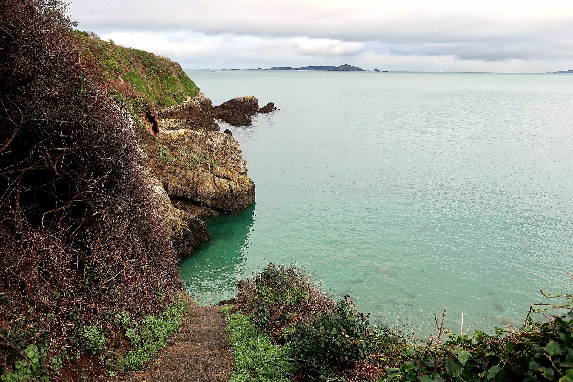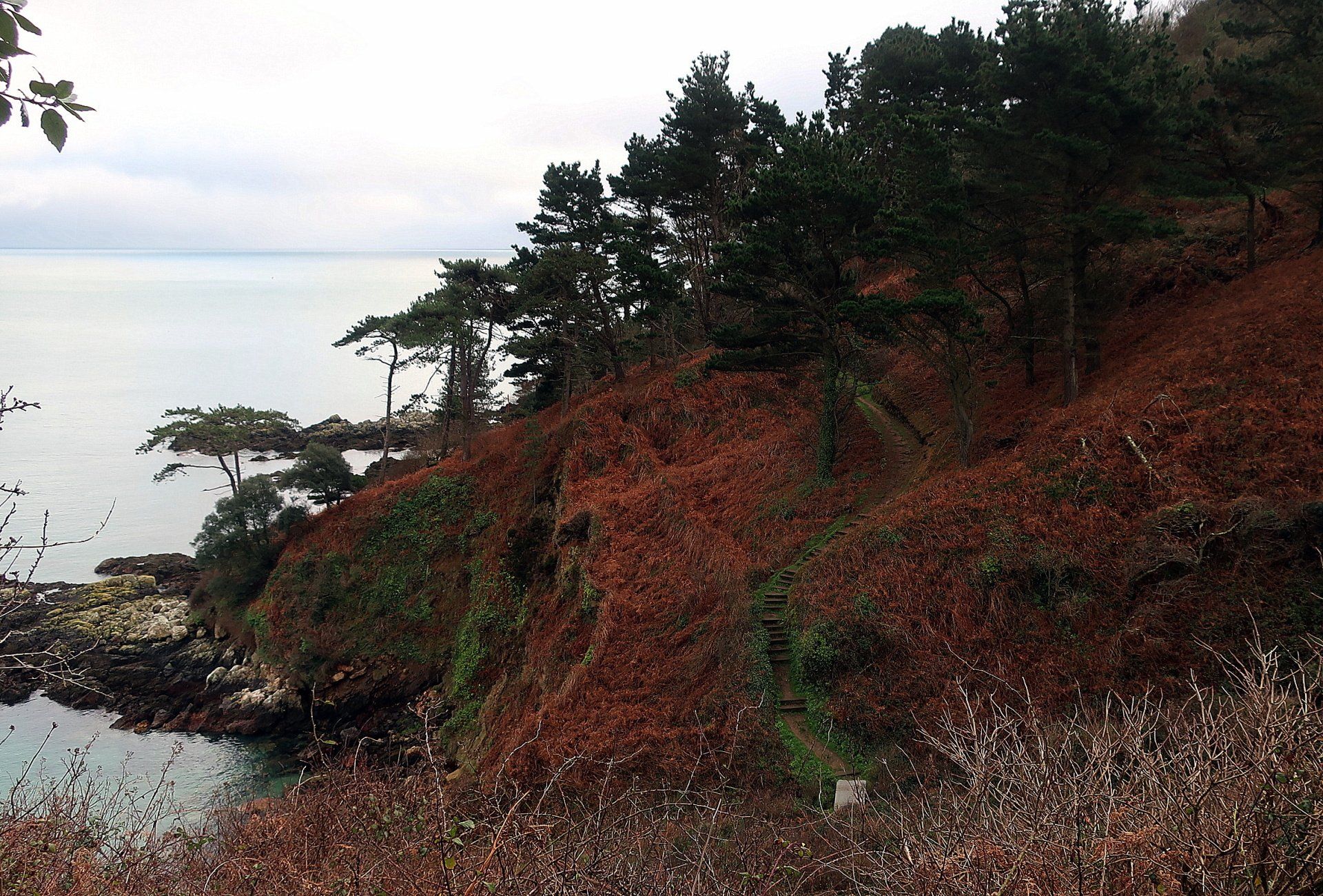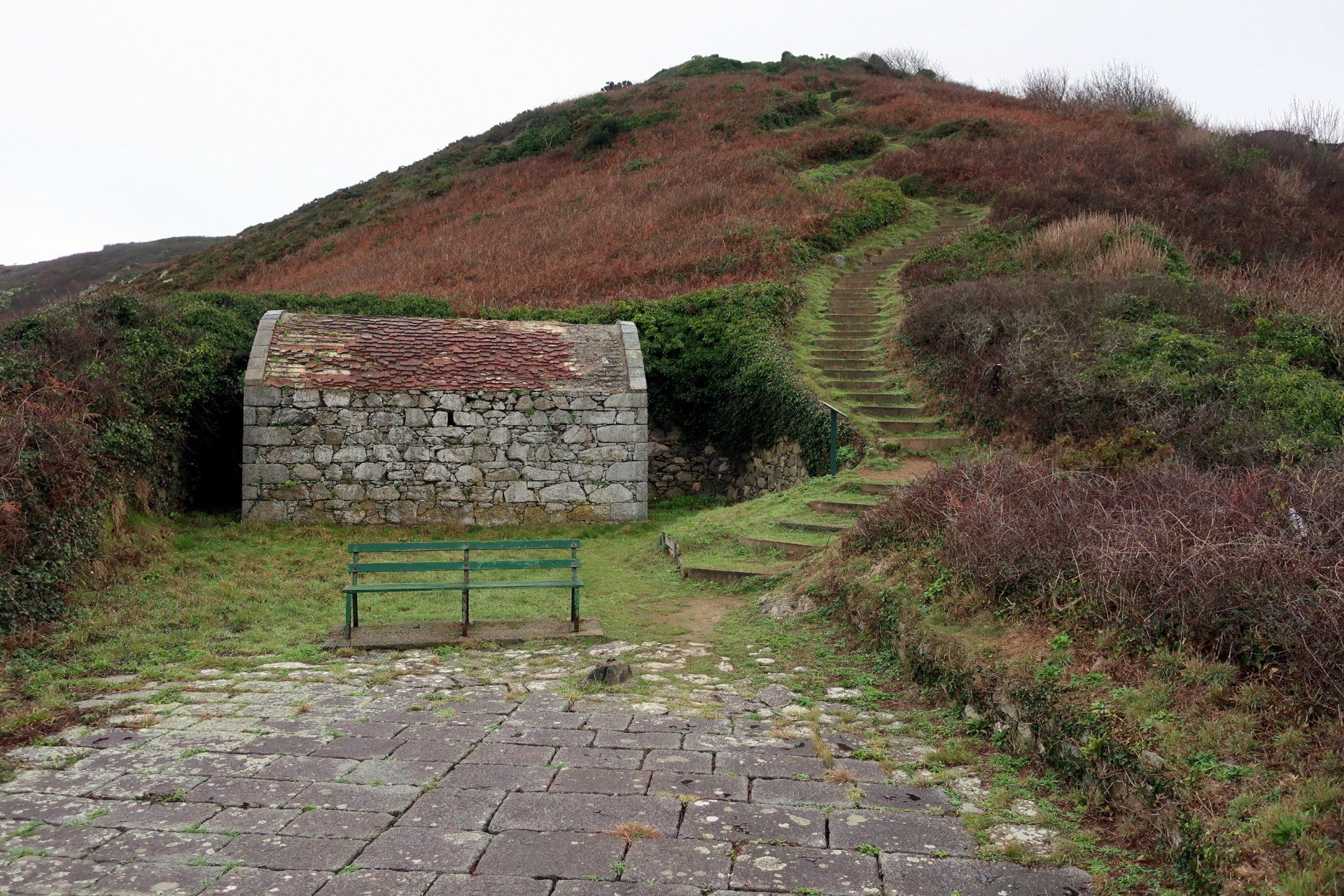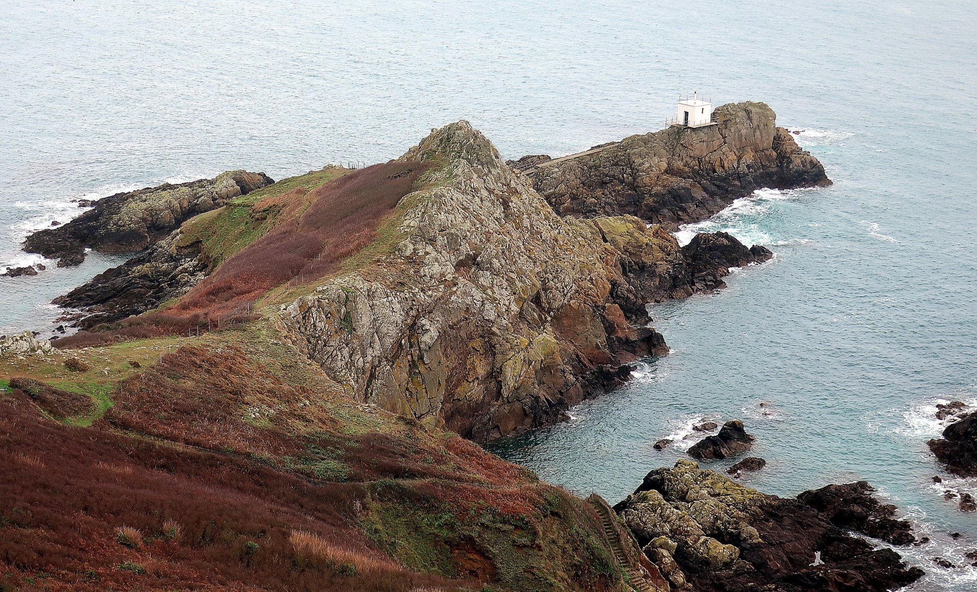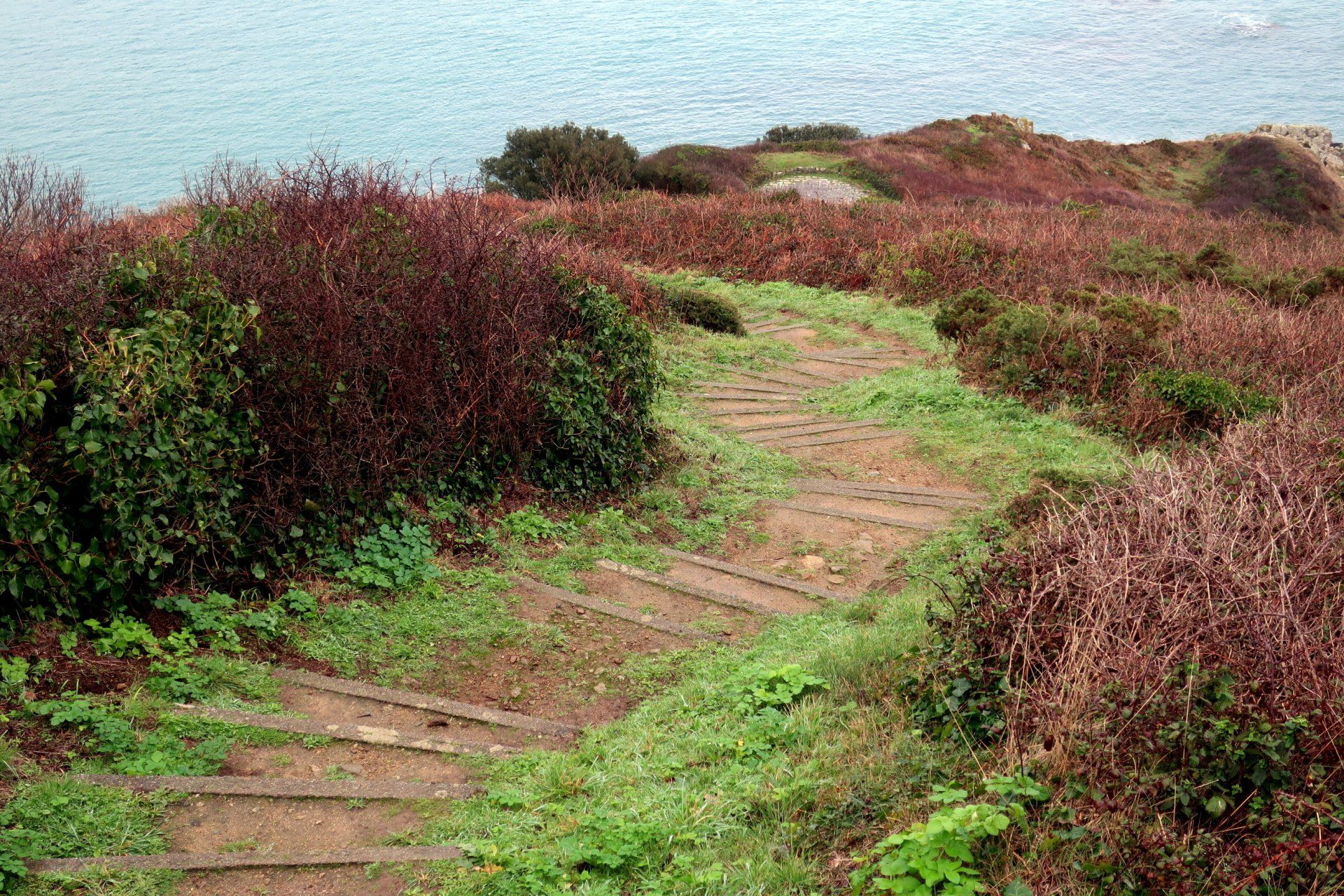 Returning, I huff and puff around the headland to Jerbourg and then down more steps, detouring briefly to visit a little white building perched at the are end of the headland – home to one of the Islands fog horns – thankfully not operating today, otherwise I would need my earplugs!.