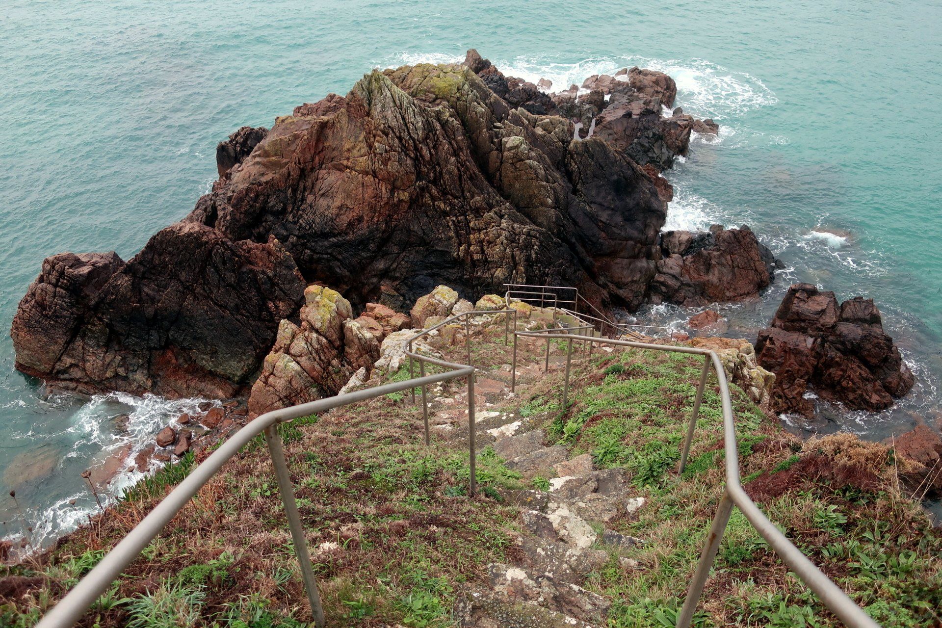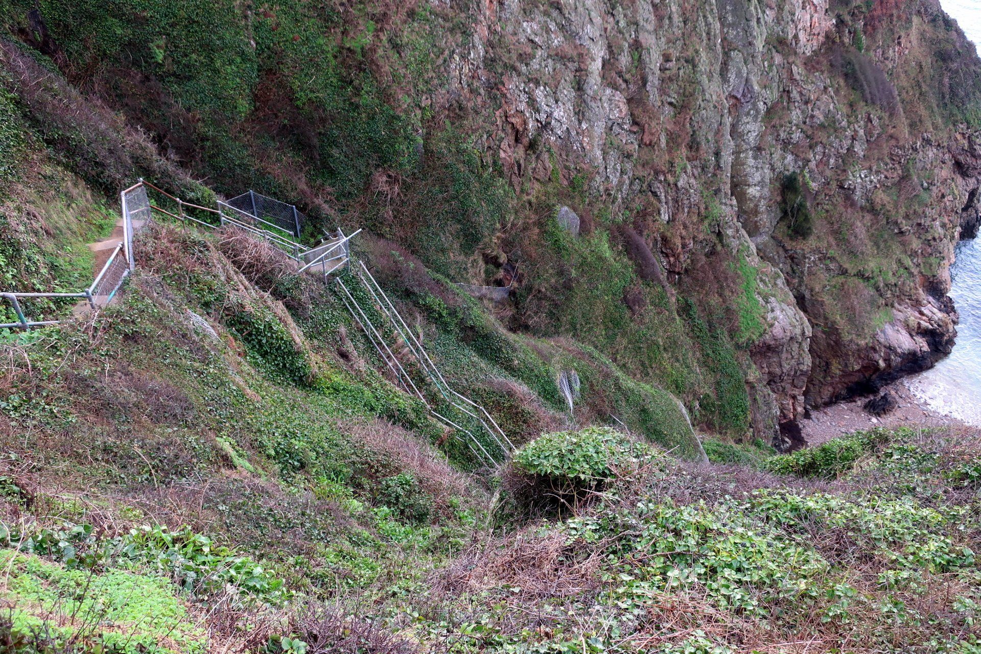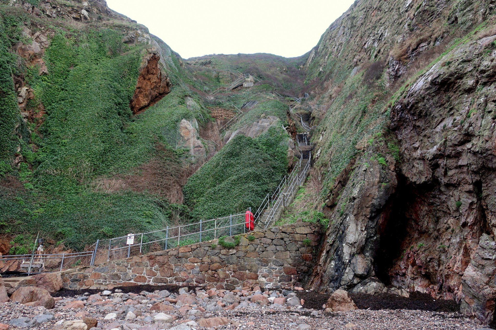 The next bay is Petit Port, another superb sandy beach when the tide is low, but covered today. To reach the bay there is a set of steep steps, around 250. It seems a bit pointless to go all the way down when there is really nothing to see, but that is the plan, so that is what I do…masochist!