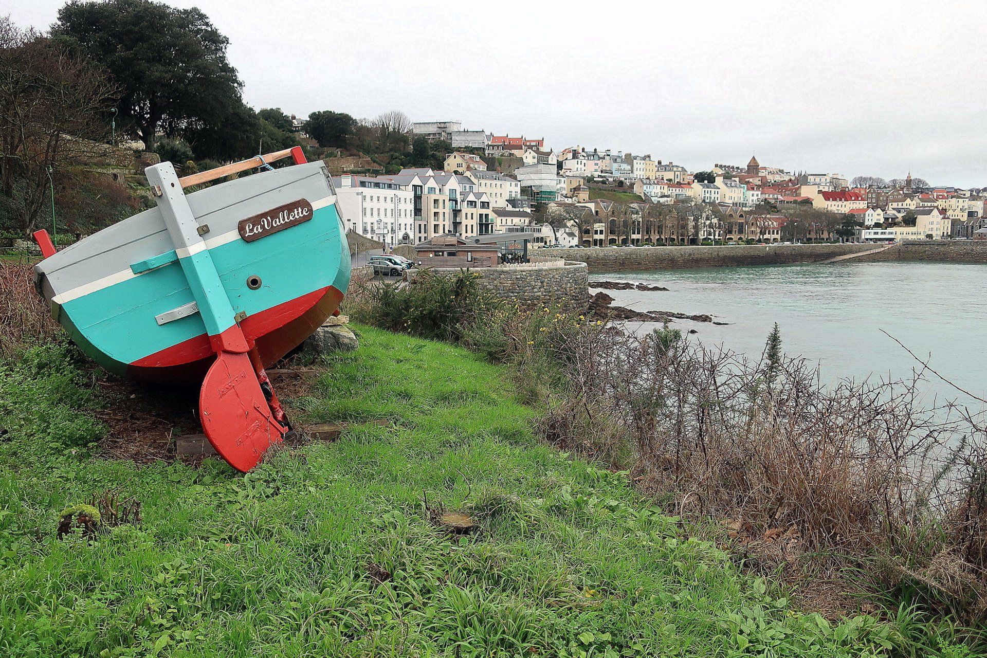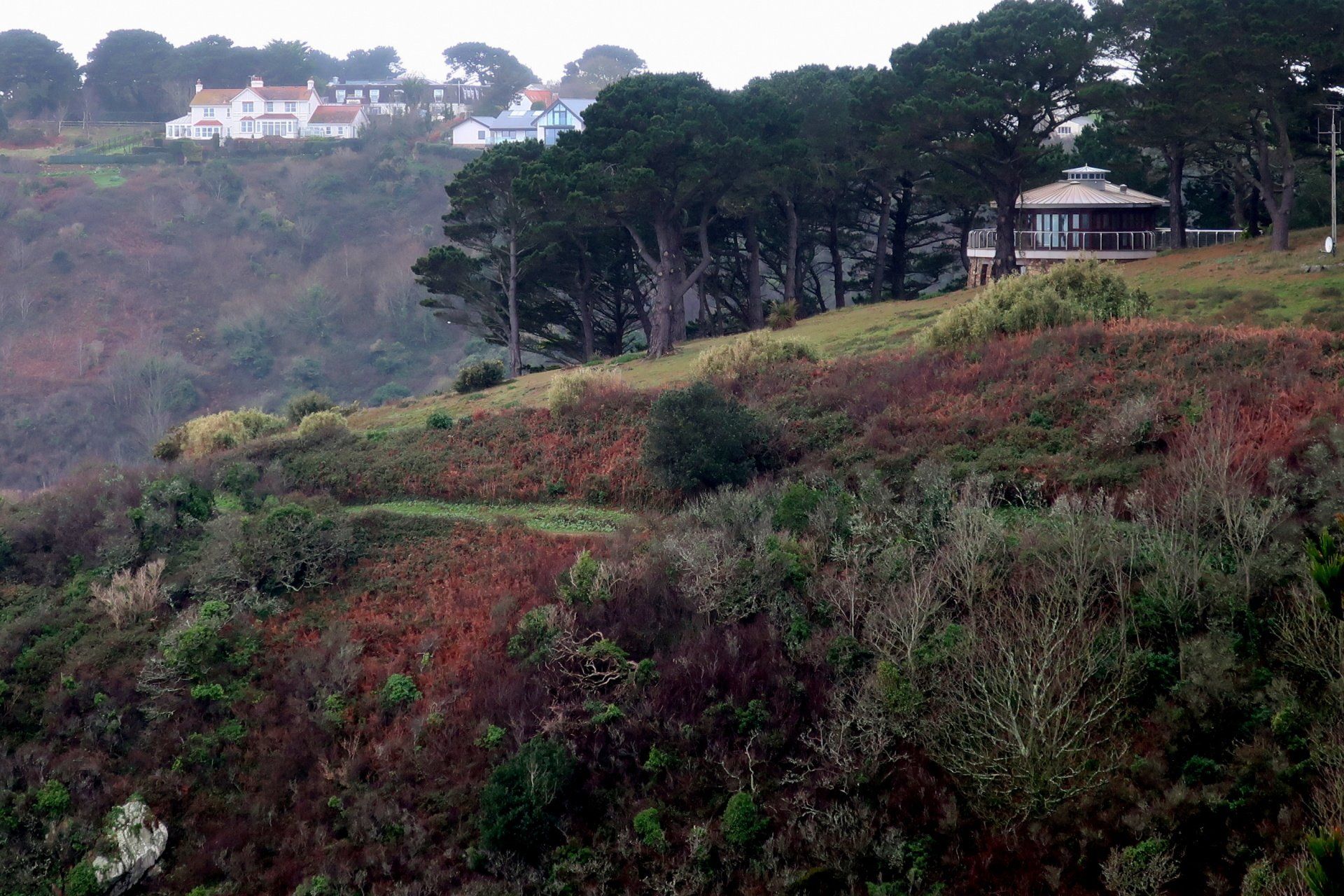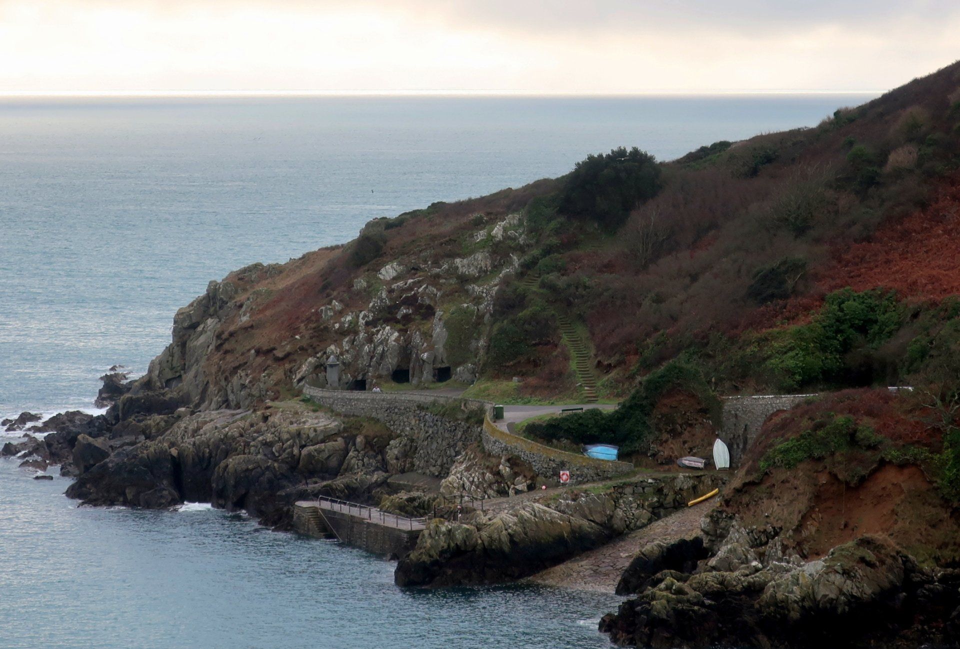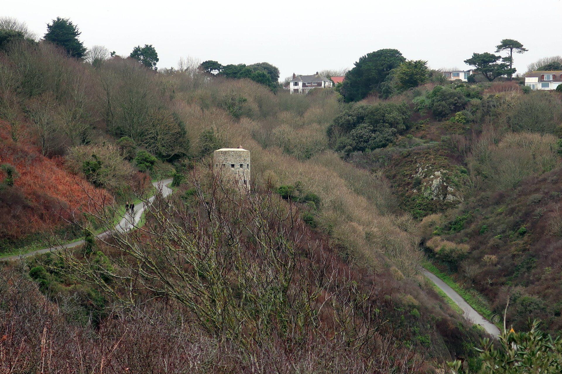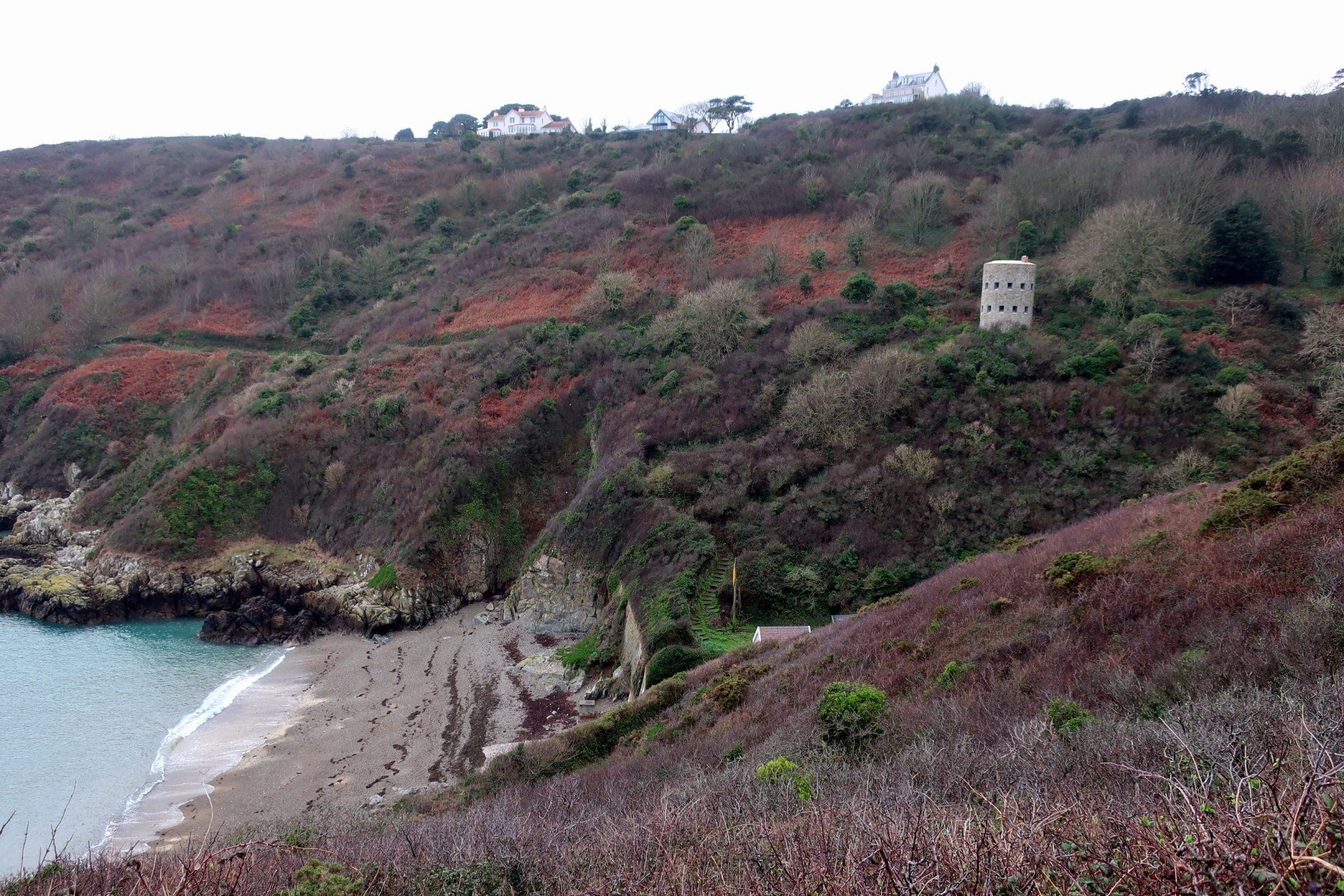 Back up, passing through Icart and then down a long, steep set of steps to Saints Bay, where I have a good mooch around the tiny moorings and then the loophole tower (No.14) along the road.