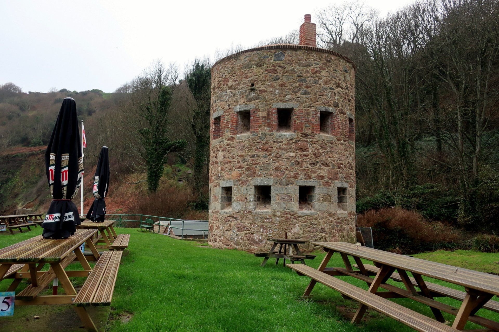 Fermain Bay is the last main beach, this a location for a popular café in the warmer months but closed now and the beach is all quiet, the water just gently lapping on to the shingle. It is also home to another loophole tower (No.15 – the “Pepper Pot”) currently being renovated as holiday accommodation.