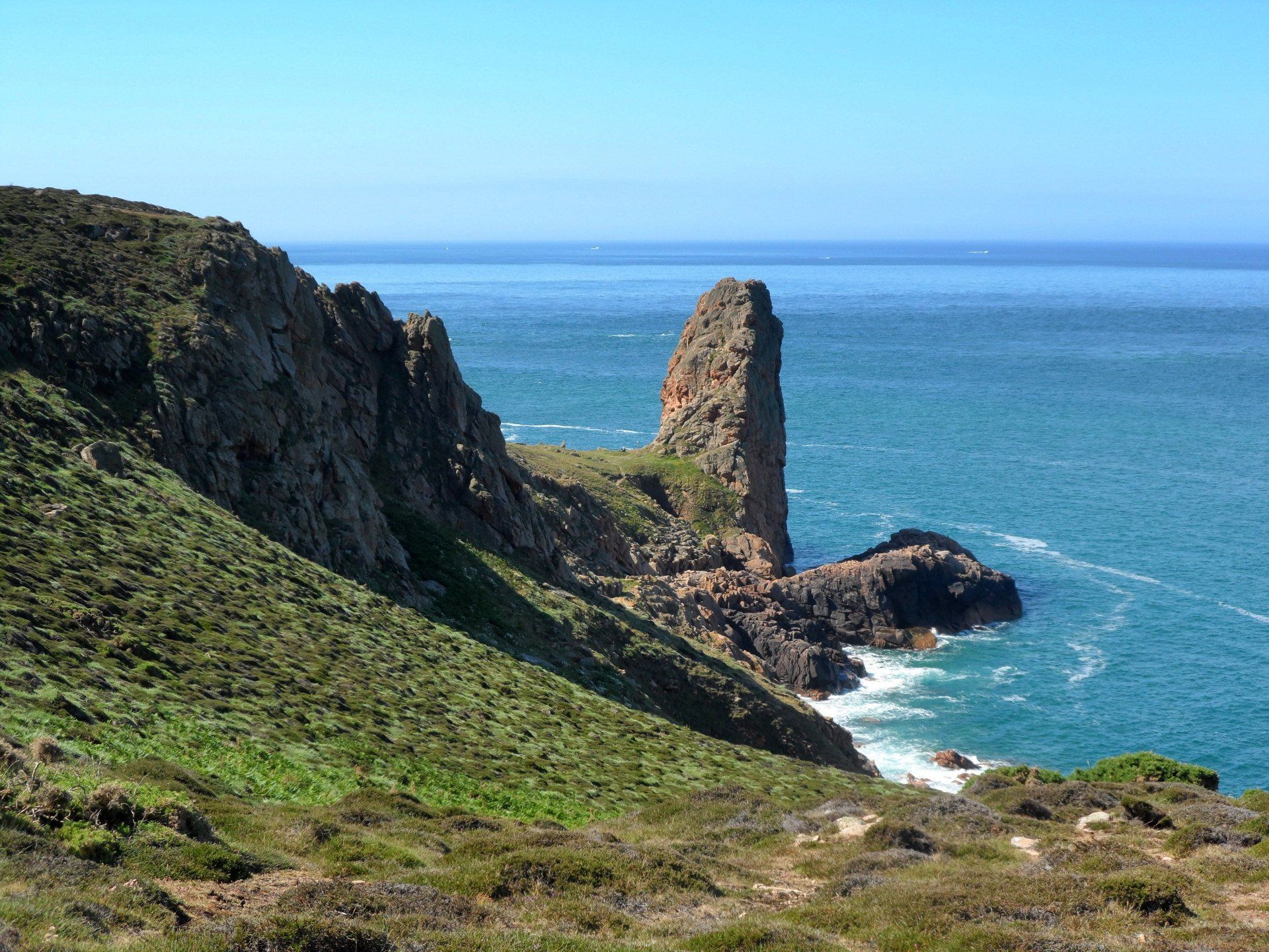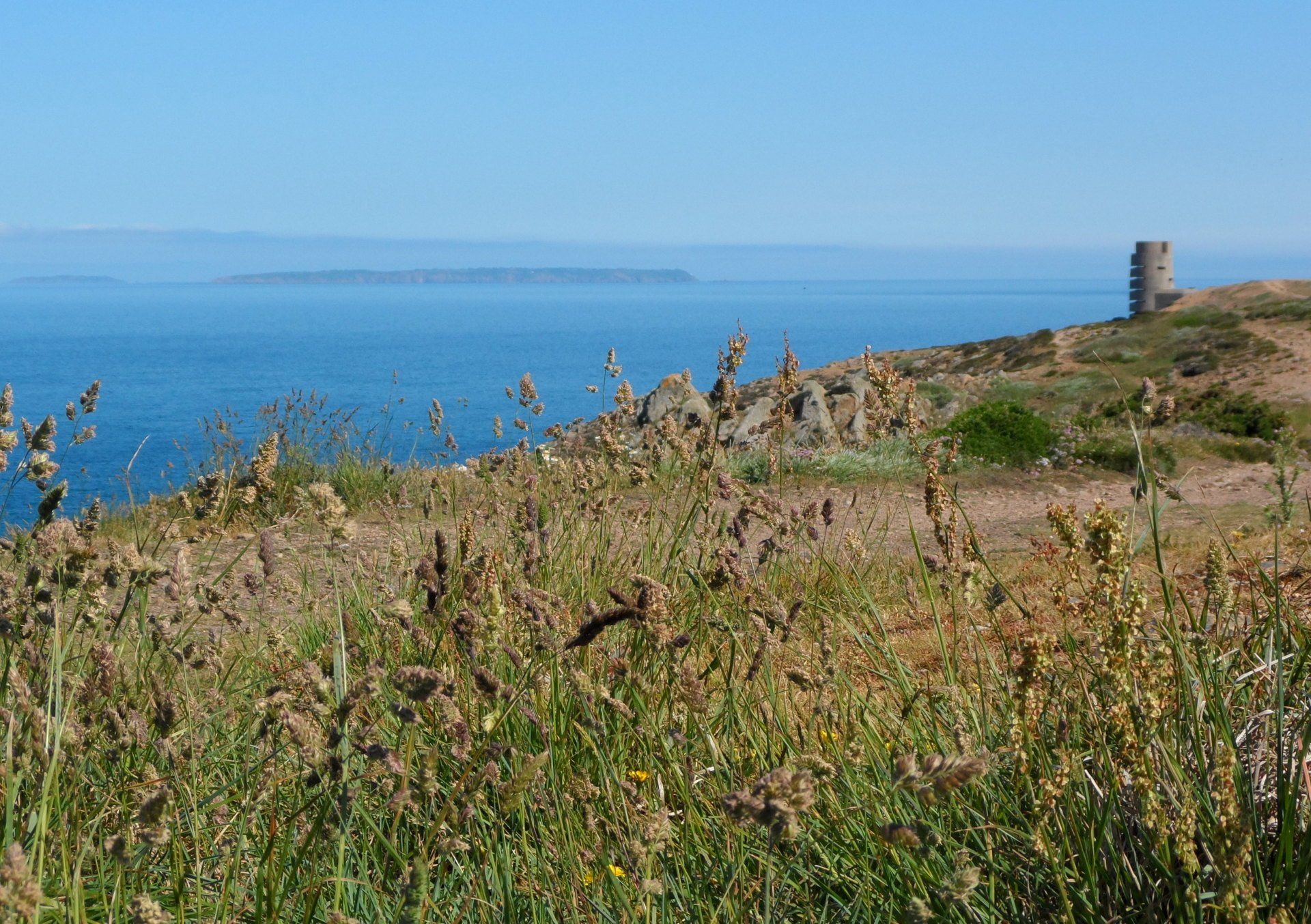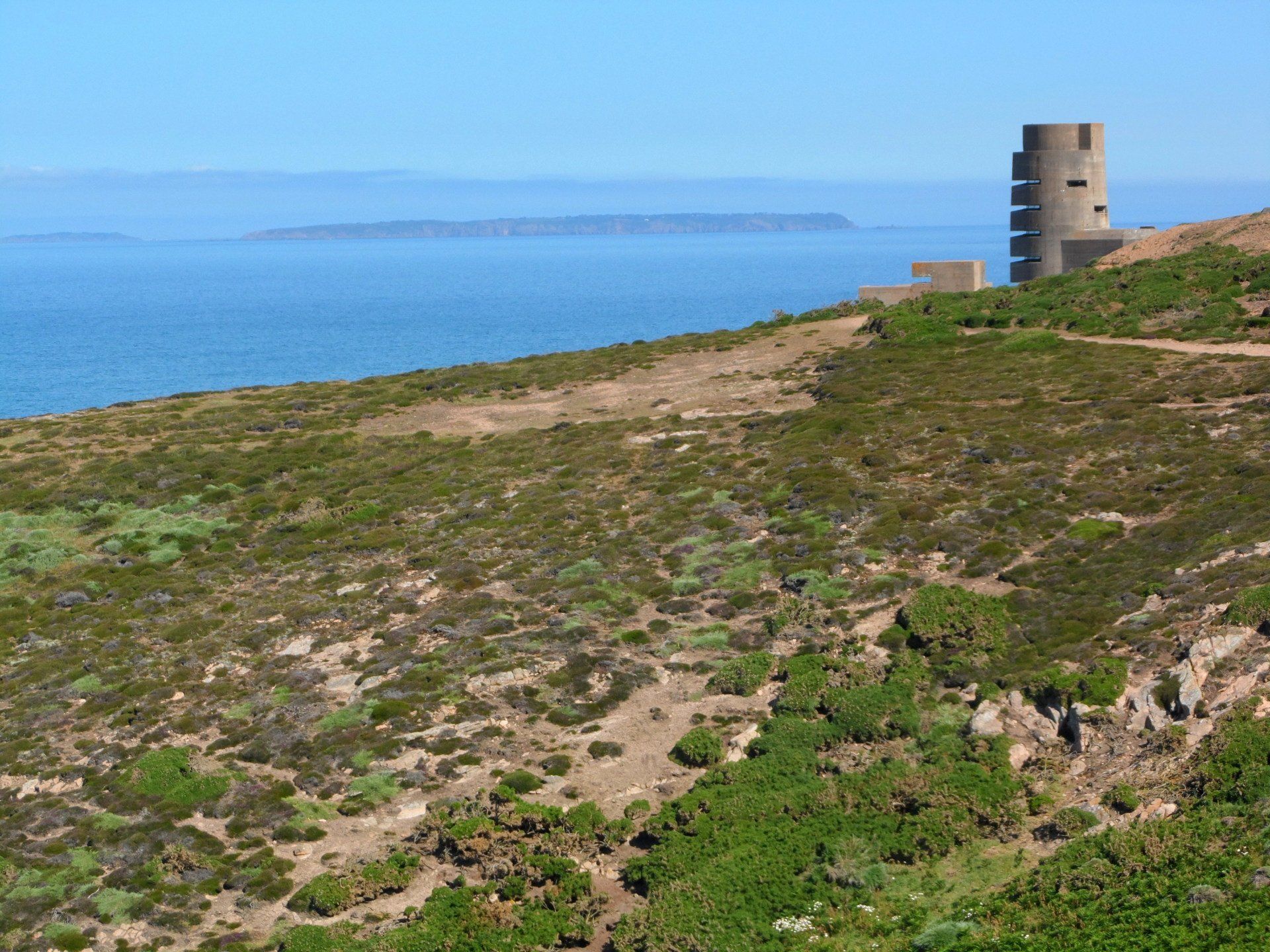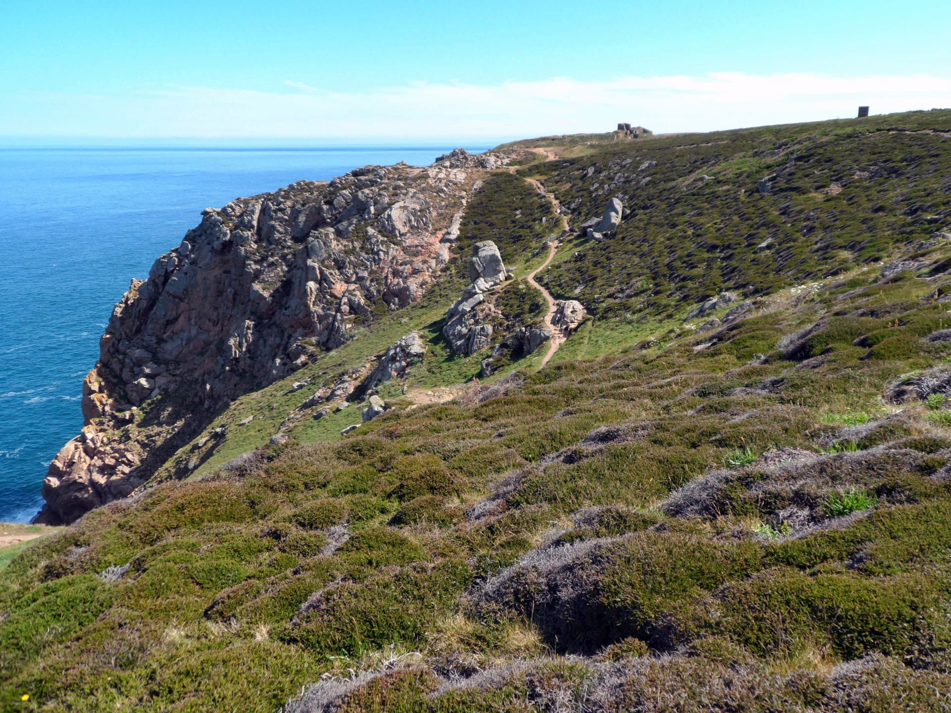 Also prevalent in this area are various WWII fortifications, so lots of bits of concrete! A couple of observation towers stand out, these looking to the North where Sark and Guernsey can be seen in the distance. A different sort of structure also soon appears, the remaining ruins of Grosnez castle, a fortification dating from the 14th Century.