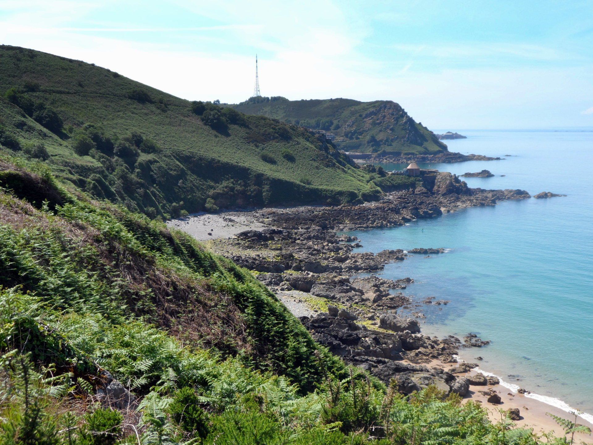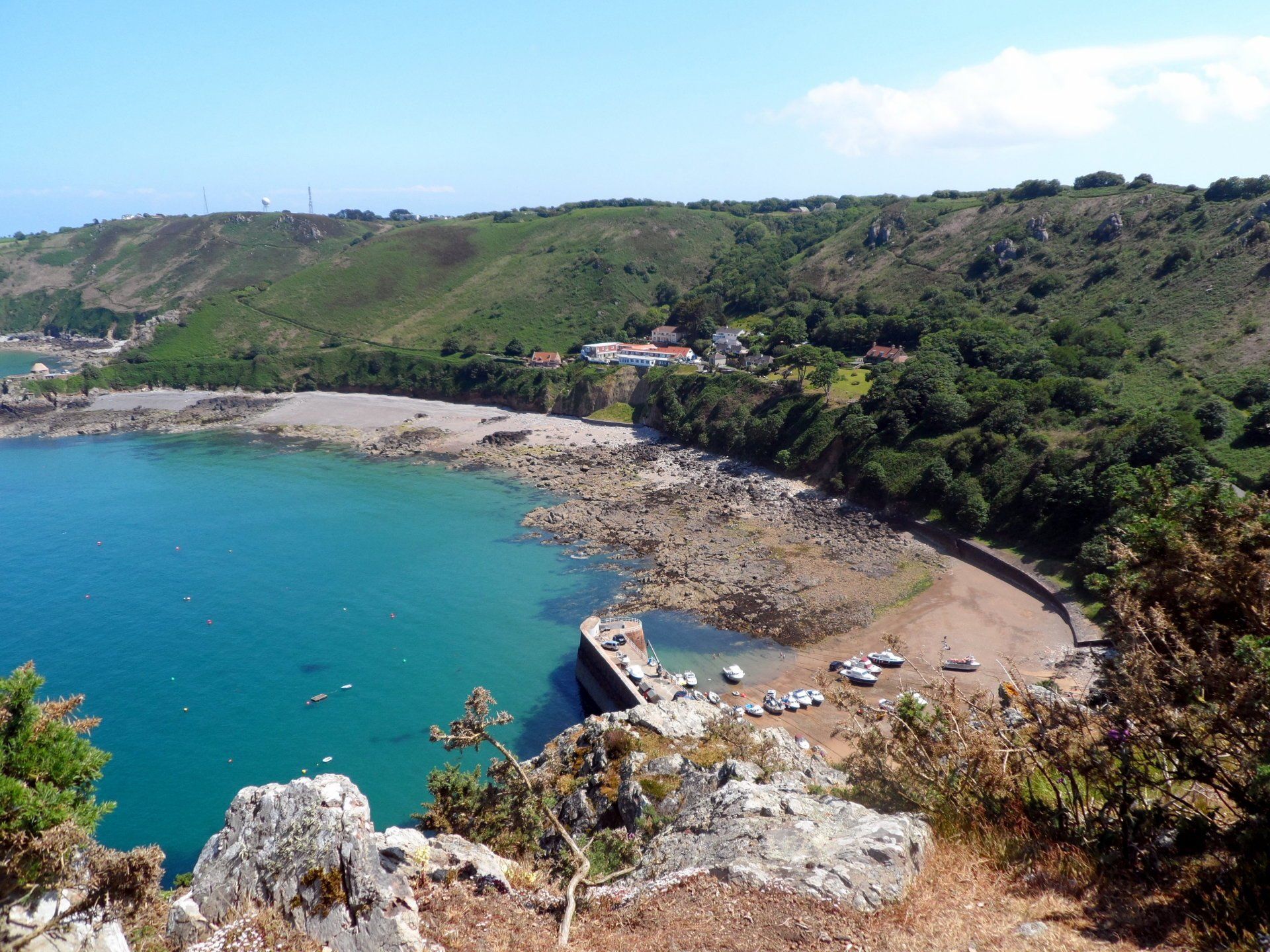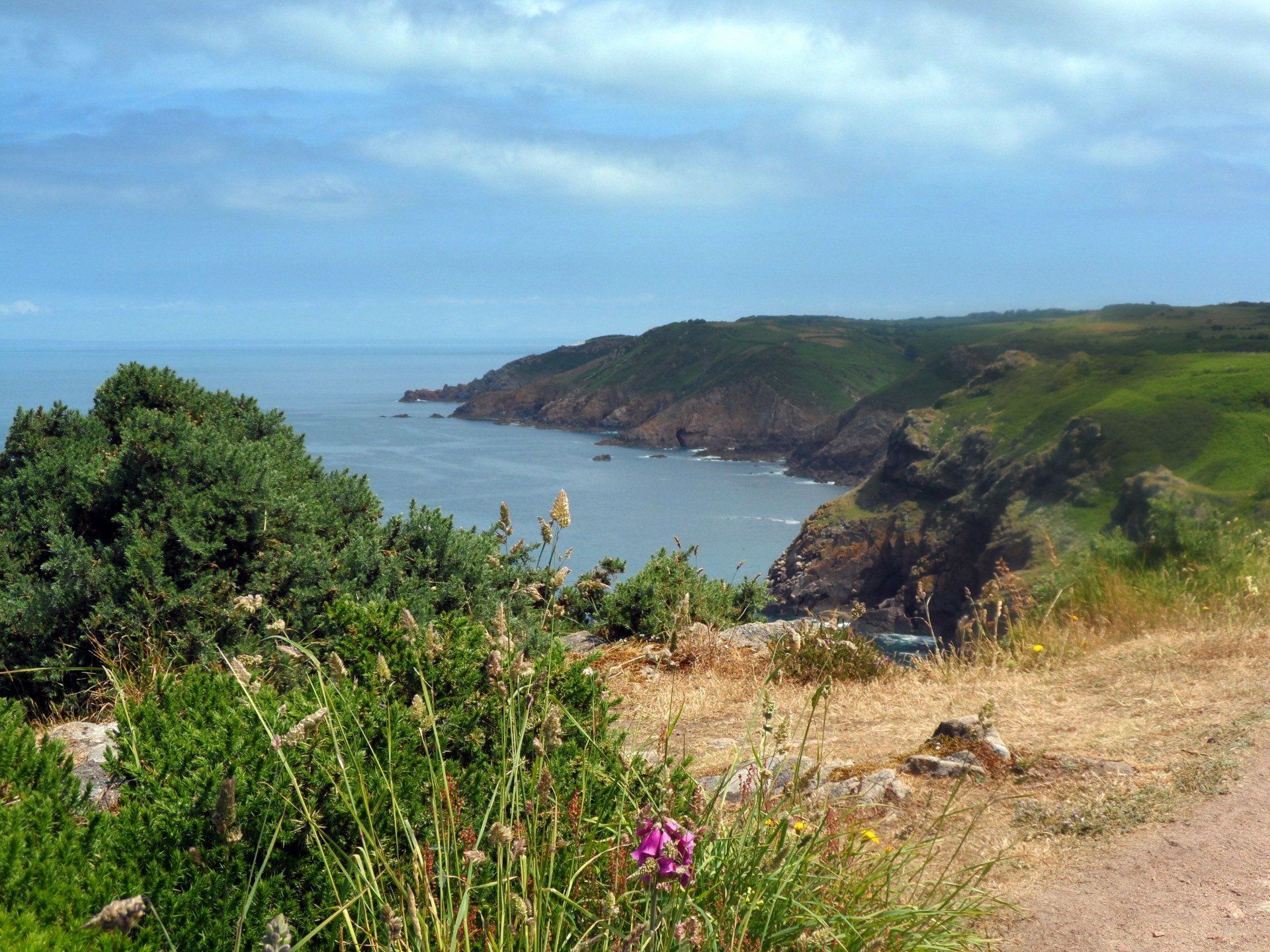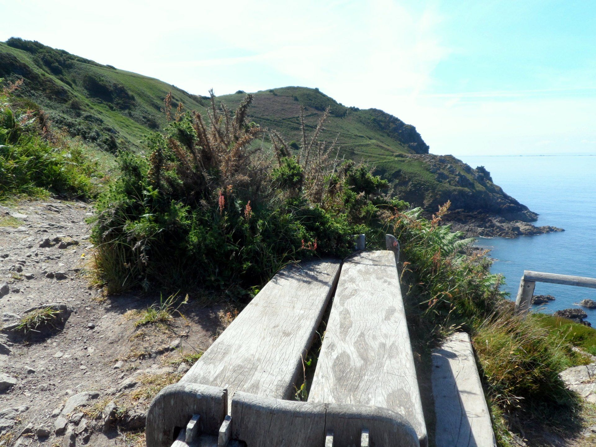 The last few miles have seen the path constantly rise up and then dive down again, requiring quite some exertion in places. A couple of miles before reaching Bouley bay I have a well-earned breather, having a snack whilst sat high up, just enjoying and taking in the scene.