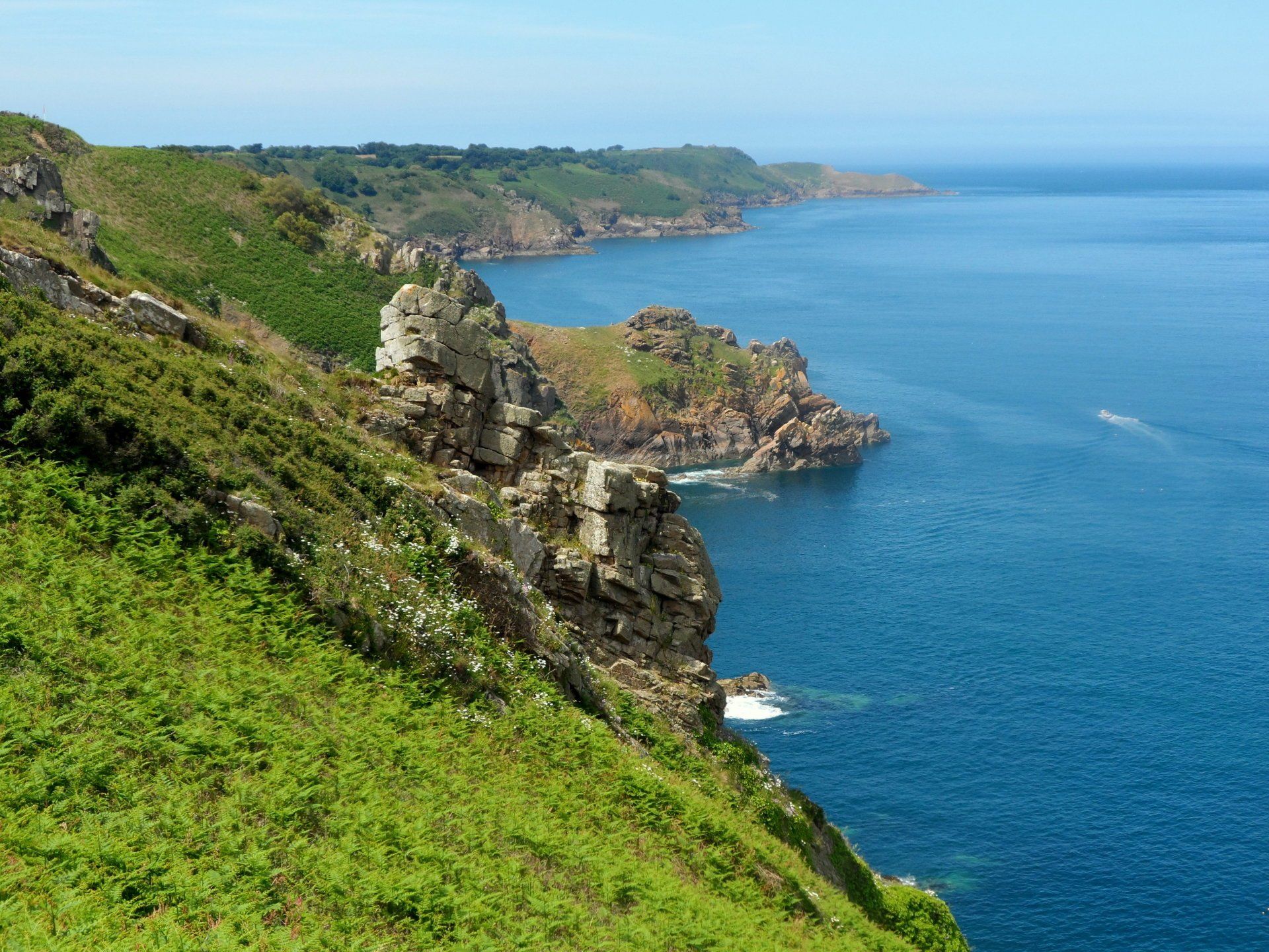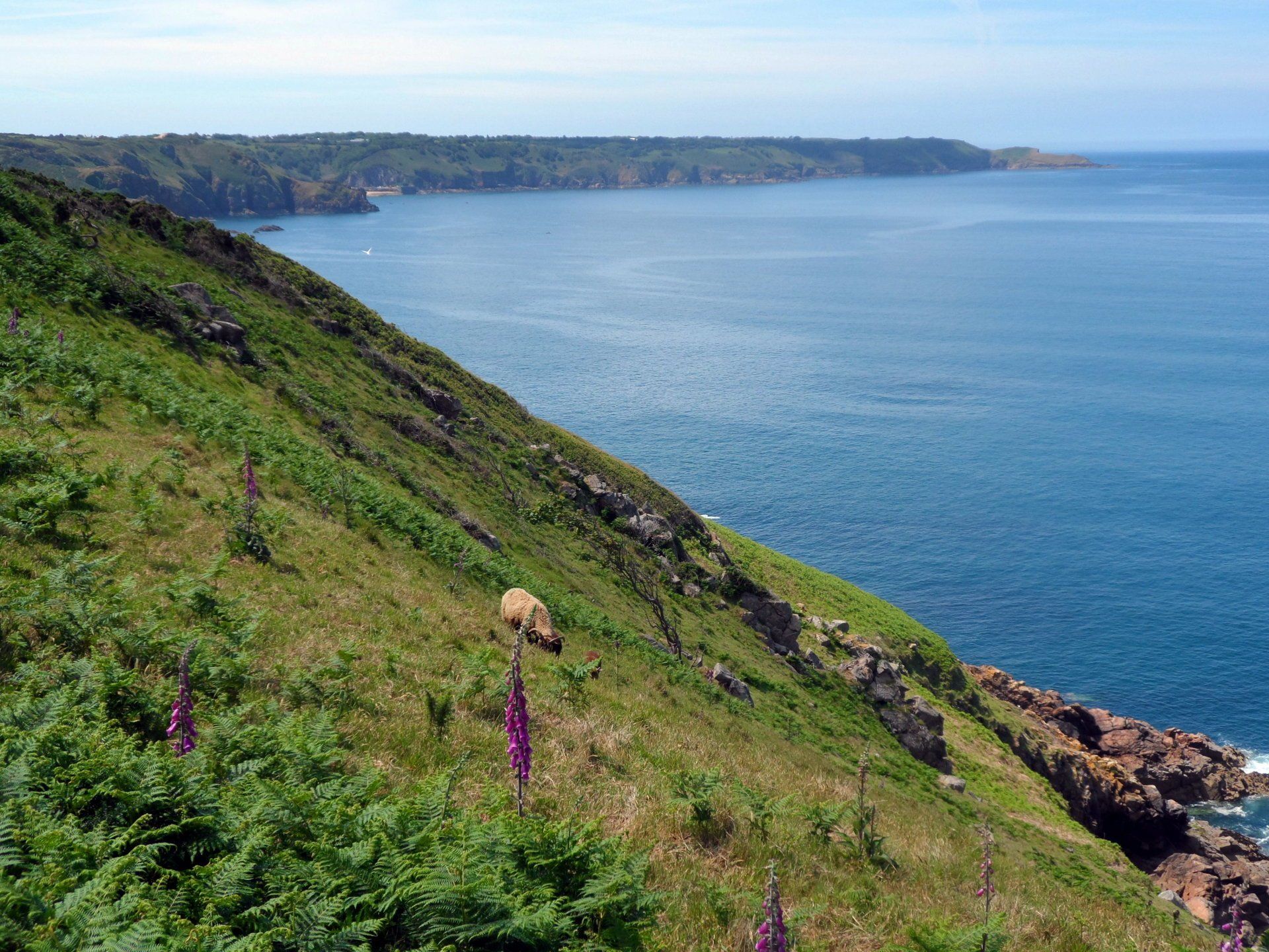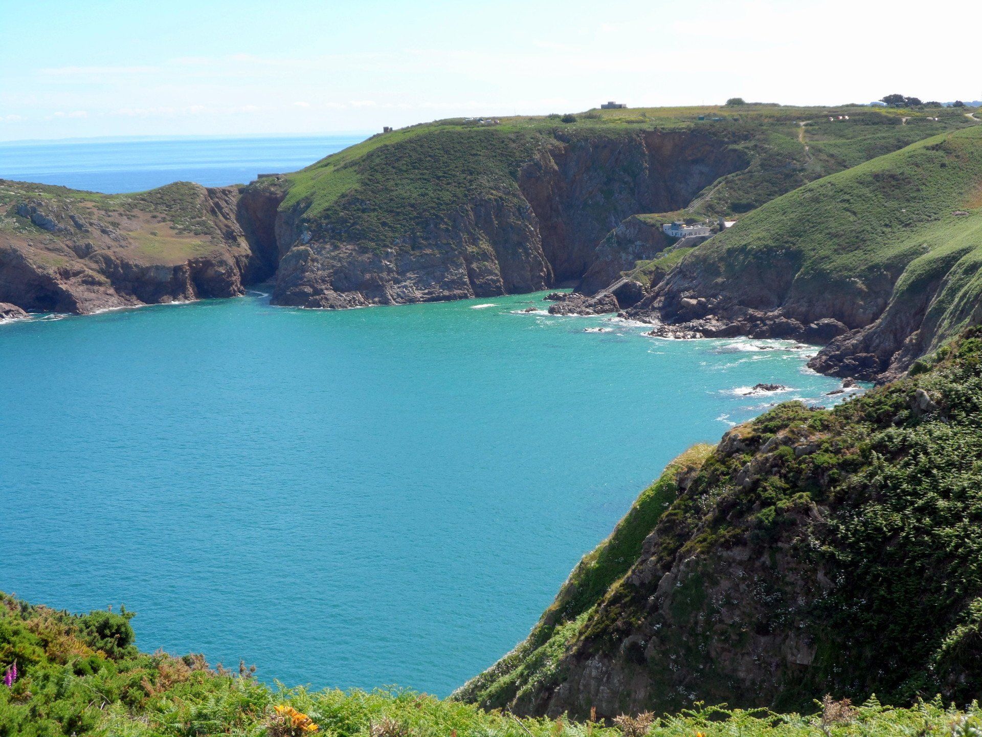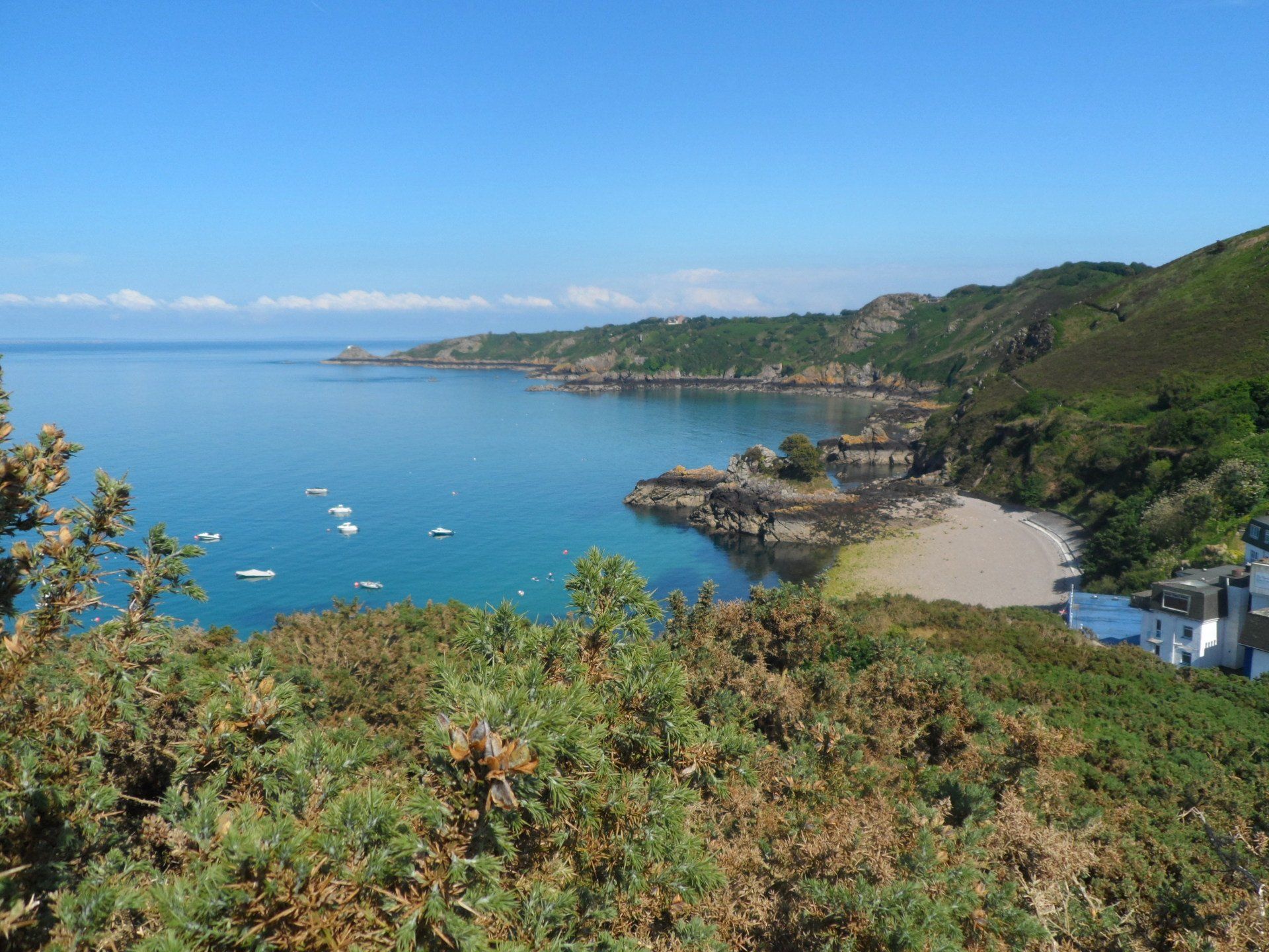 The last few miles have seen the path constantly rise up and then dive down again, requiring quite some exertion in places. A couple of miles before reaching Bouley bay I have a well-earned breather, having a snack whilst sat high up, just enjoying and taking in the scene.
