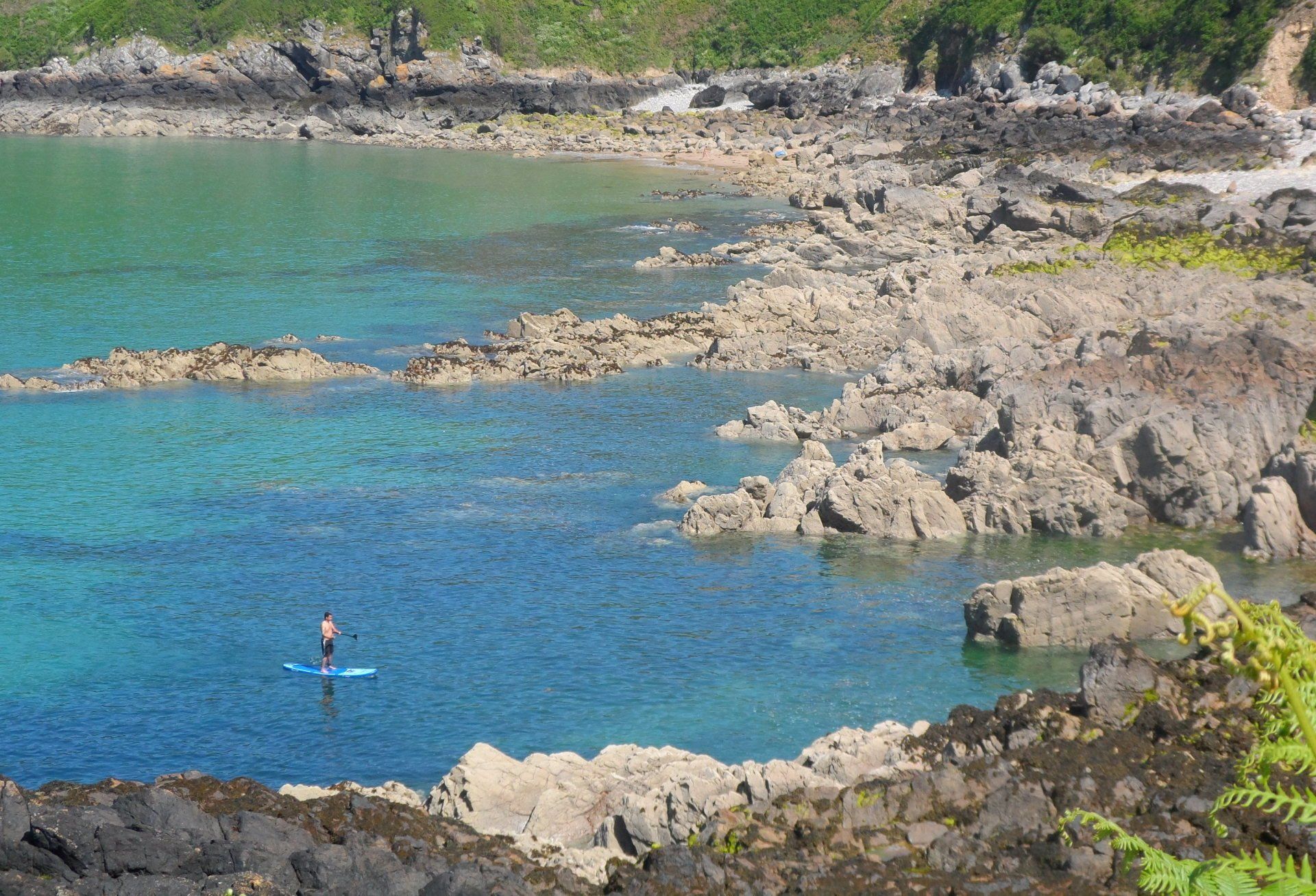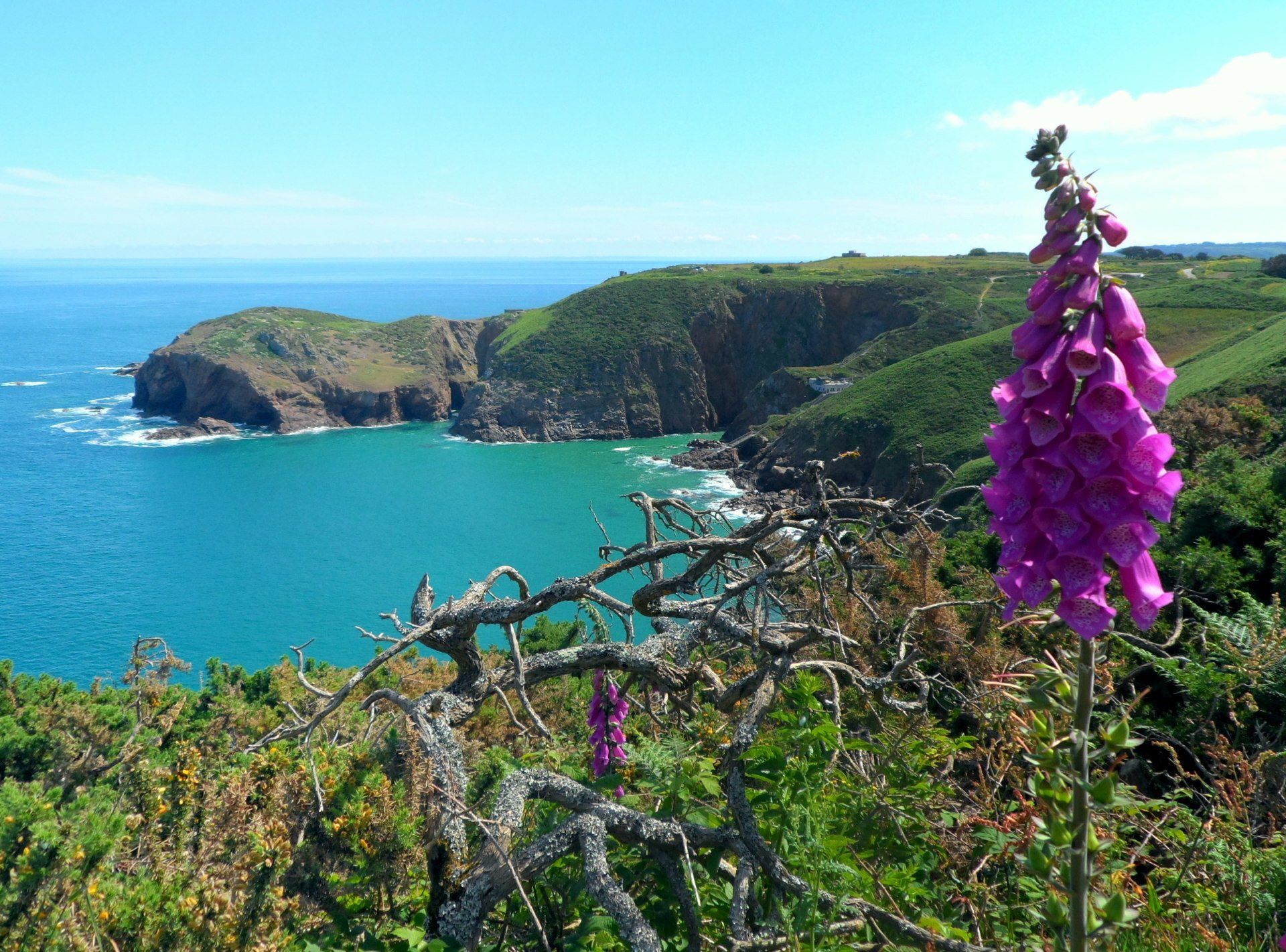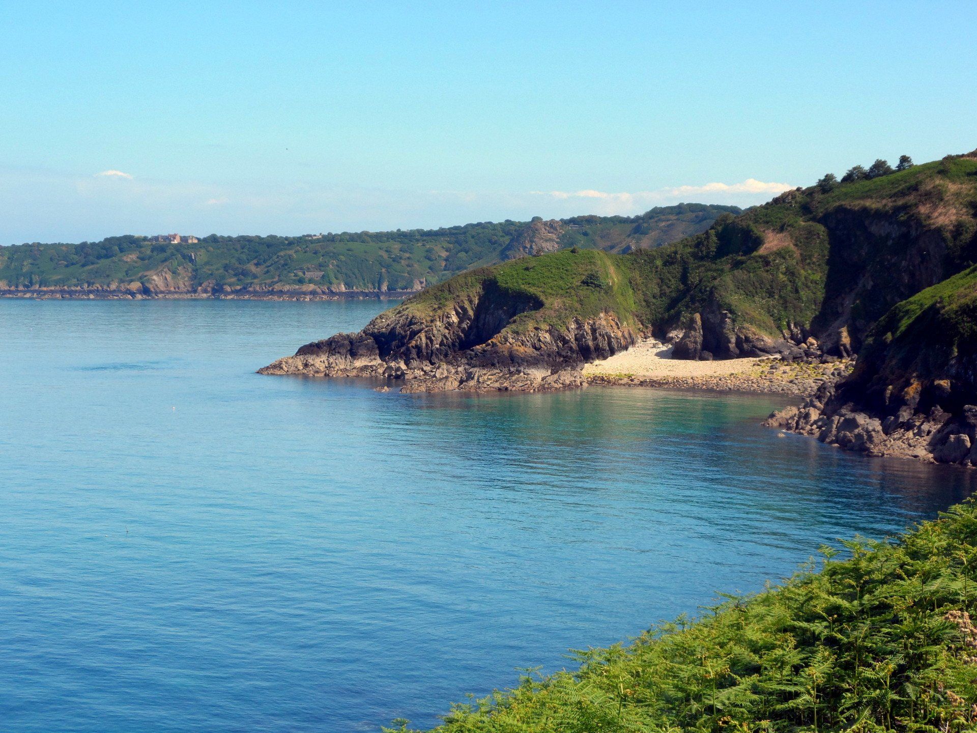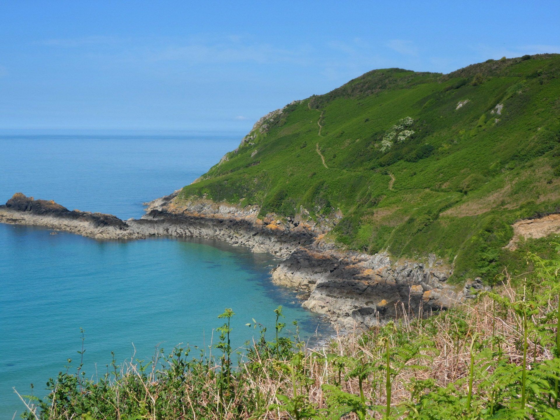 The last few miles have seen the path constantly rise up and then dive down again, requiring quite some exertion in places. A couple of miles before reaching Bouley bay I have a well-earned breather, having a snack whilst sat high up, just enjoying and taking in the scene.