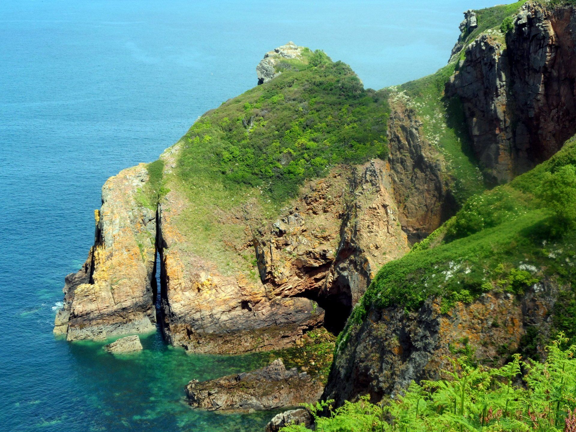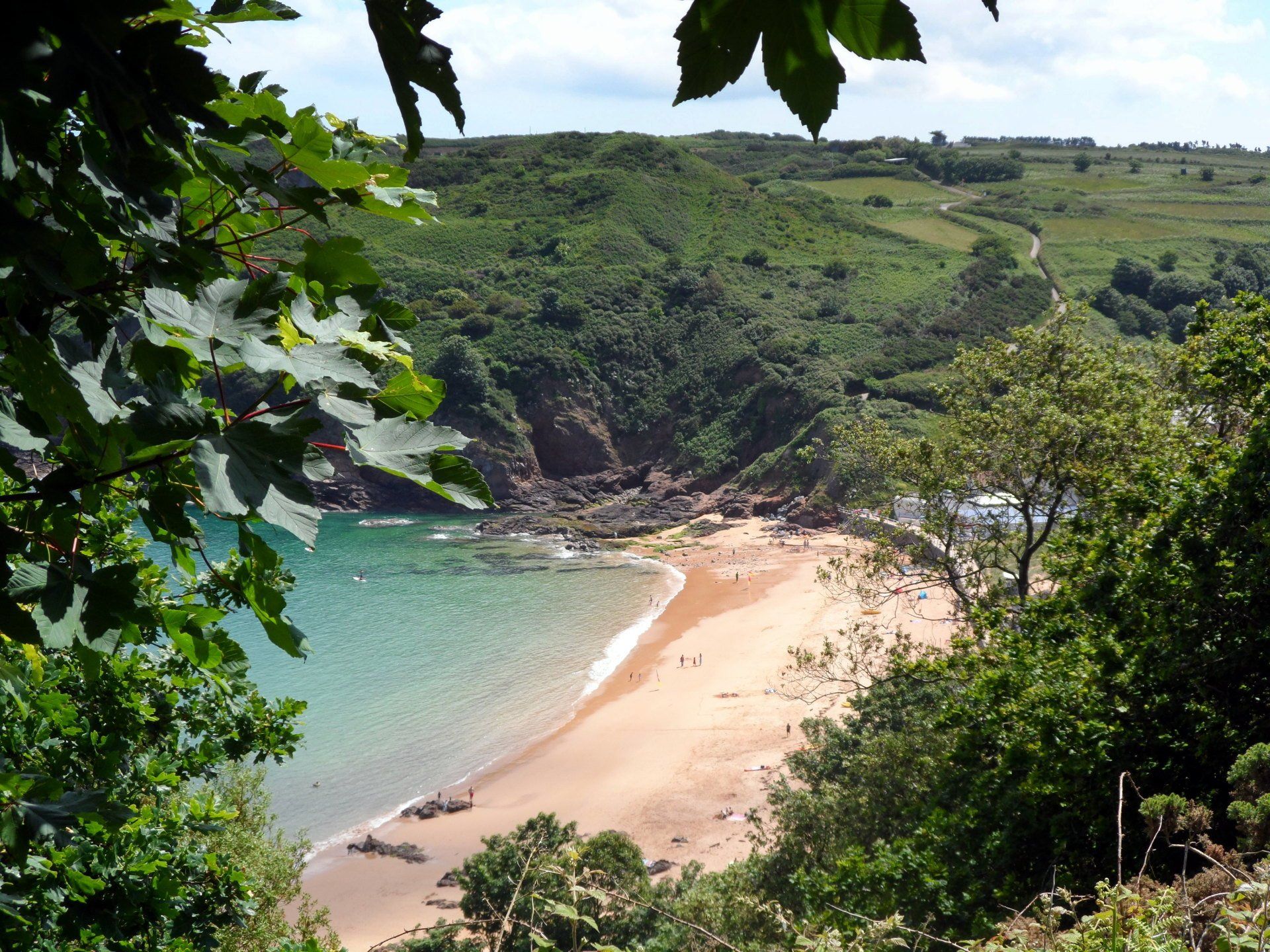 Next destination is Greve de Lecq – my lunch stop – and I detect this initially from the sound of surf on beach, then it pops into view between a gap in the foliage. Greve de Lecq is another great beach – Jersey really is blessed with beaches – here golden sands nestled at the base of the cliffs. It is busy today with families enjoying the good weather. I stop for lunch at the café, a pasta carbonara with a Jersey cider.