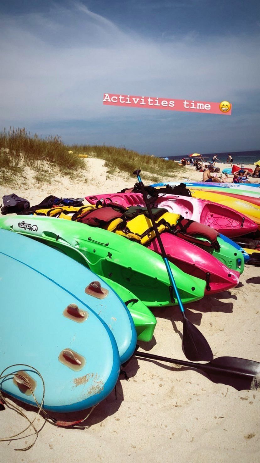 We stake out a spot on the sand and snack and chill out for a bit, then off to rent our kayaks. We first paddle out and up to the Northern end of the beach, then return and pass by Belvoir before turning around and come back but following the inshore coastline.