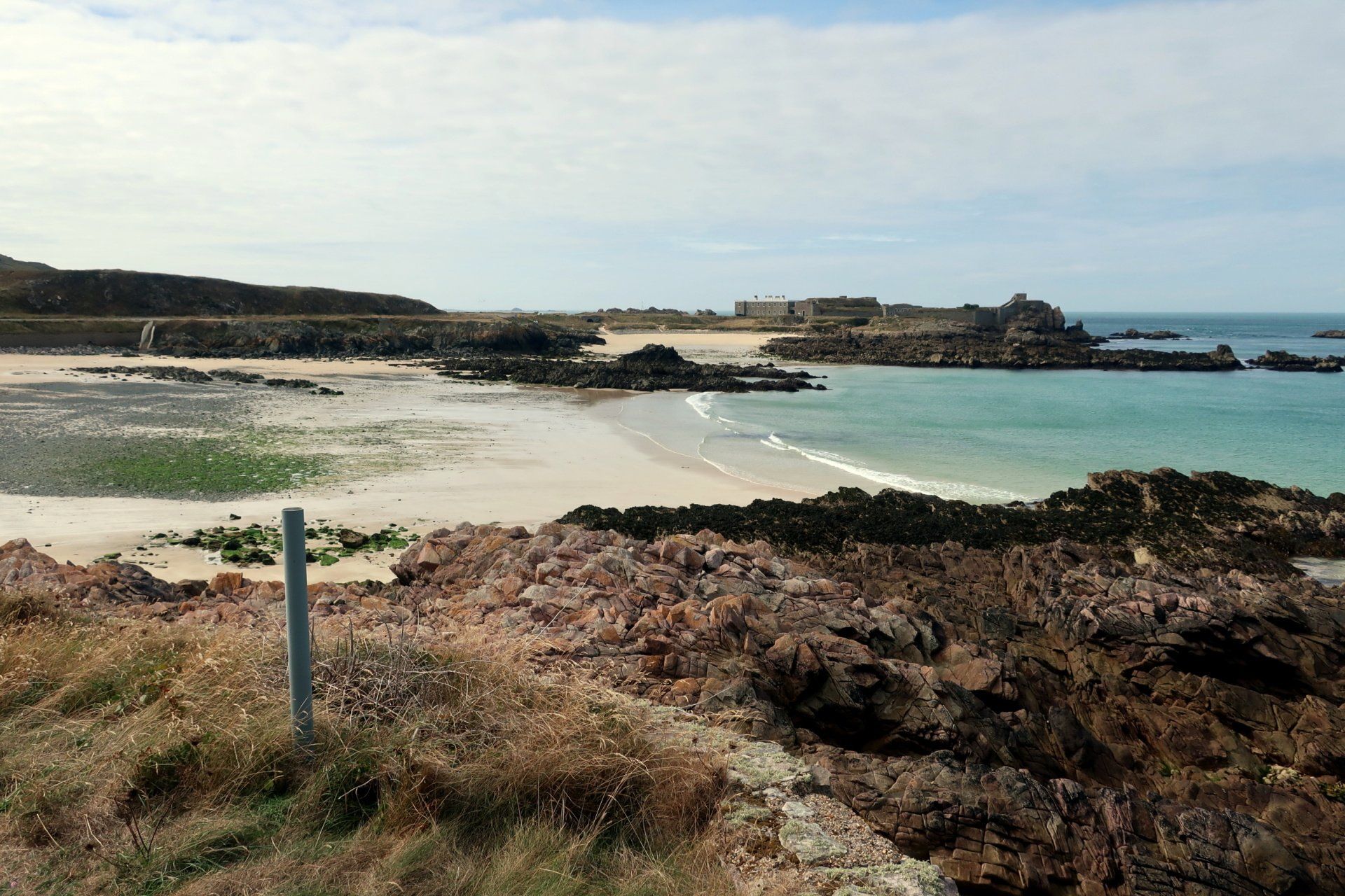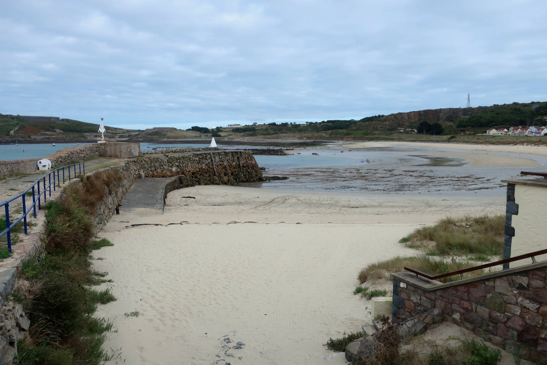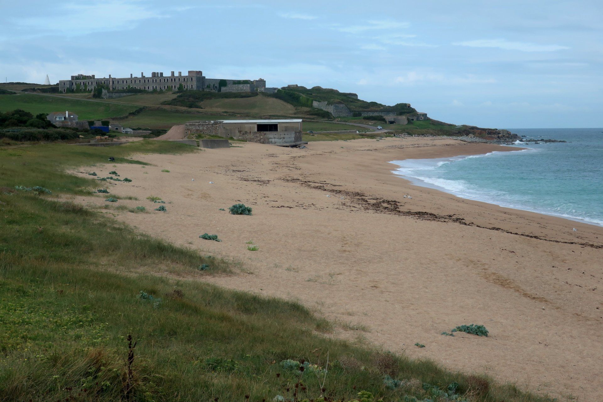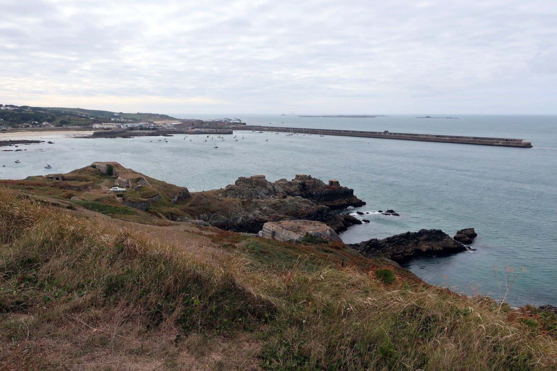 We disembark into Braye Harbour and I load my backpack and begin my anti-clockwise coastal walk. Initially this starts through a somewhat messy harbour and industrial environment but that is very quickly left behind and leads into beaches and old forts, which when mixed with cliffs, is really the essence of this walk.