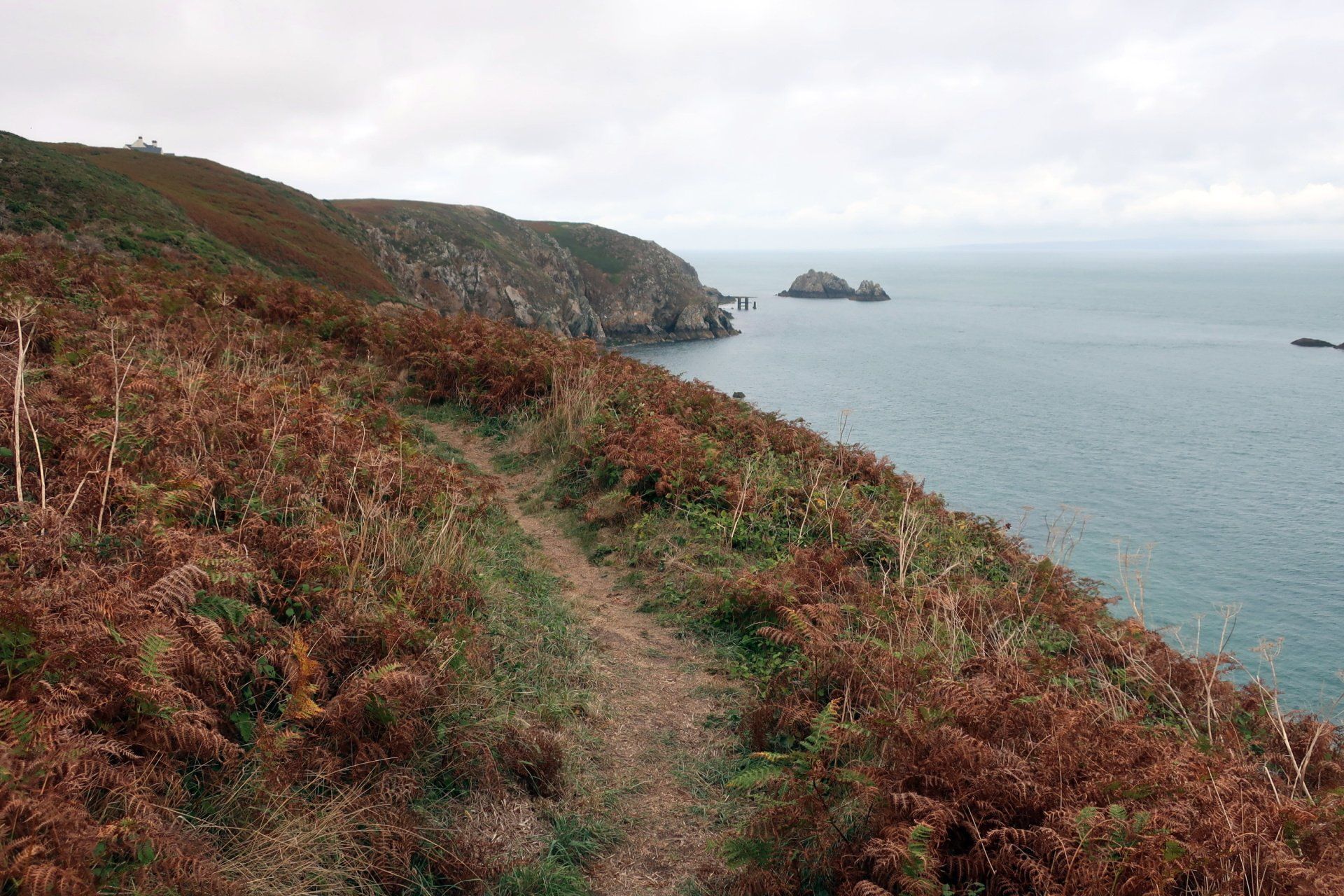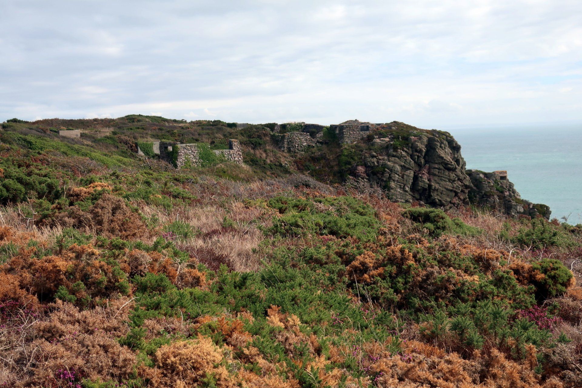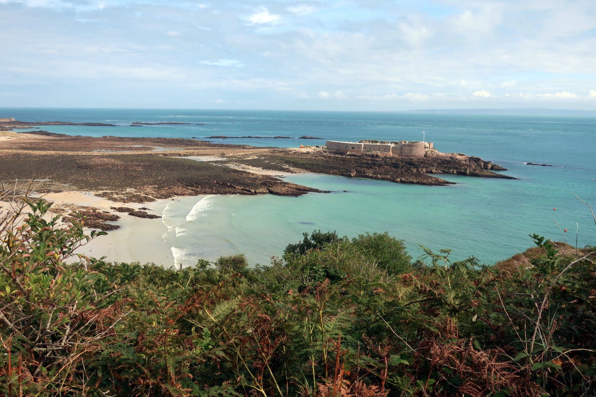 We disembark into Braye Harbour and I load my backpack and begin my anti-clockwise coastal walk. Initially this starts through a somewhat messy harbour and industrial environment but that is very quickly left behind and leads into beaches and old forts, which when mixed with cliffs, is really the essence of this walk.
