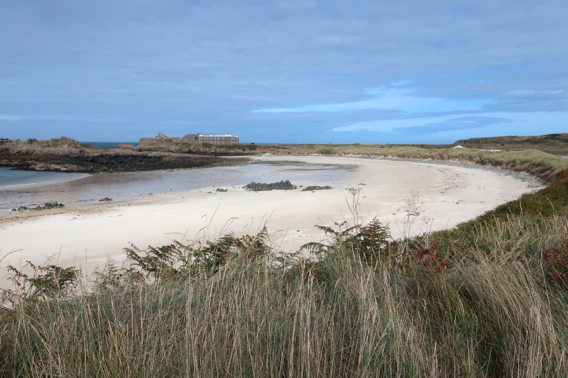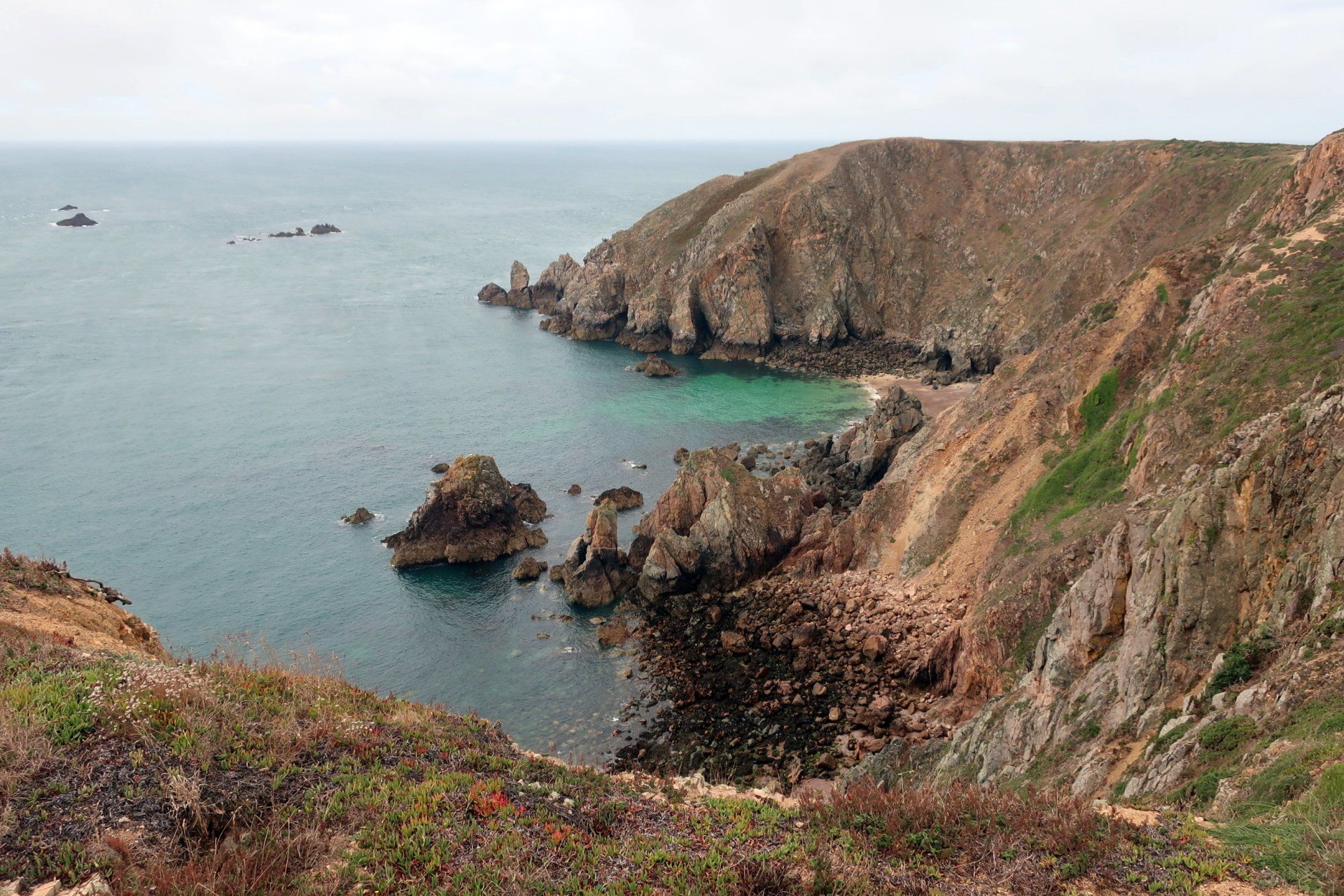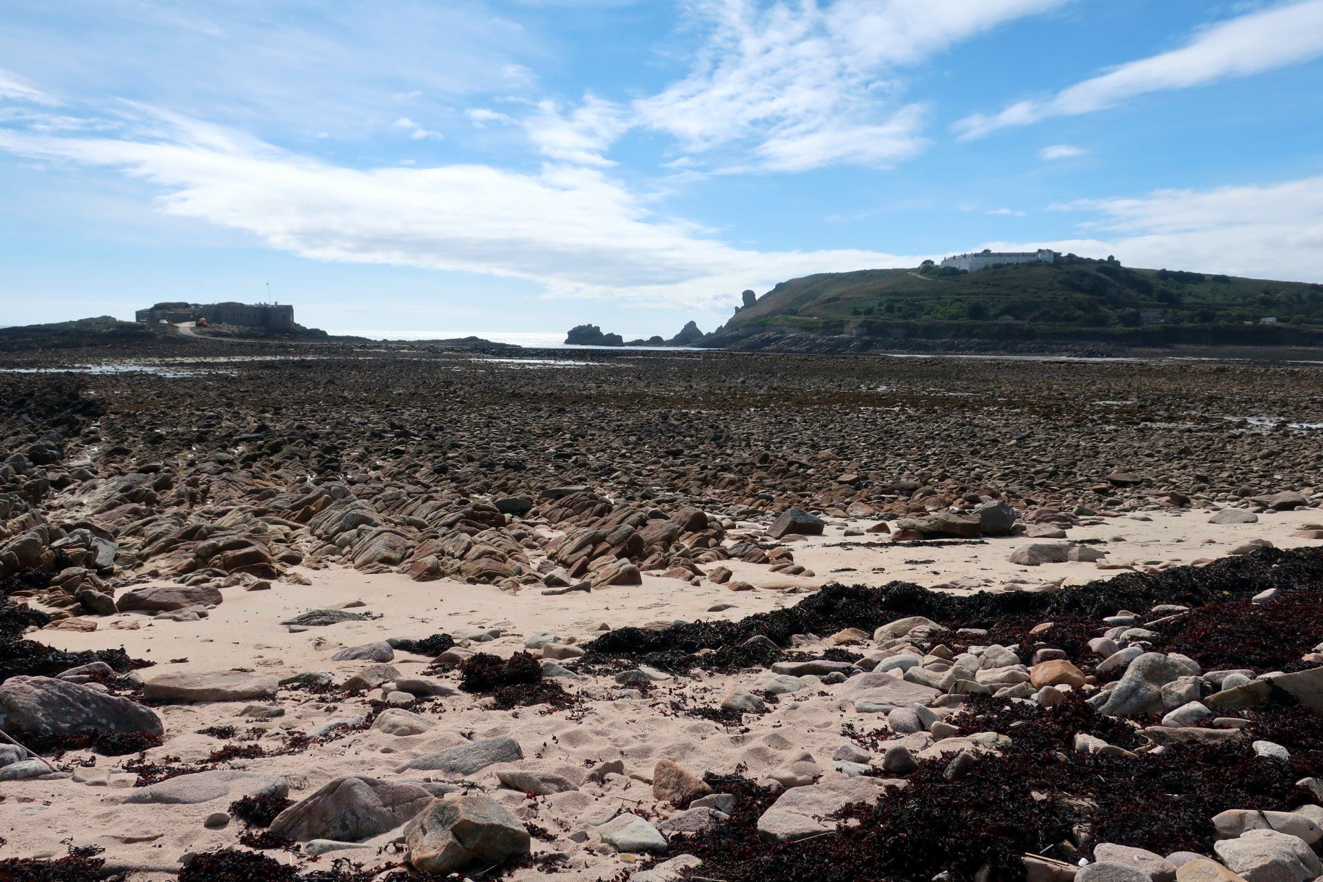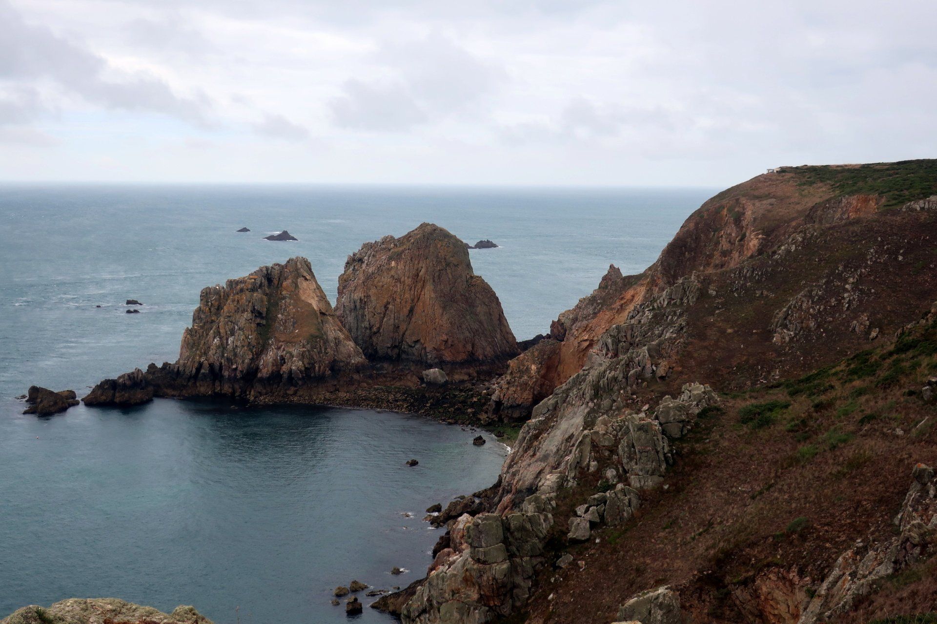 We disembark into Braye Harbour and I load my backpack and begin my anti-clockwise coastal walk. Initially this starts through a somewhat messy harbour and industrial environment but that is very quickly left behind and leads into beaches and old forts, which when mixed with cliffs, is really the essence of this walk.