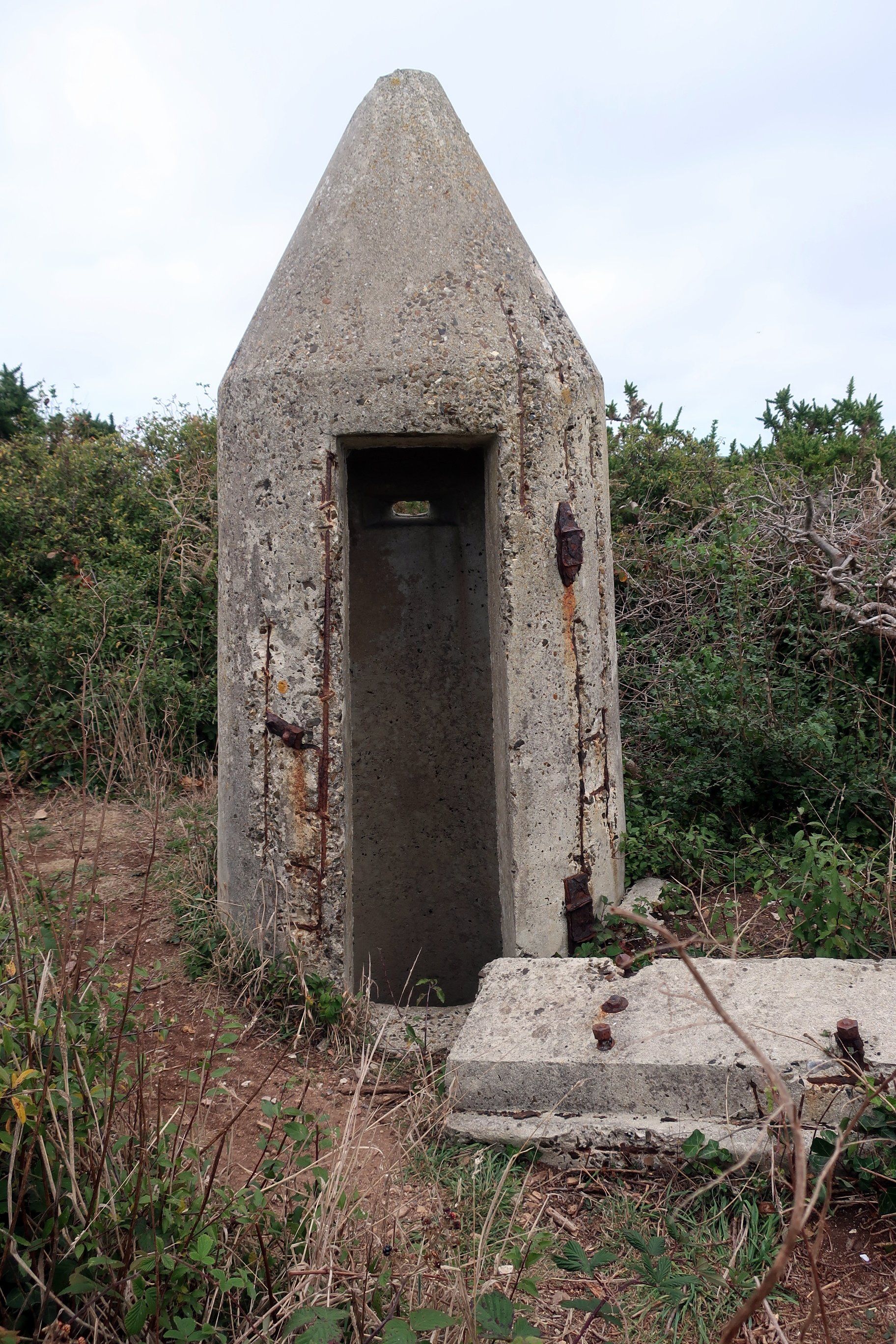 The next few miles are generally along the cliff path, interspersed with a few points of interest, including a couple more bunkers to explore. An odd one is the sentry box, literally a person sized capsule with observation slits. It just doesn’t seem a very sensible defence item – virtually no visibility and trapped in a tomb like box. I got in and it was seriously claustrophobic and that is with no door and daylight, imagine in the dark!