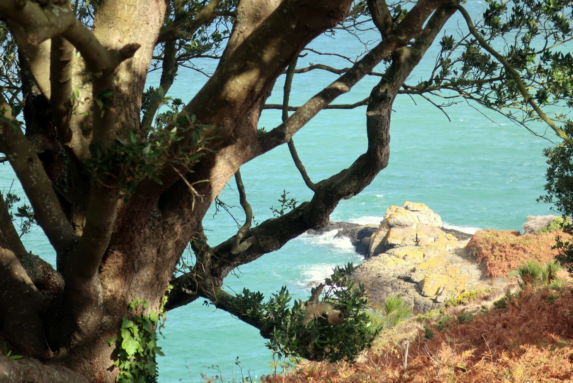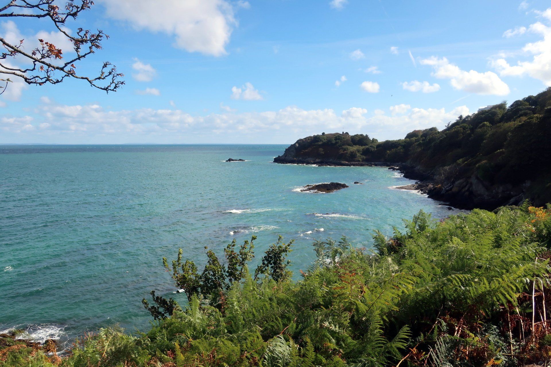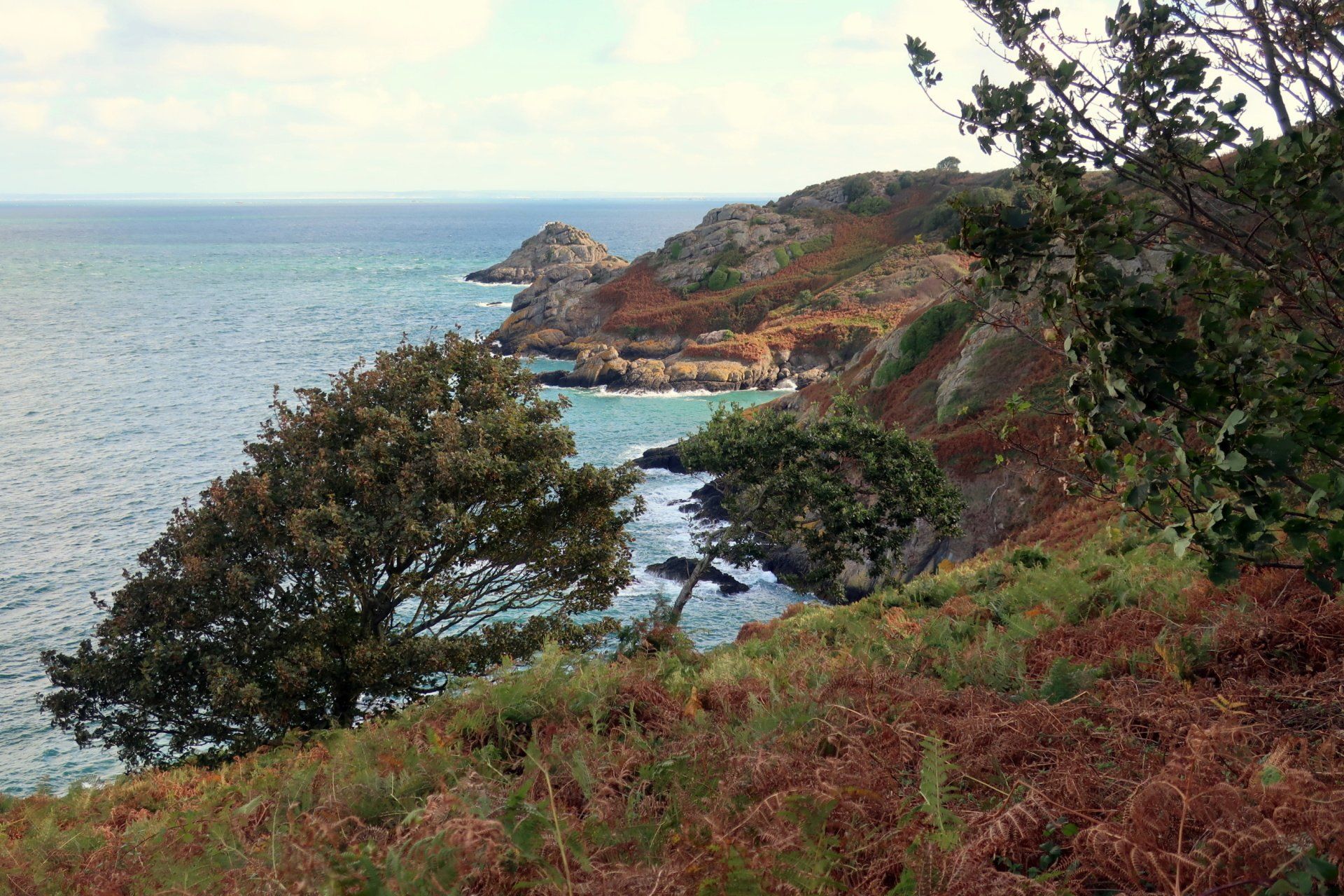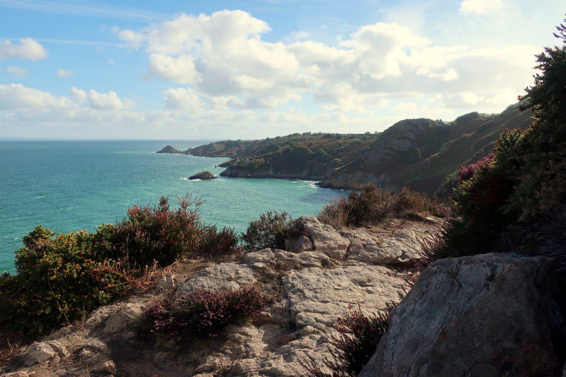 I reach Bouley Bay to pick up where I left off in June and set off uphill, making my way through the tree line out on to the more open cliff path and the joy of the open views, in both directions. The tide is high so the waves are noisily breaking on the beach, the northerly wind fresher at this time of the morning is a little bracing. All gives a fine feeling to be back out on the cliffs, at one with nature.