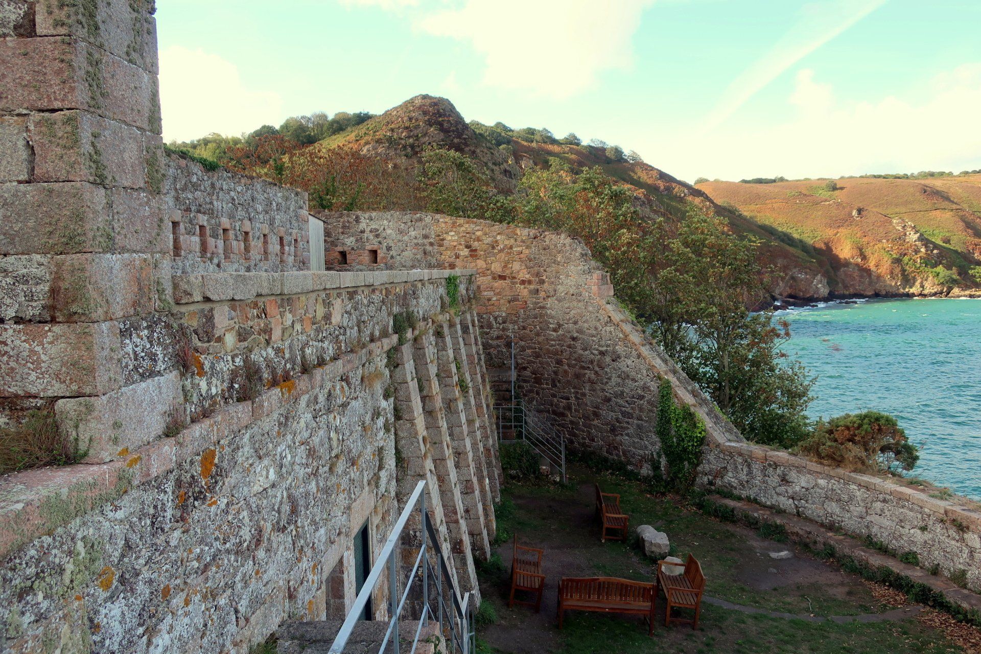 I have a mooch around inside L’Etacquerel Fort, perched on the cliff edge, a short diversion from the main path, this a defensive battery built in the 1830’s, now seemingly used for occasional functions.