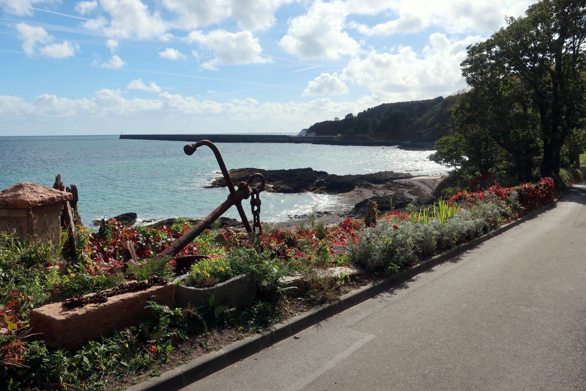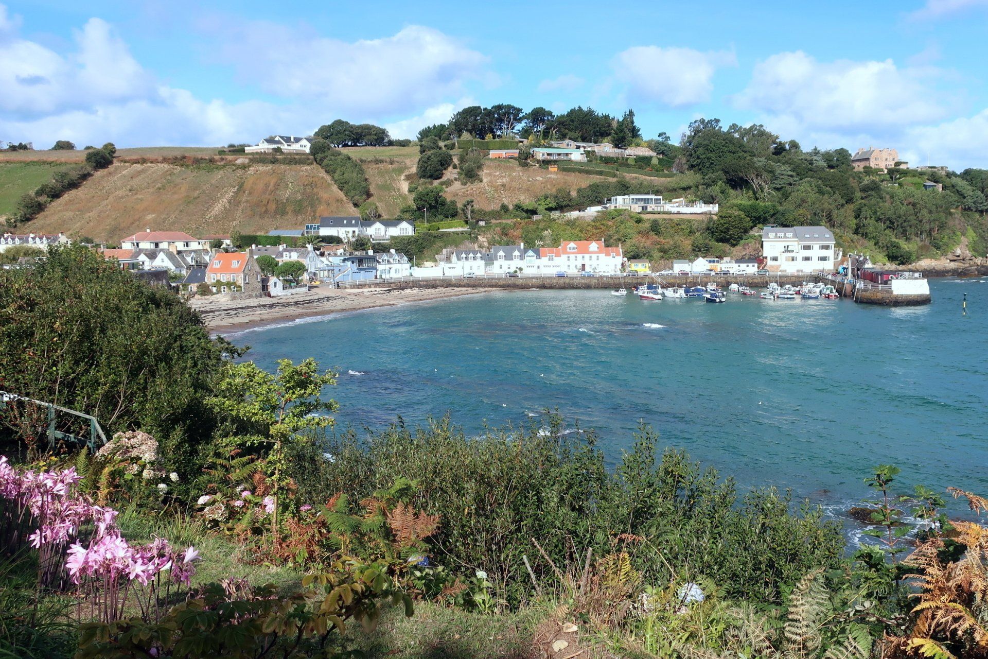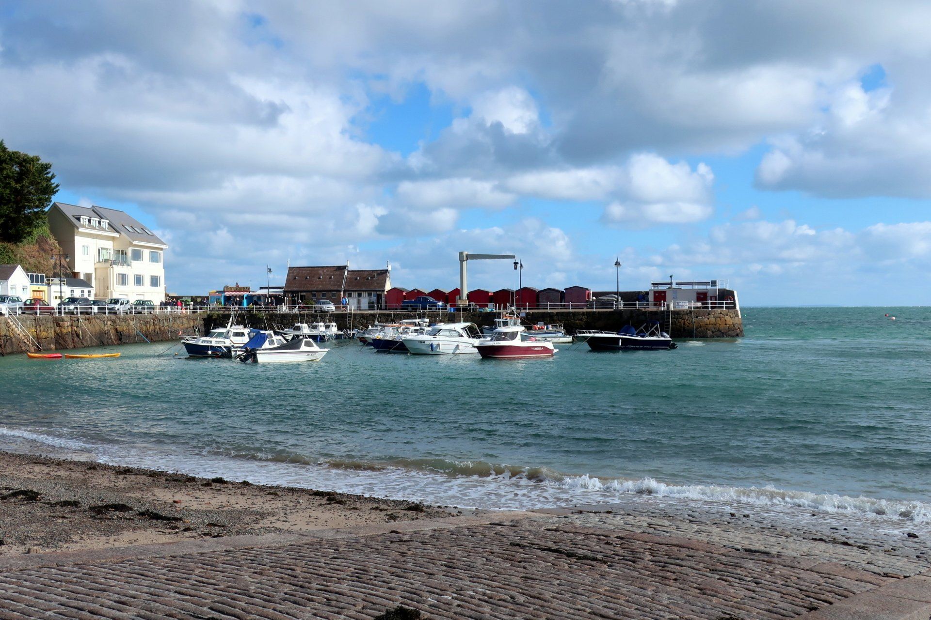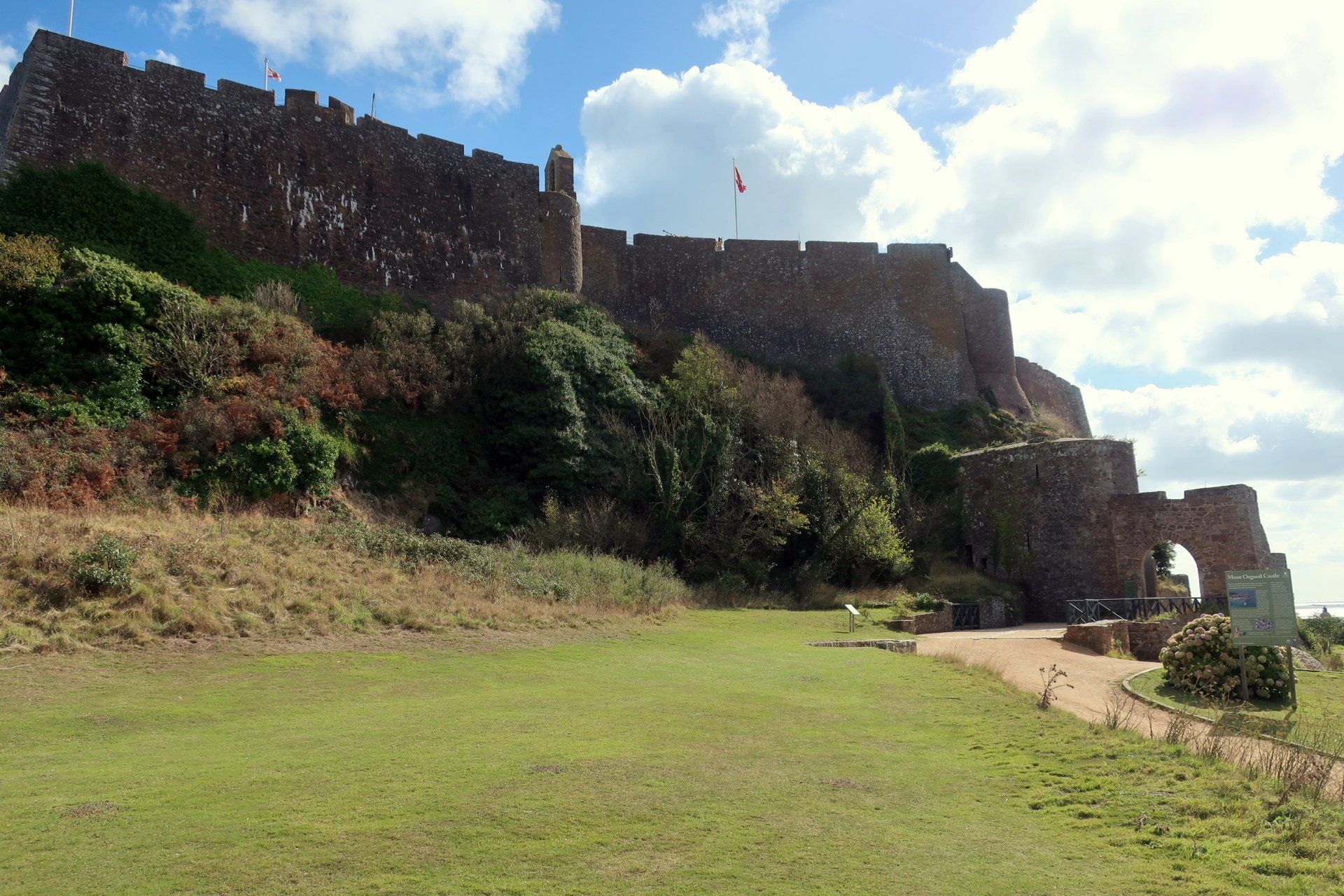 I have a short spell walking on inland path and road until I re-join the coast above Rozel, one of a number of small, picturesque harbours along the East coast. Similar follows, with the trail having a bit of up and down until I reach the next main bay, St Catherine’s with its imposing breakwater. I stop here for an ice cream, the warm sun justifying such a treat (as long as sheltered from the cooling breeze).
