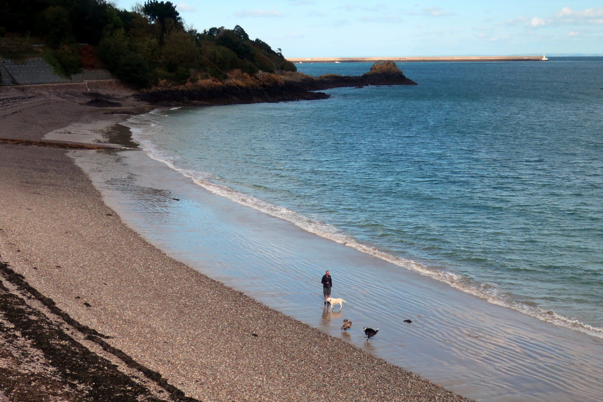 I have walked a fair distance now and am feeling it in the legs, so I stroll along the fine beaches slowly, just taking in the day. I have really enjoyed this, perhaps more than I expected to. There has been real variety –from the wilder North Coast cliffs, to the fine East Coast inlets, bays & quaint harbours, dotted with forts, round to the open sandy beaches of the South Coast, which will eventually lead back to the Town. Add in the superb walking weather and you have a winner.