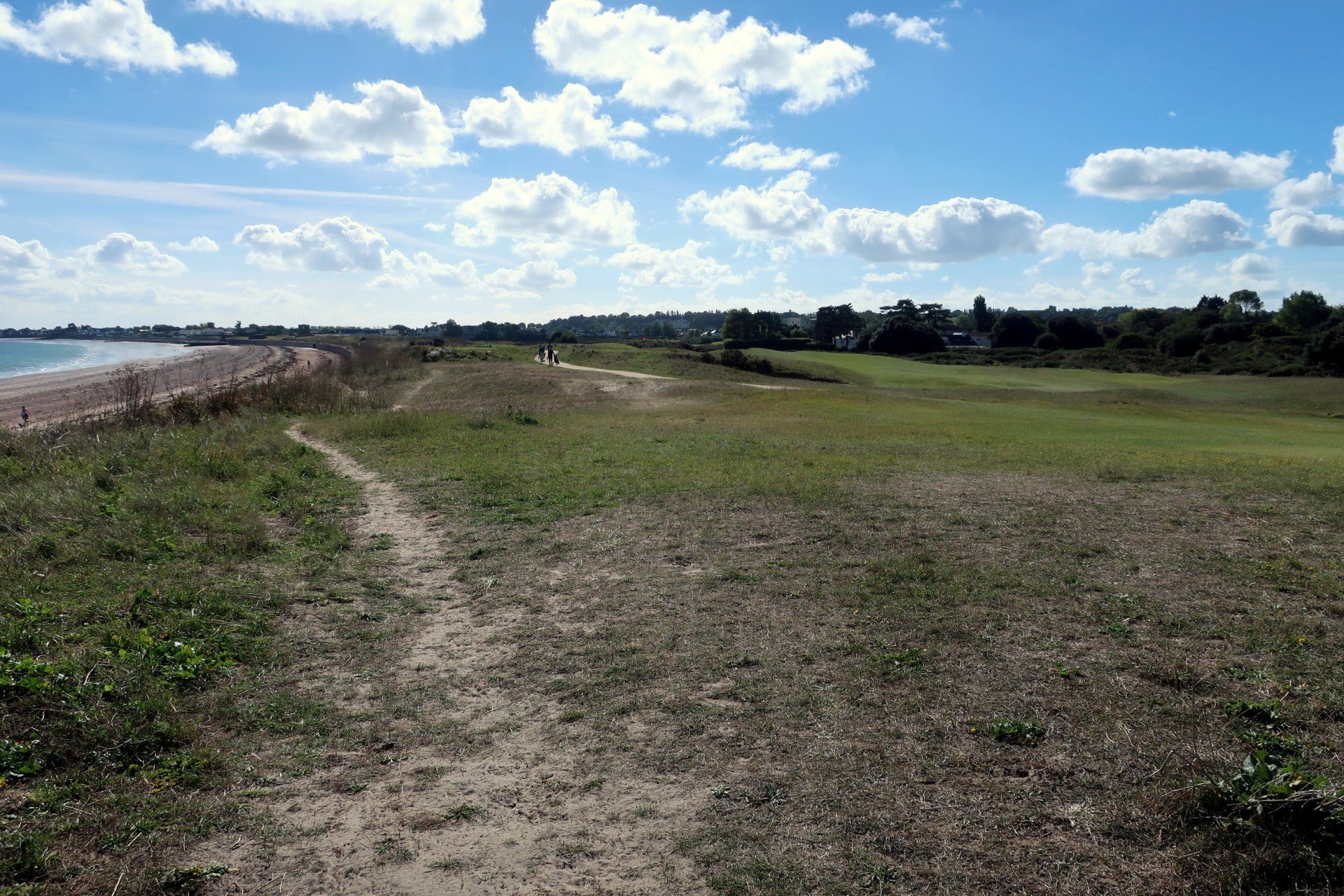 From here the route tends to hug the coastline, but always offering good variety of terrain and interest. Above the touristy Gorey harbour, the stand out Mont Orgueil castle dominates – probably well worth a visit given more time – but today I let that slip into the rear as the golf course ends the East coast trail.