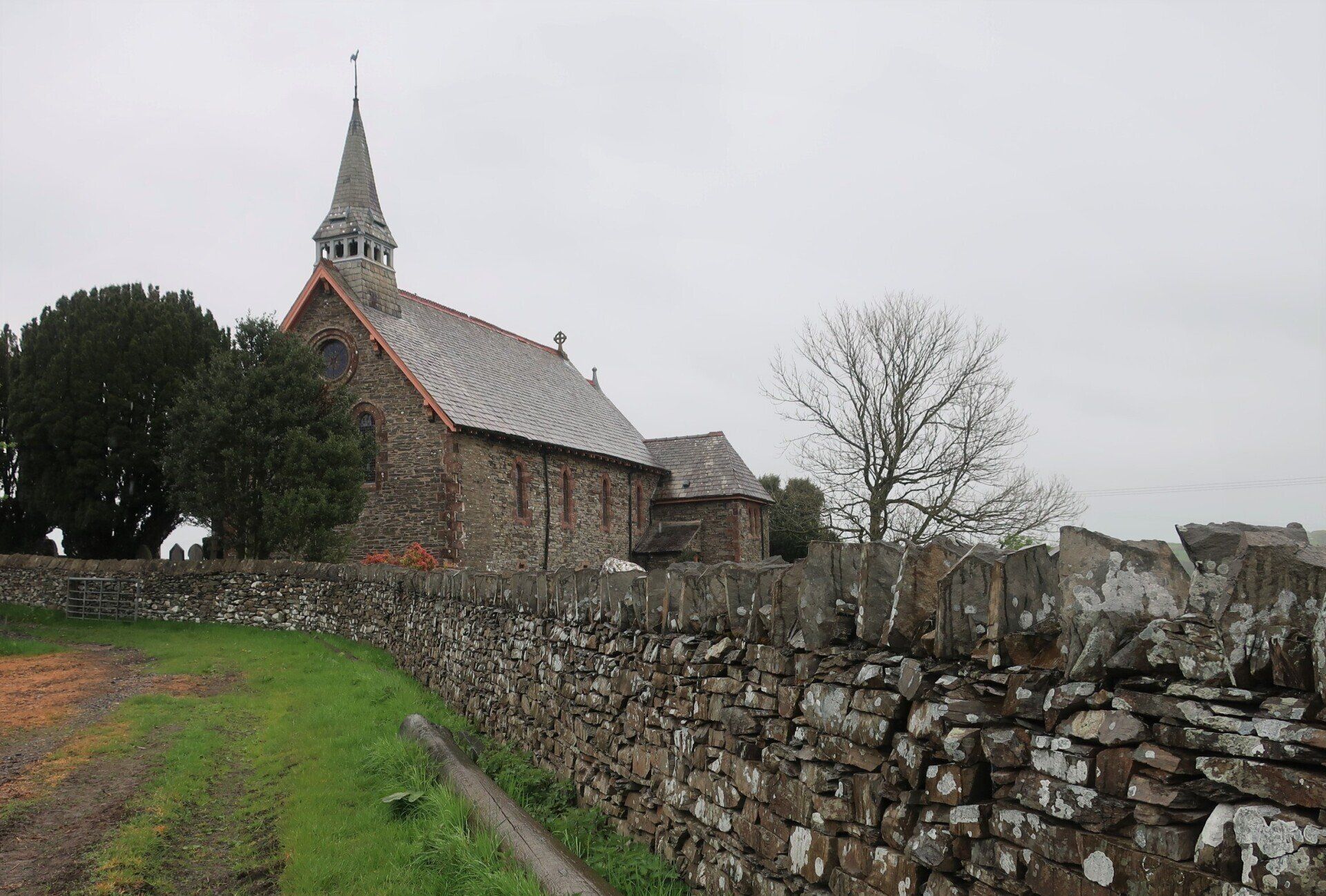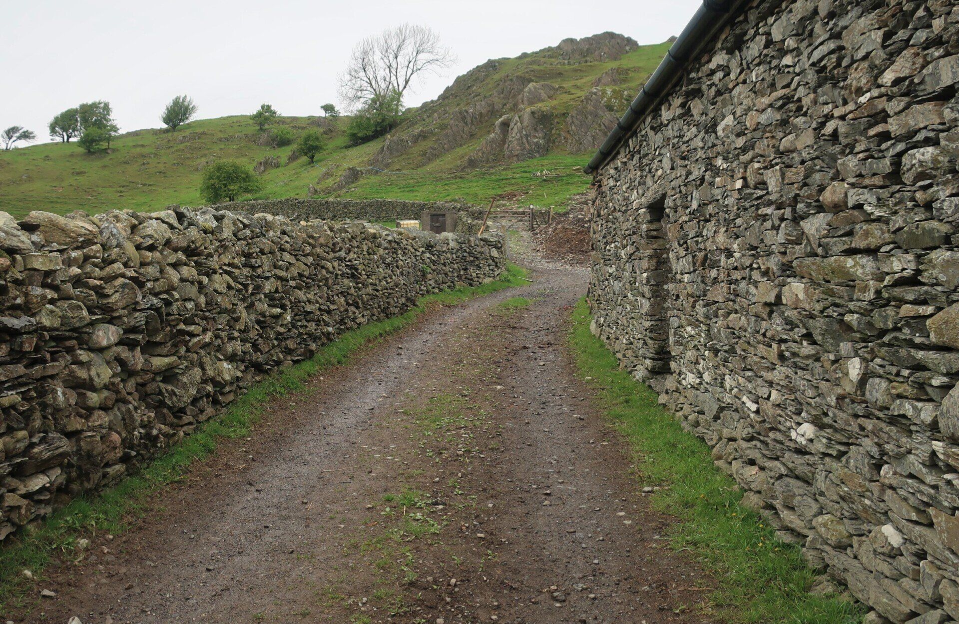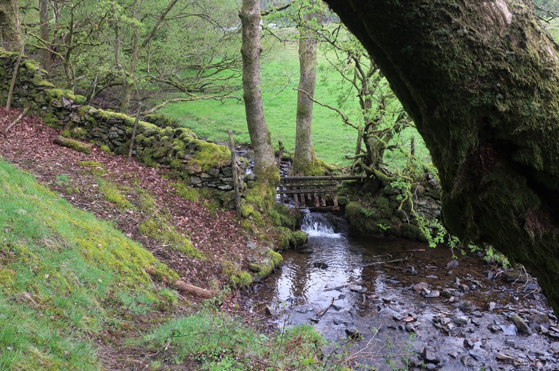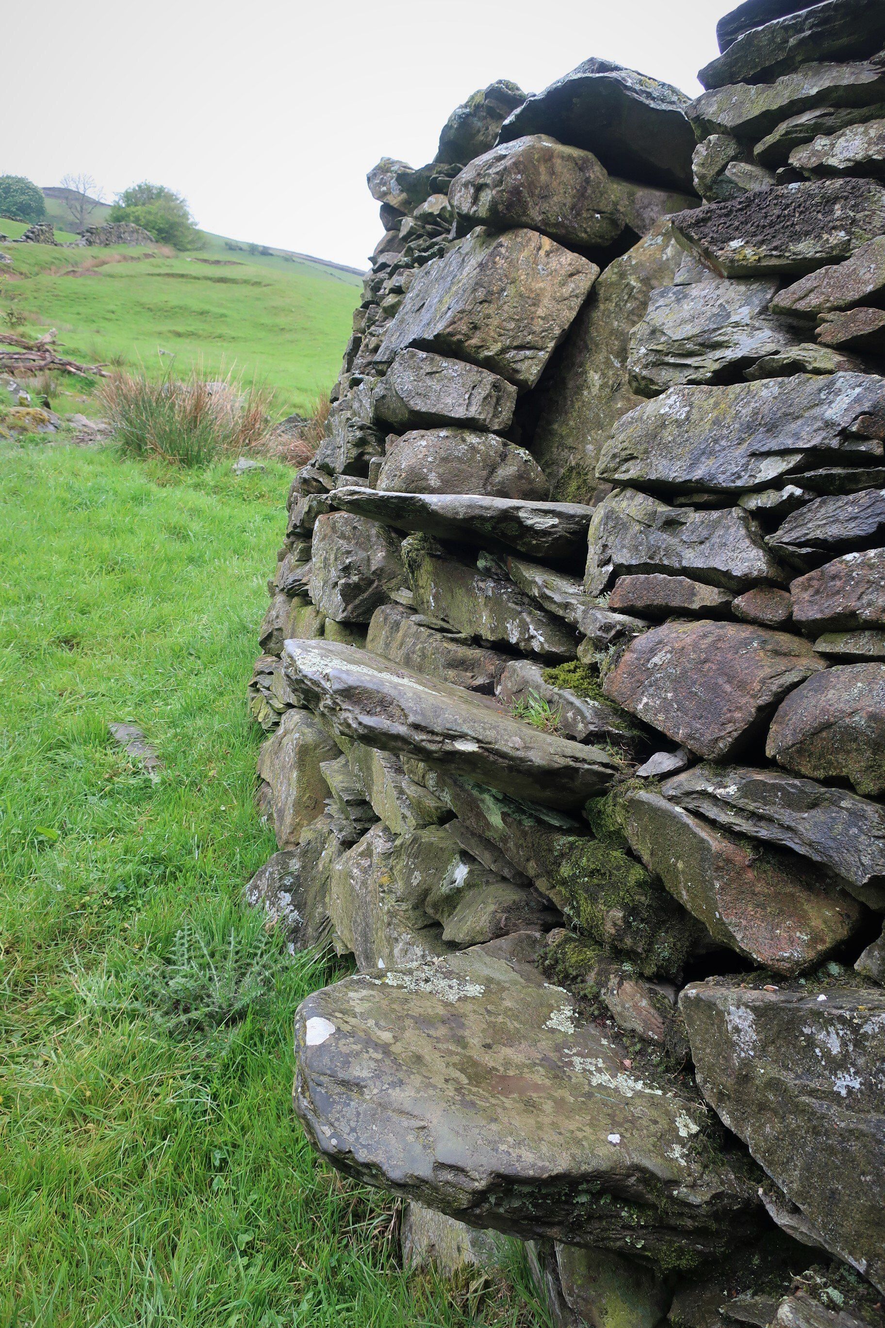 A comfy bed, a good nights sleep and then hogging out on waffles and bacon for breaky set me up for my first day’s walk to Coniston, a 16 mile walk, initially through farm country but then into the Lake District fells. First off I find The Gill, the official start of the Cumbria Way, marked by an interesting sculpture, integrating rocks from the route, compass points and OS map references. Quirky