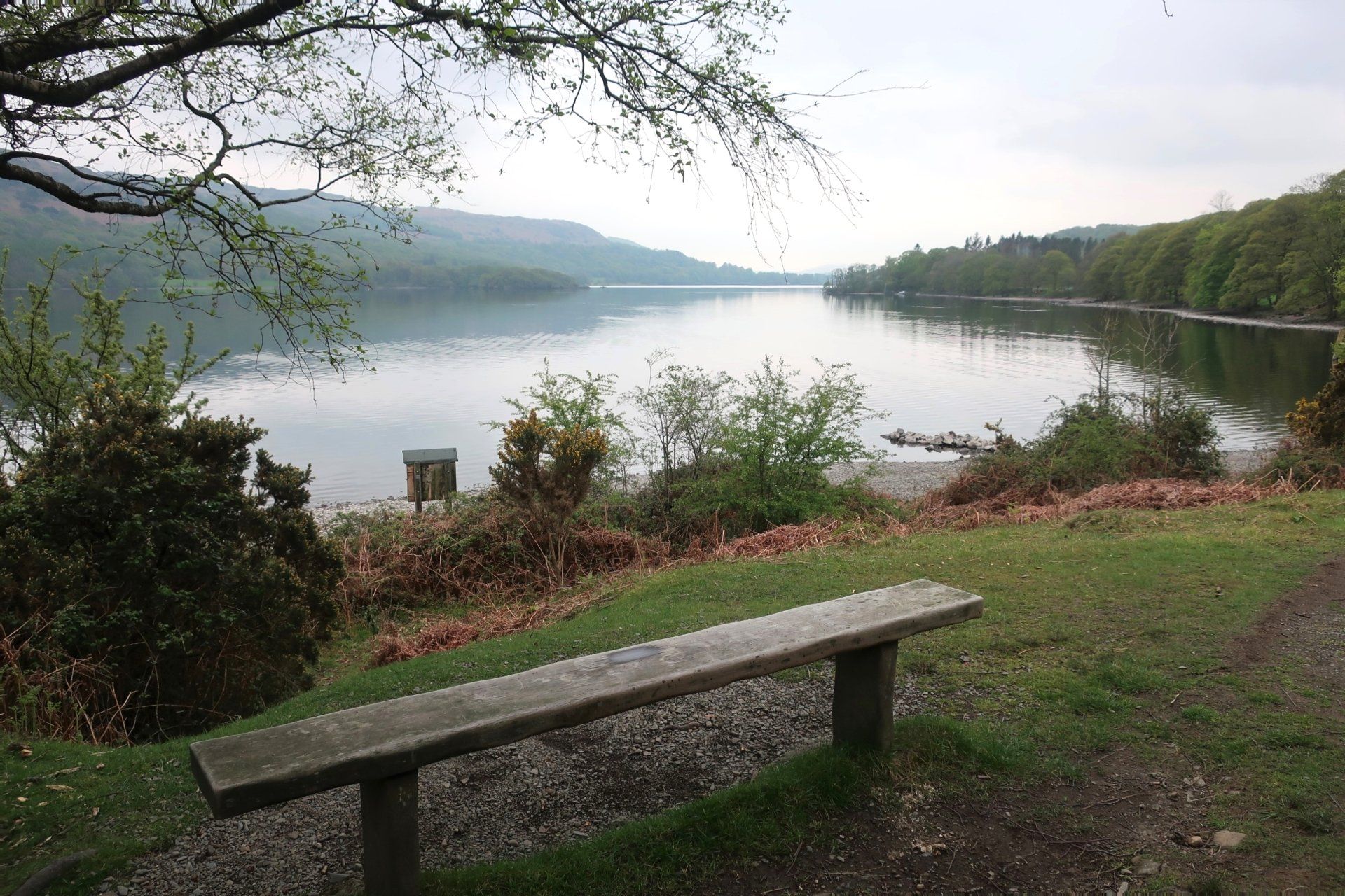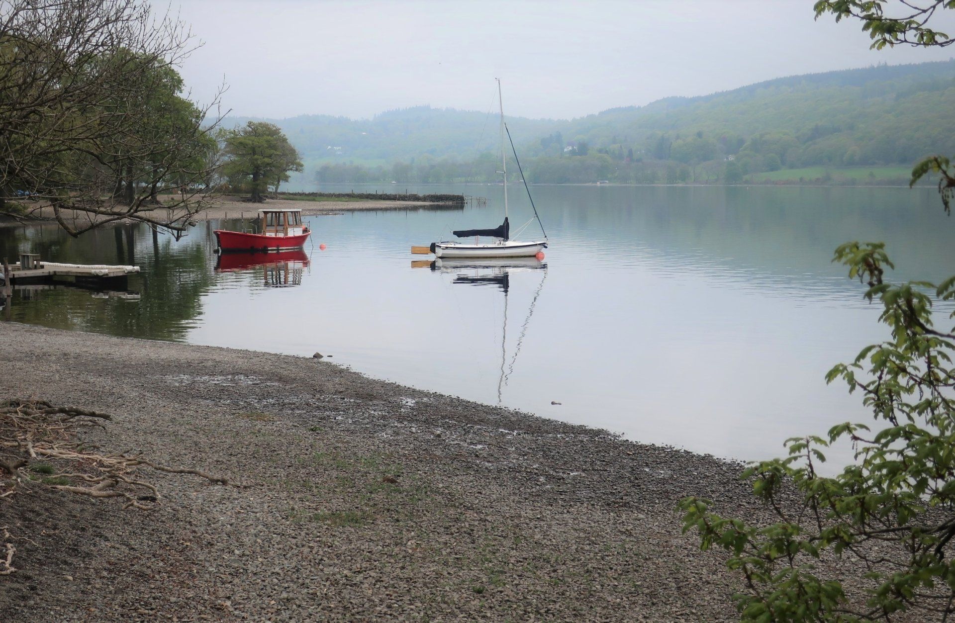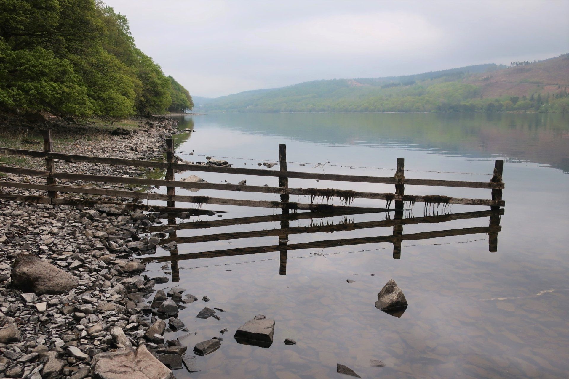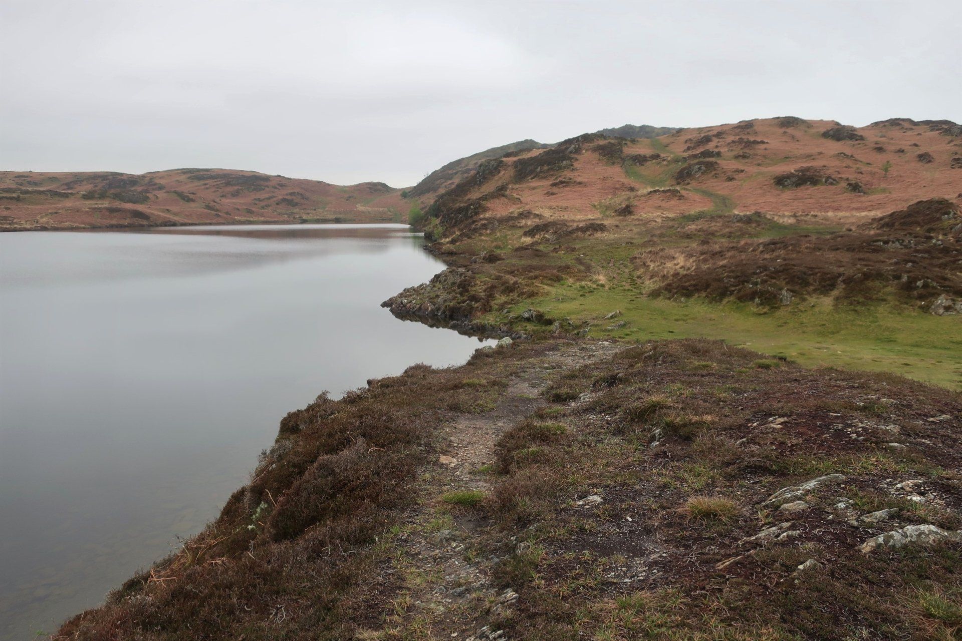 I descend from the fell top and saunter along in clearer conditions, a few miles on reaching the Southern tip of the lake, with the route then following the Western shore line to Coniston village. Mentally, it feels like I am nearly at the end, however, there are still 3 miles to go and this seems to take forever. Mind games!. It is a rough trail at times, but the water offers some lovely views. There is not a breath of wind and the water is mirror calm