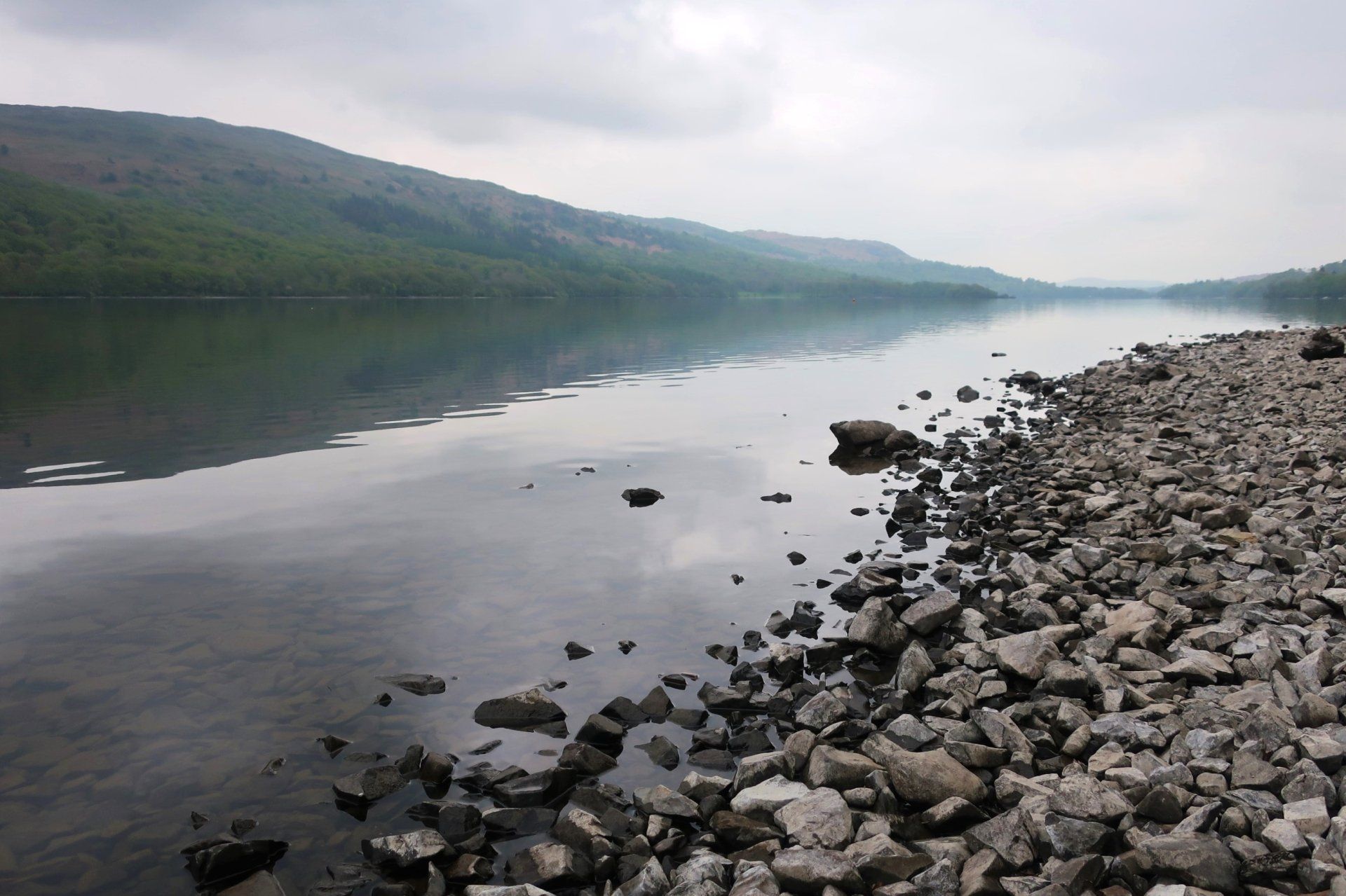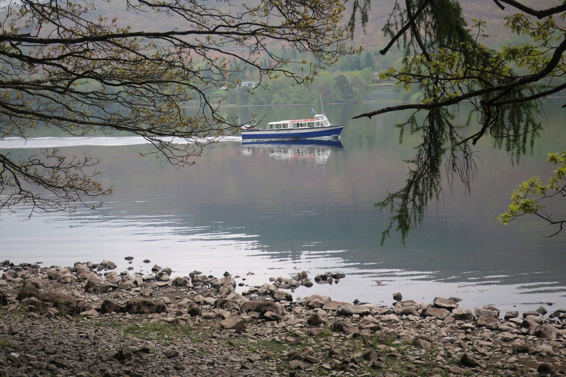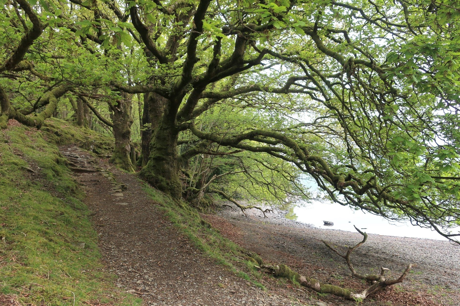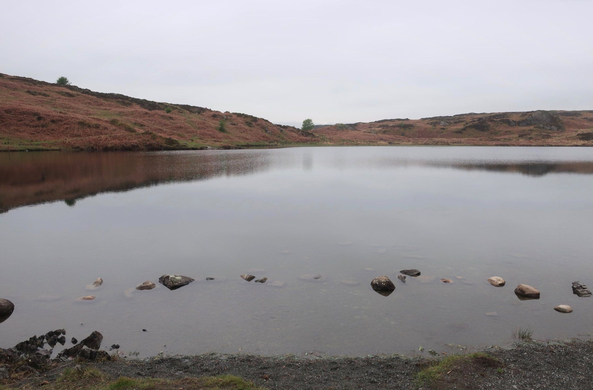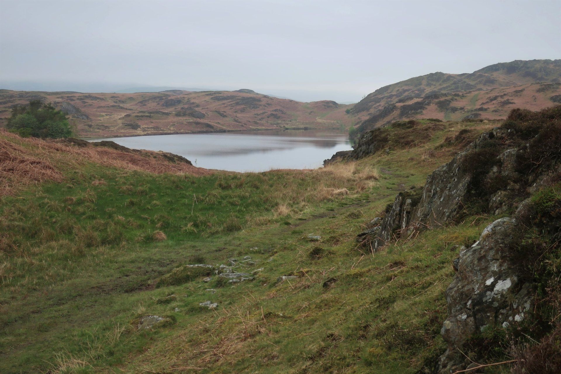 I descend from the fell top and saunter along in clearer conditions, a few miles on reaching the Southern tip of the lake, with the route then following the Western shore line to Coniston village. Mentally, it feels like I am nearly at the end, however, there are still 3 miles to go and this seems to take forever. Mind games!. It is a rough trail at times, but the water offers some lovely views. There is not a breath of wind and the water is mirror calm
