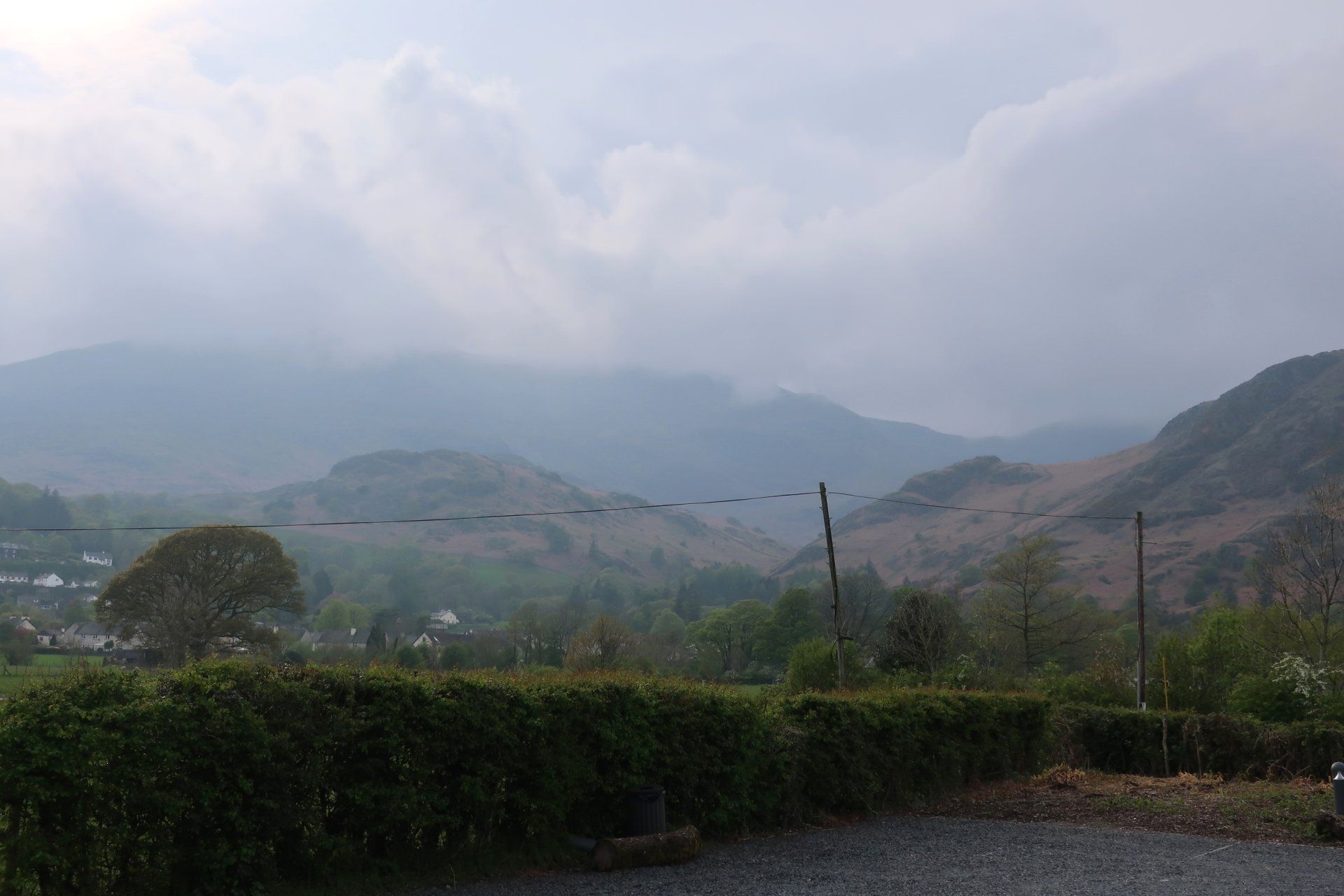 Unfortunately, the weather forecast is mixed: rain and mist in the morning, but clearing from early afternoon. So, delay and hope is the plan!. Shame I reached the Ruskin Museum on time yesterday, that would have been a good morning activity for today. Instead I have a late ‘Full English’ breakfast at my digs, the very comfortable Bluebird Lodge, which looks out over Coniston village and the mountain – although this completely shrouded in mist at this time – then laze in my room and read for a while