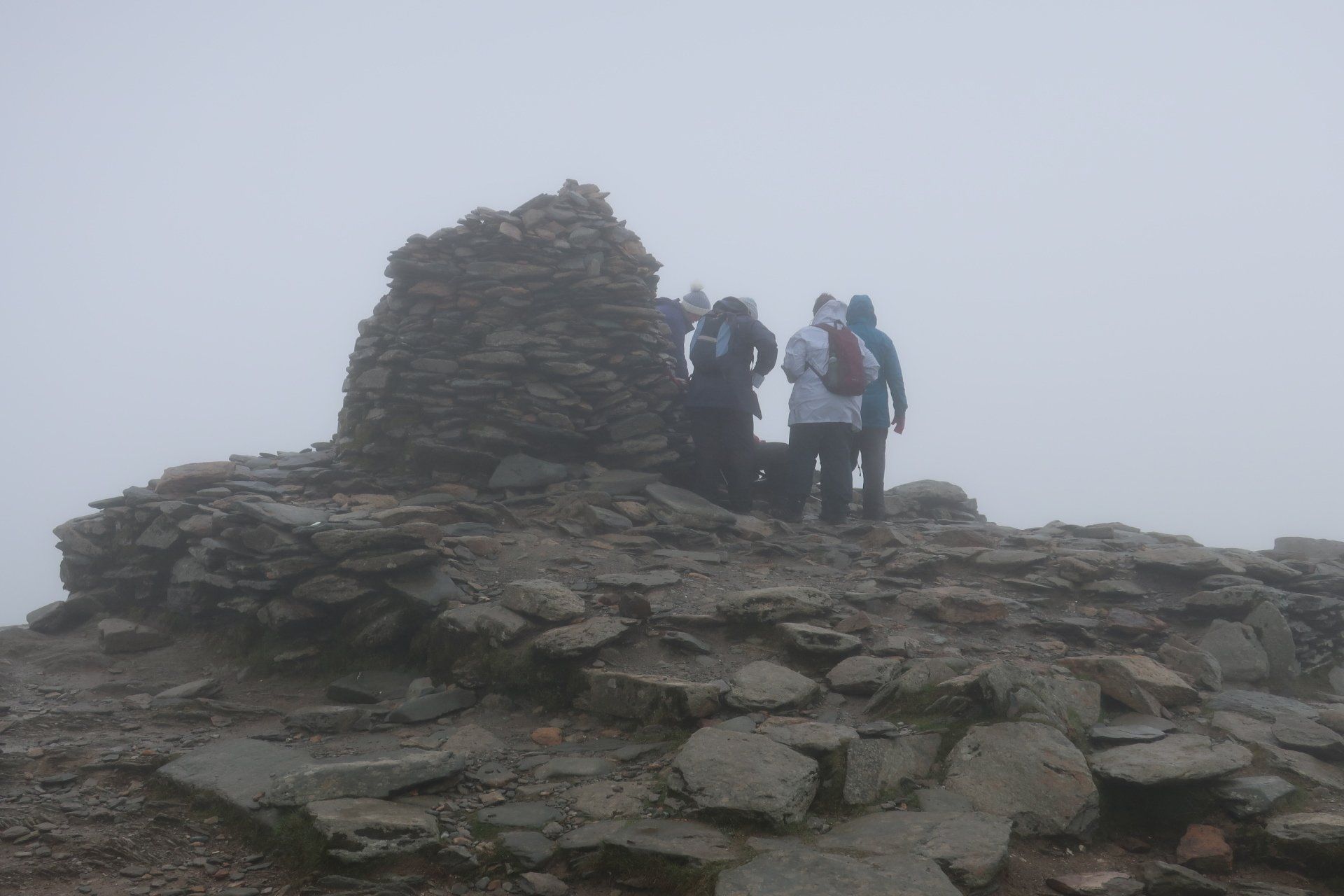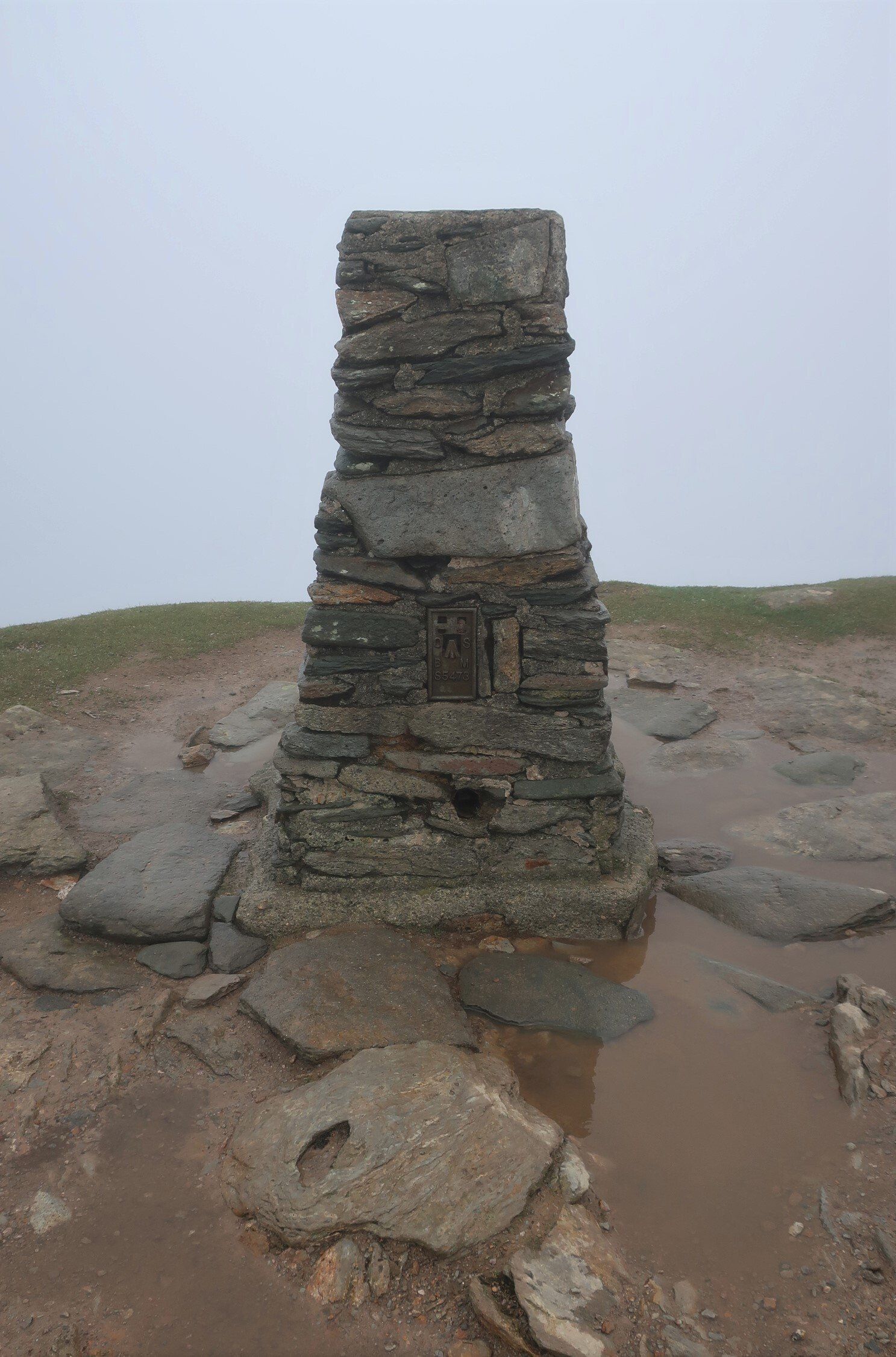 As I rise it is no surprise that sunshine disappears and the low cloud base takes over, but I also find the wind really whips through, something that was non-existent down in the village. I am passing a few people on their way down, all looking very soggy!. I reach Low Water but can’t see much through the murk, so press on up the final, steeper section. Slowly & surely and before too long I reach the summit. At 803 metres (2,632ft), this is the highest mountain I have climbed in England, also my first Wainwright. Record breaker, yay!