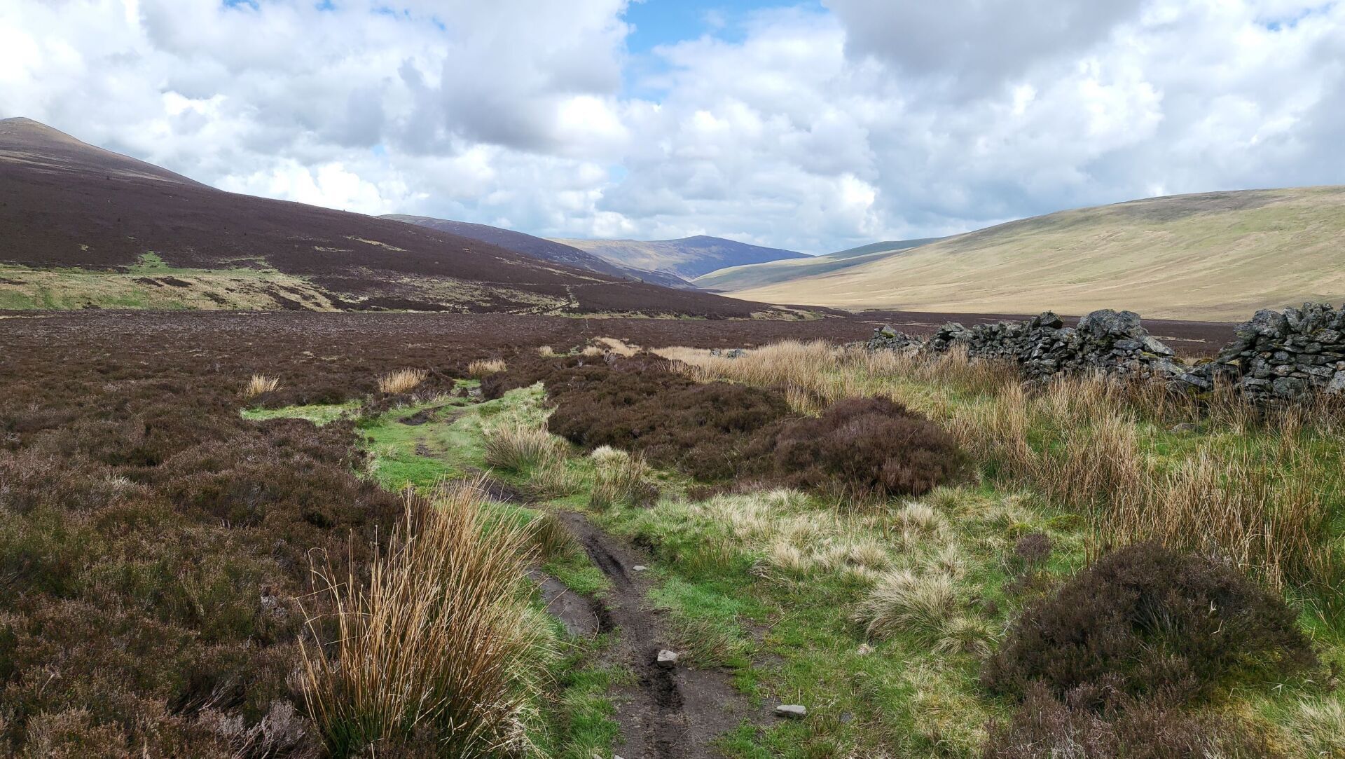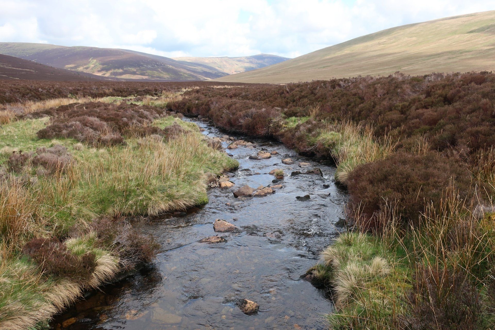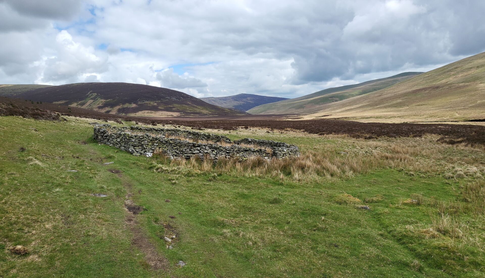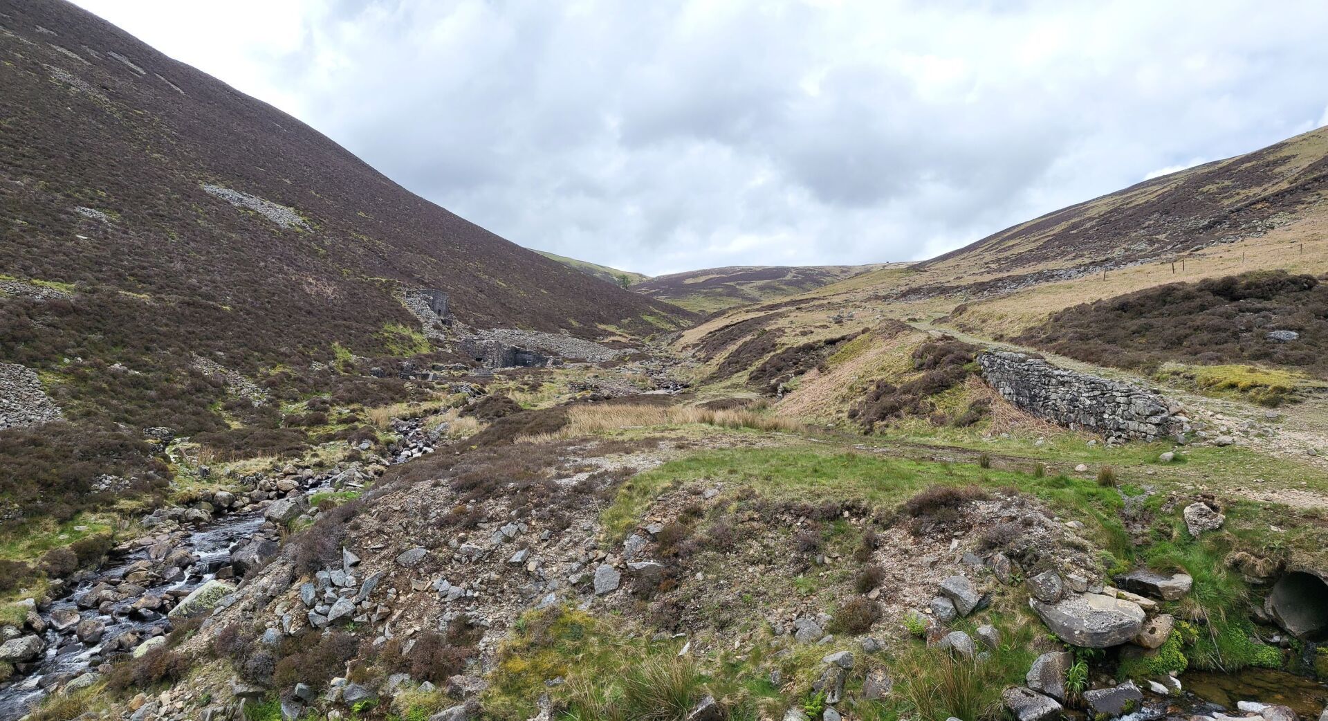 A change in direction and I track the beginnings of the Caldew, a waterway I will be following tomorrow when it has developed into a proper river, this eventually leading me to an offshoot valley, from which I must escape by climbing up and out. This is up to Great Lingy Hill and from my starting point I can see a speck which is the Lingy Hut, my target. The route up (that I take, not all the official route) generally follows the beck, hanging on to the side of the slope, rocky and boggy in places. It is quite intricate so requires full attention, so much so that you sort of forget that you are climbing (well nearly!)