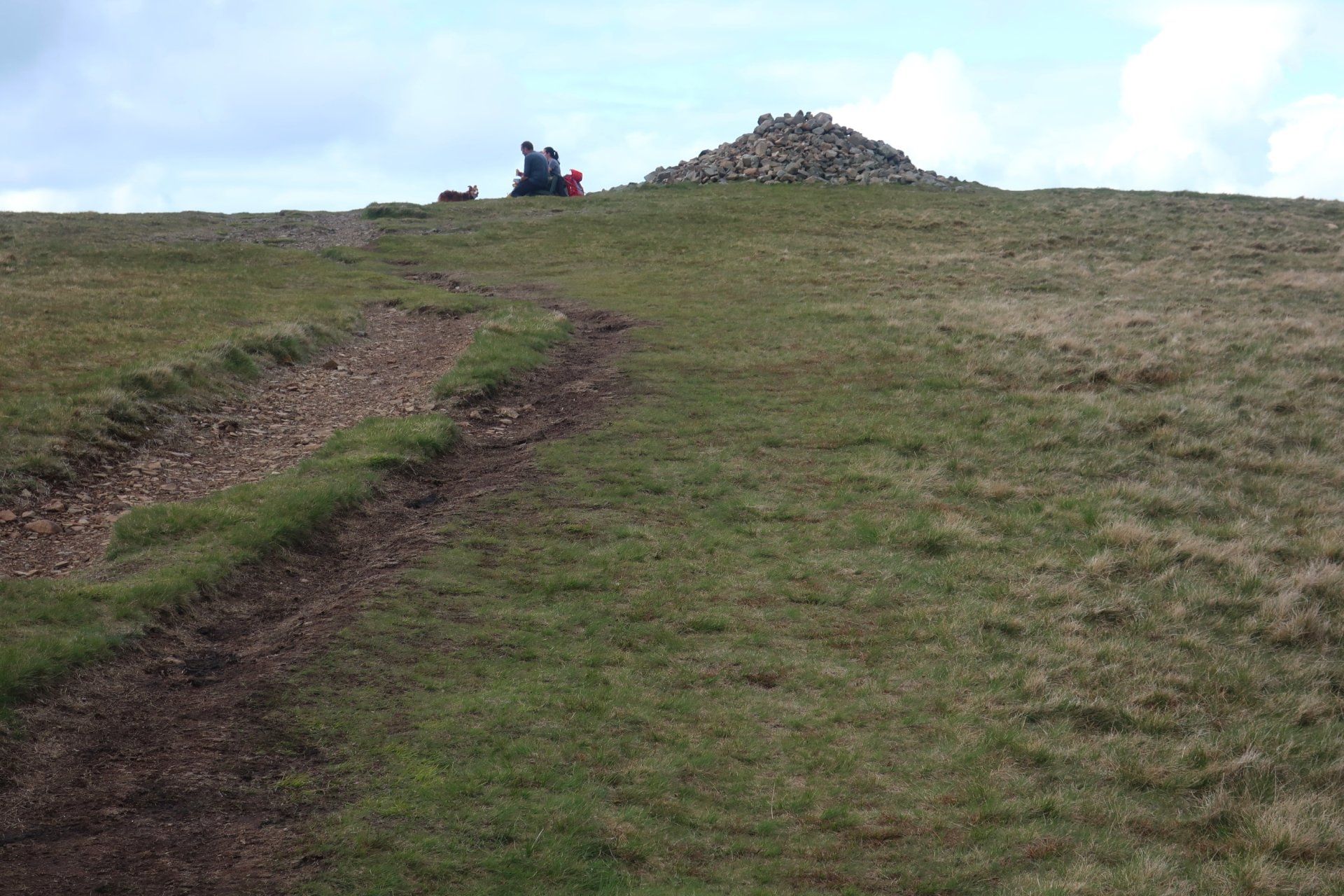 About 7 miles in I come across a building stuck in remote isolation, a real oddity. This is Skiddaw House, a building with an interesting history, supposedly a youth hostel now. I take the opportunity to perch on a convenient rock for a lunch stop and enjoy the scenery. There are a few others about, including some runners and some mountain bikers (electric seems in)