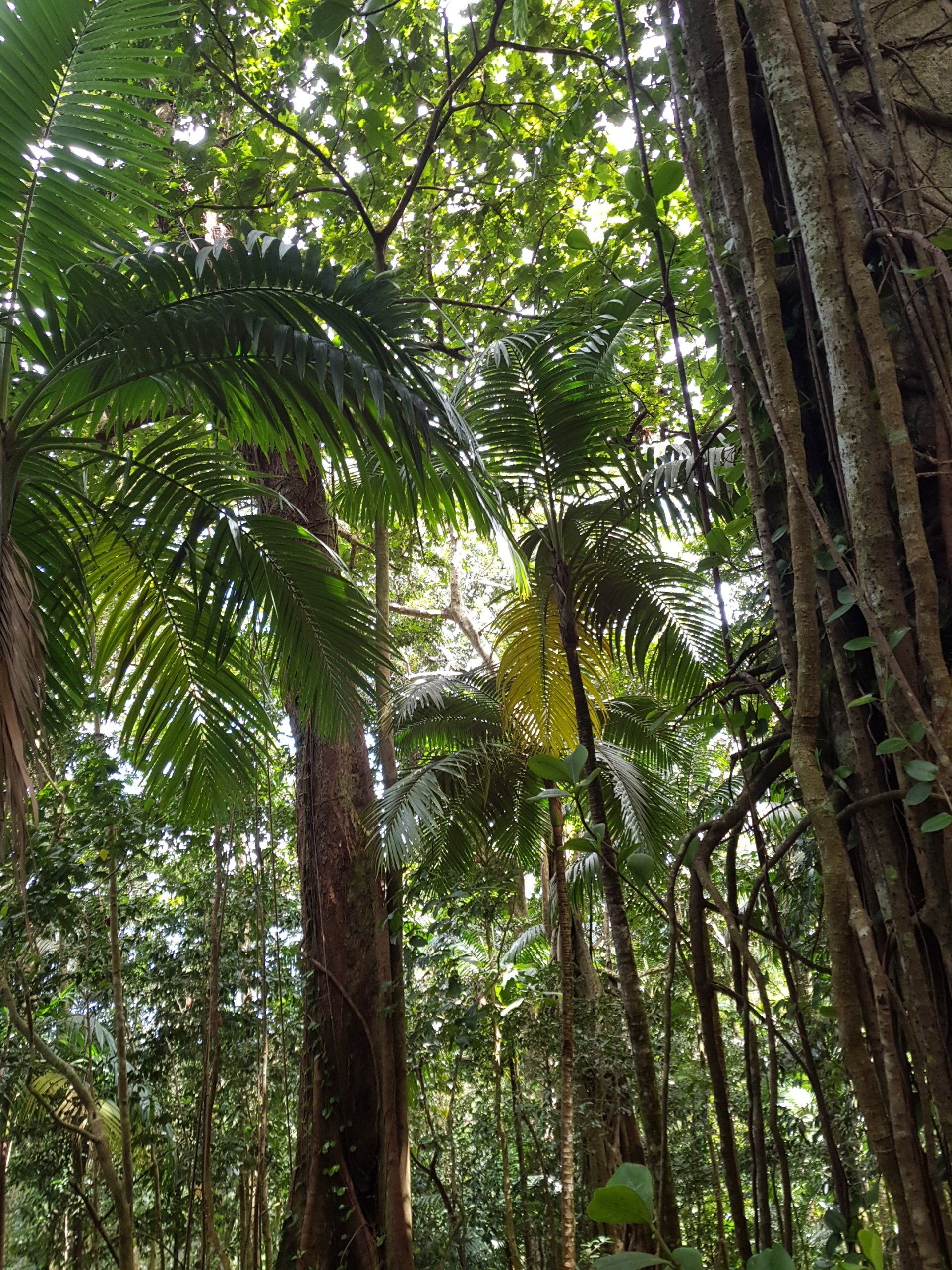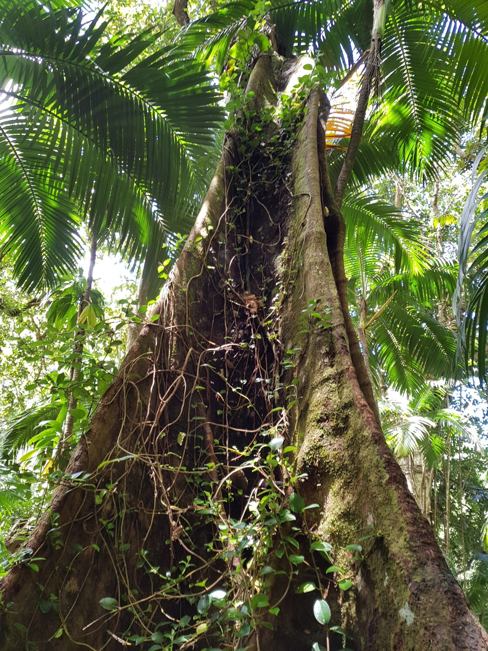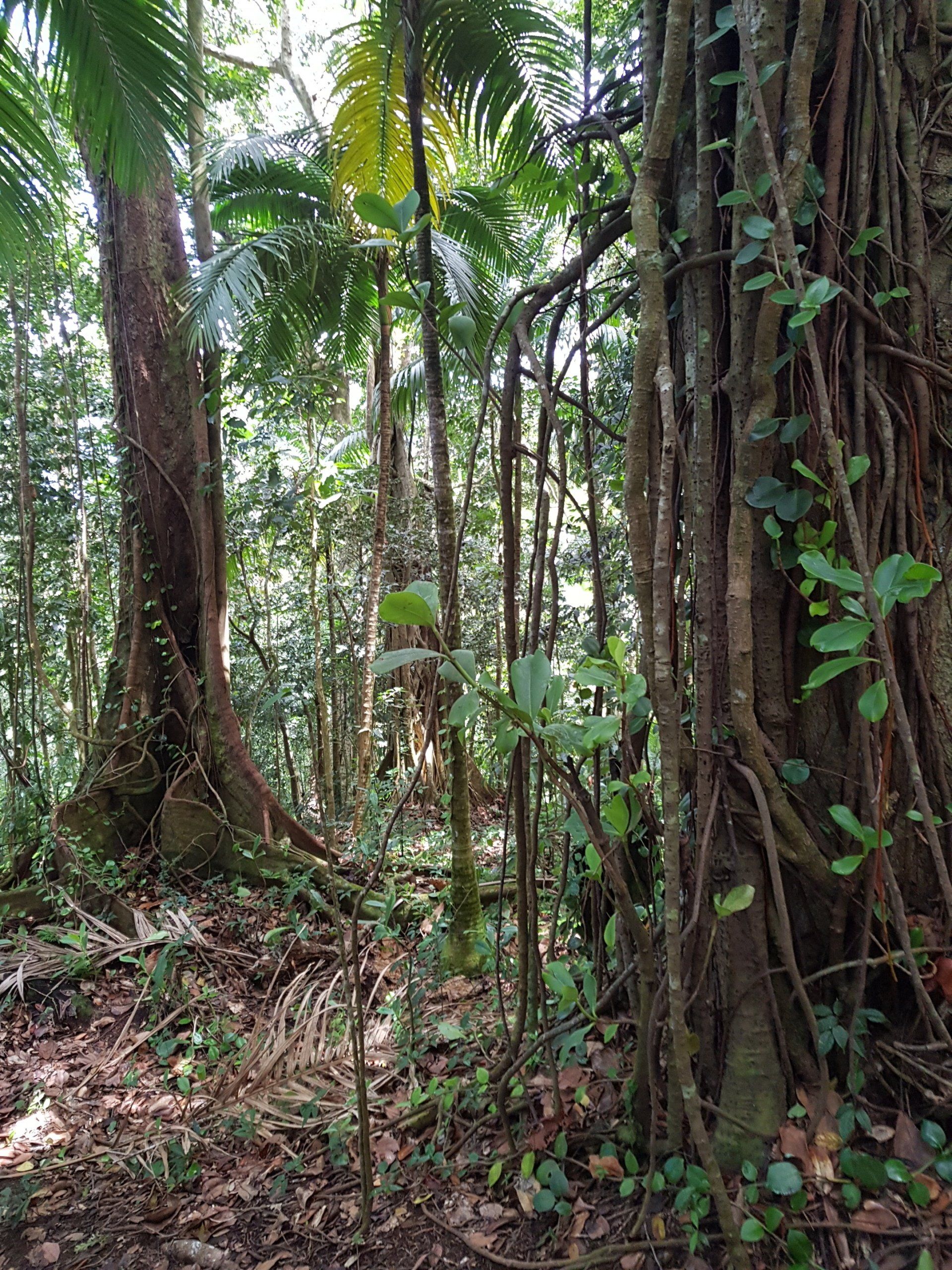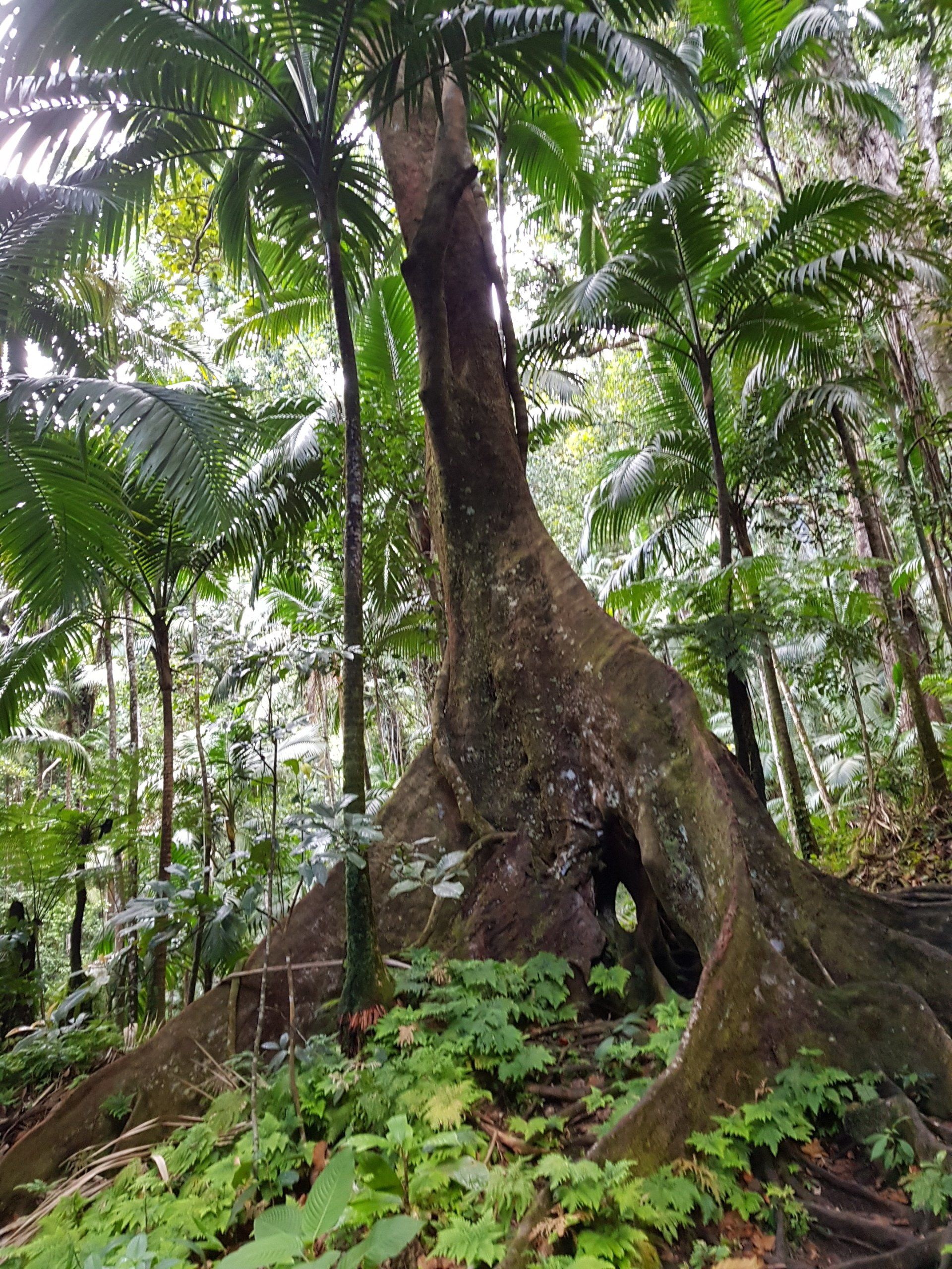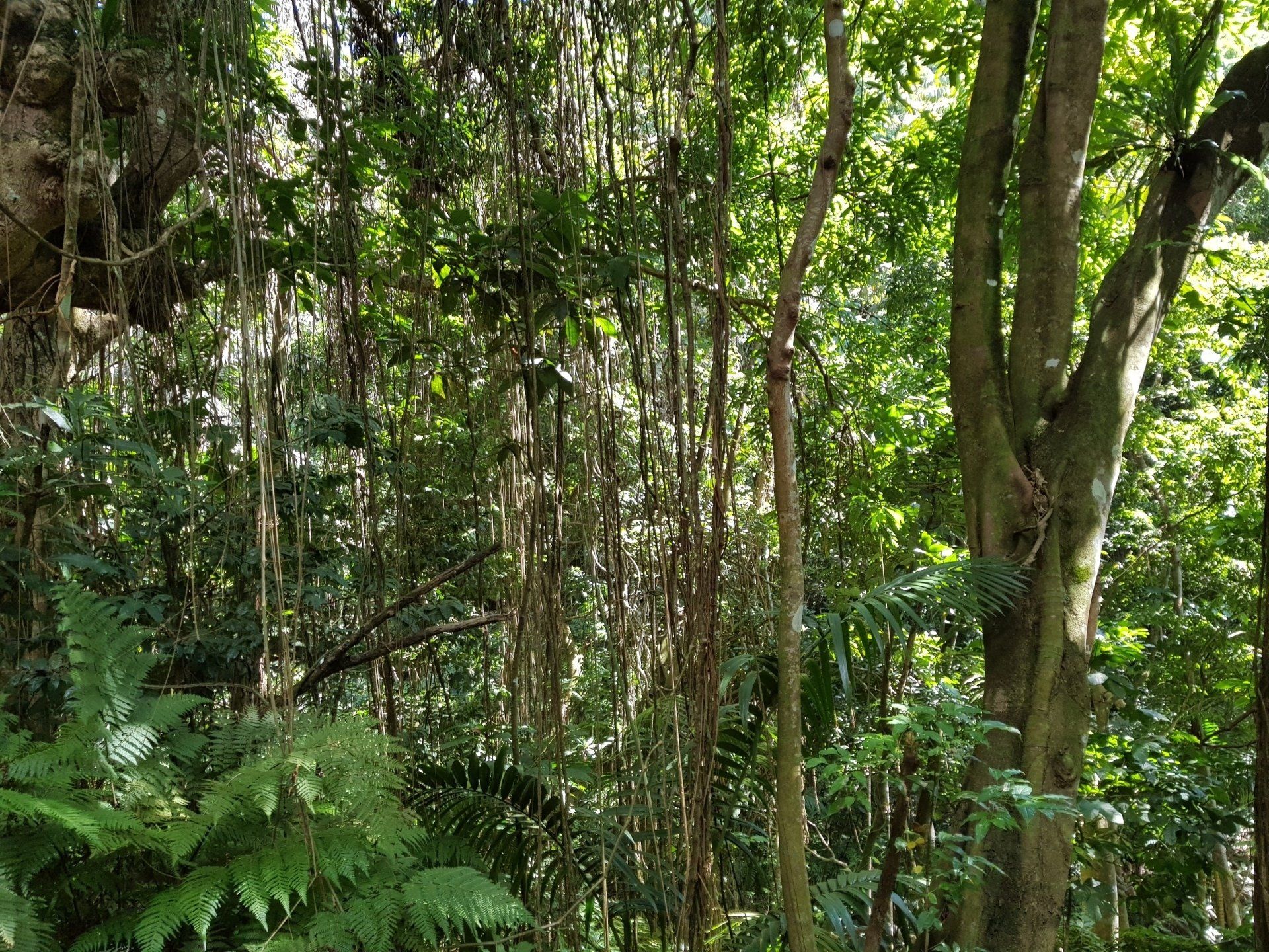 The route weaves though the trees, vines and foliage, along rough authentic trail, mixed with lots of tree roots and some boulders, rising to about 3,000 ft. This is to the rim of the crater of this dormant volcano, not the summit, which is across the crater at 3,792 ft