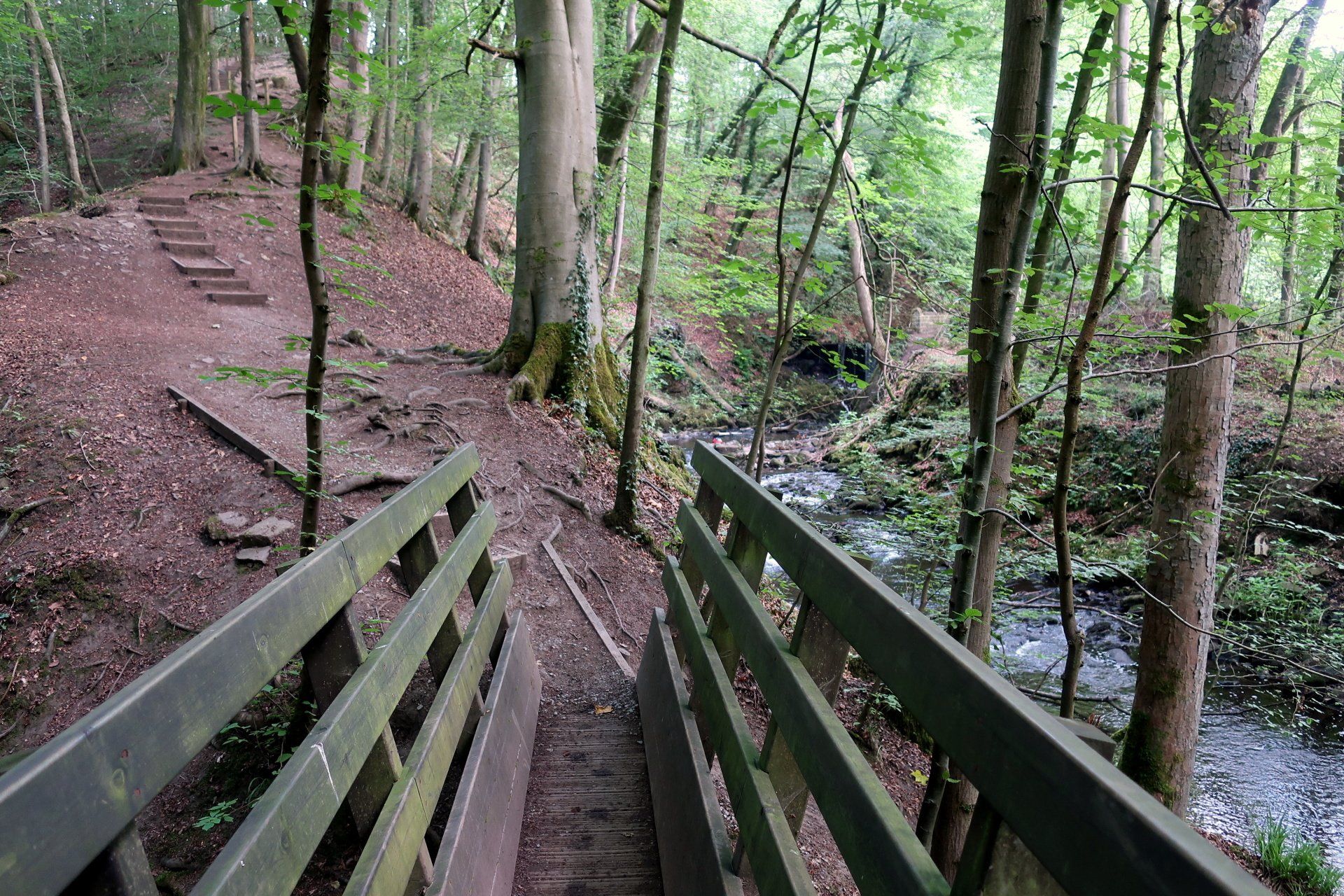 After checking out I walk through the Skipton High Street, admiring the distinctive stone buildings – although can’t help noticing there are a lot of pubs, obviously folks like a drink or two around here. Along the canal path and past the snoozing barges, then a diversion into Skipton woods, an optional detour from the main trail but well worth the time.