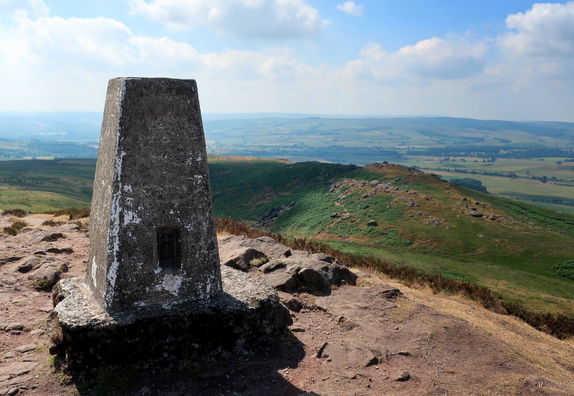 The location is marvelous, just walking through and over these wonderful rolling hills. There are a few people about and I catch up with 2 groups at the summit of Weets Top where we all enjoy the view from the trig point. From here I can see all the way back to Sharp Haw in the distance and trace my route for the day – it looks a long way.