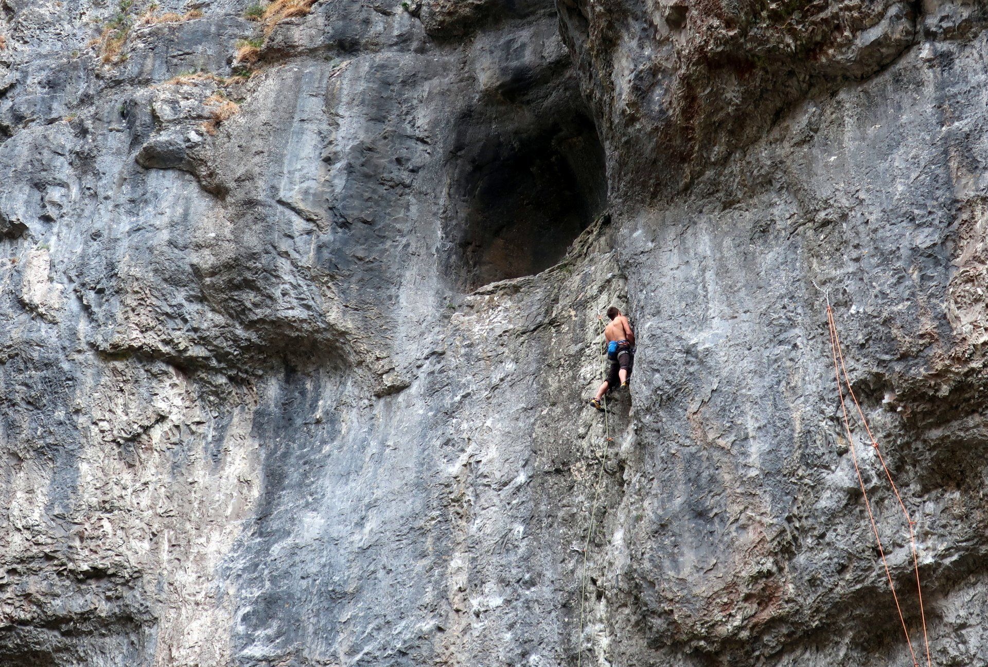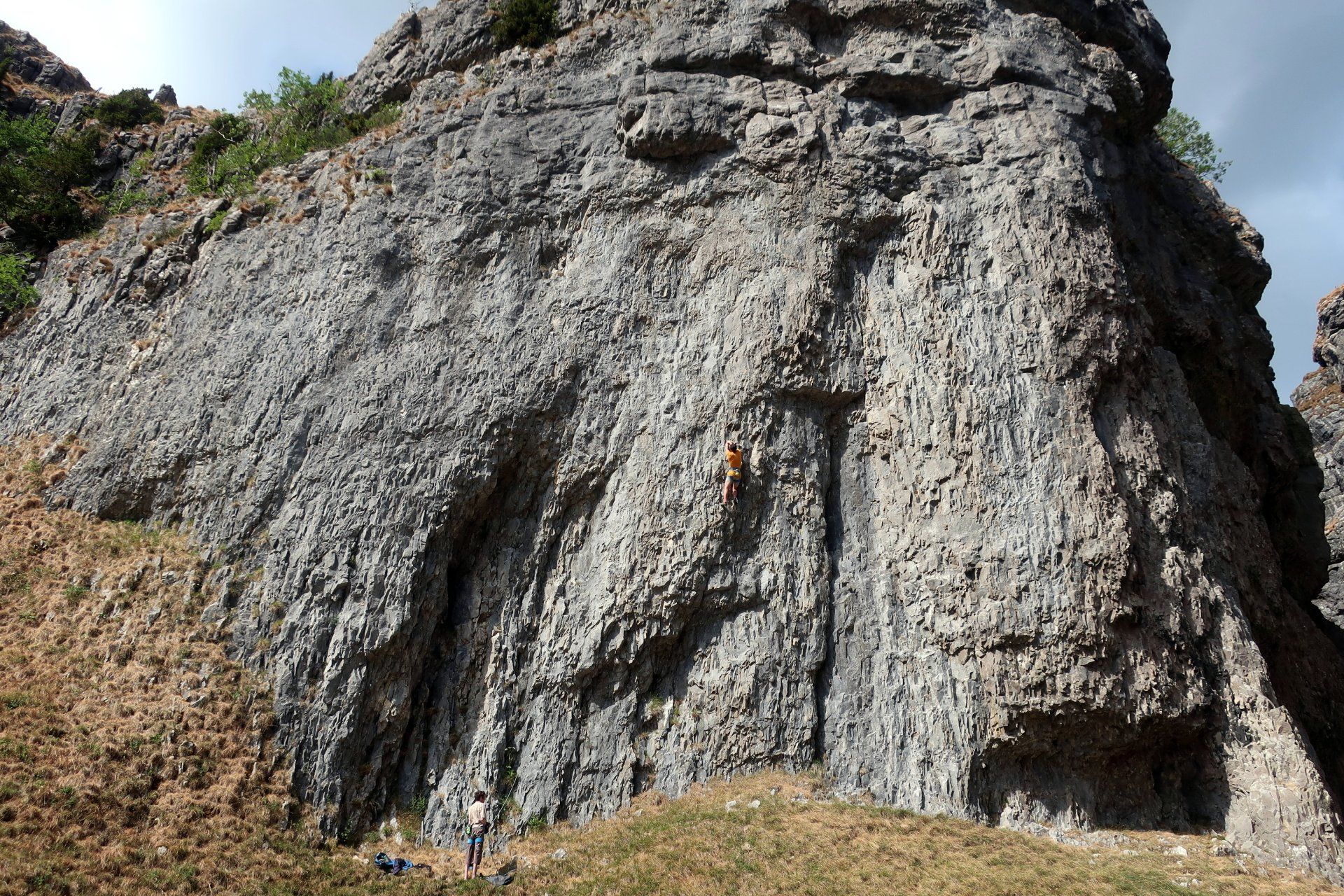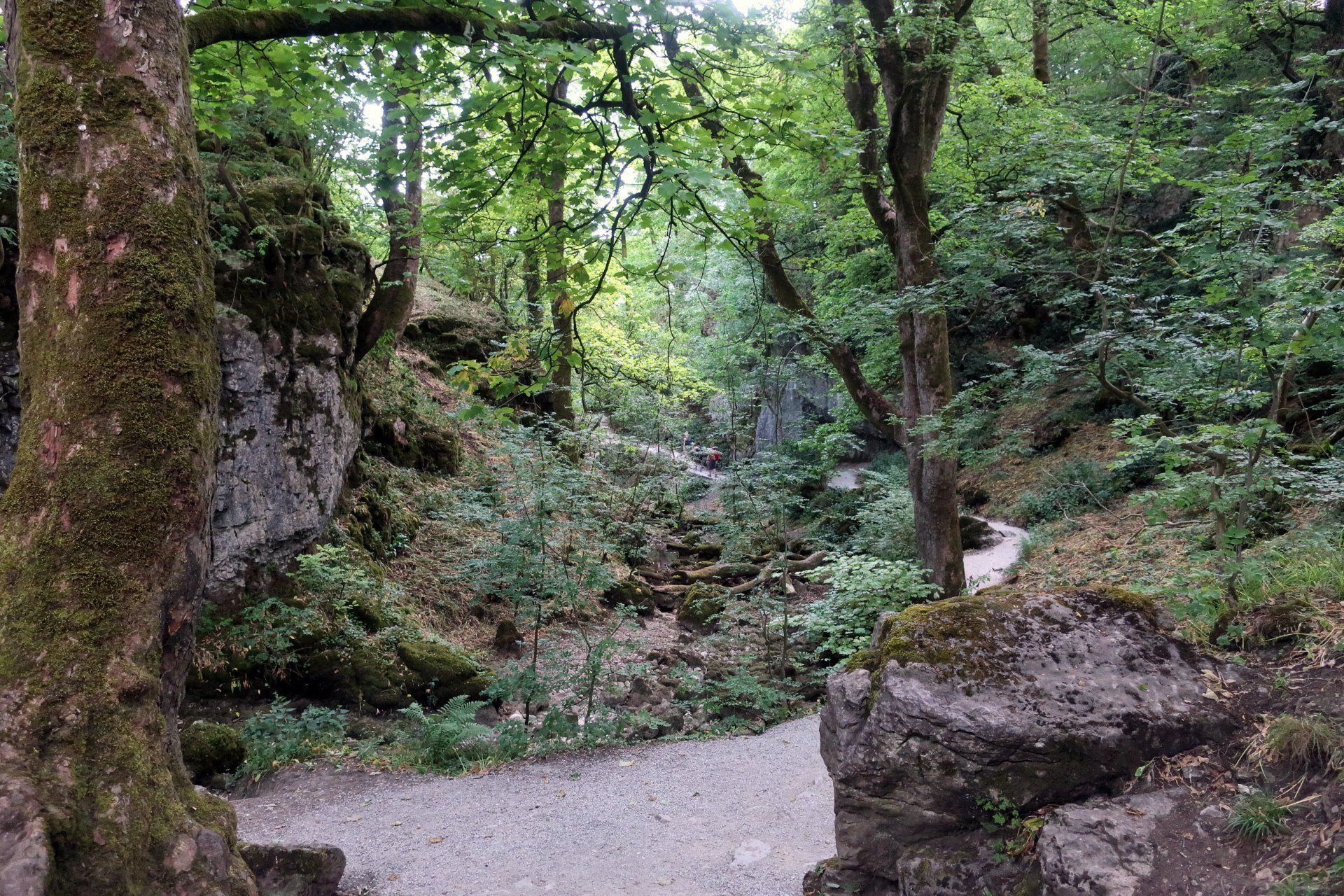 This marks a significant change in the landscape as limestone suddenly becomes much more prevalent. The approach to the scar is impressive, then the path rounds the final corner into a cul-de-sac featuring the cliffs, crags and boulders seen on the picture postcards. It is Sunday afternoon and very busy with walkers, families and a few rock climbers. I watch the climbers for a bit – how do they do that.