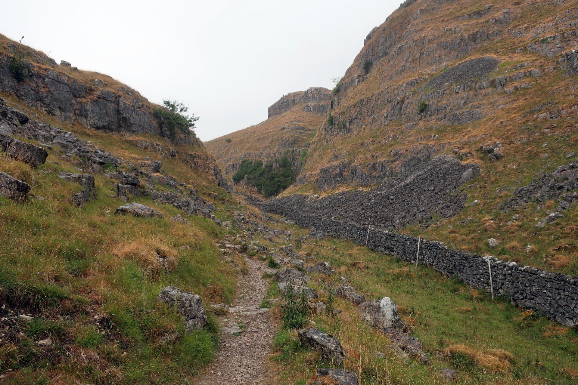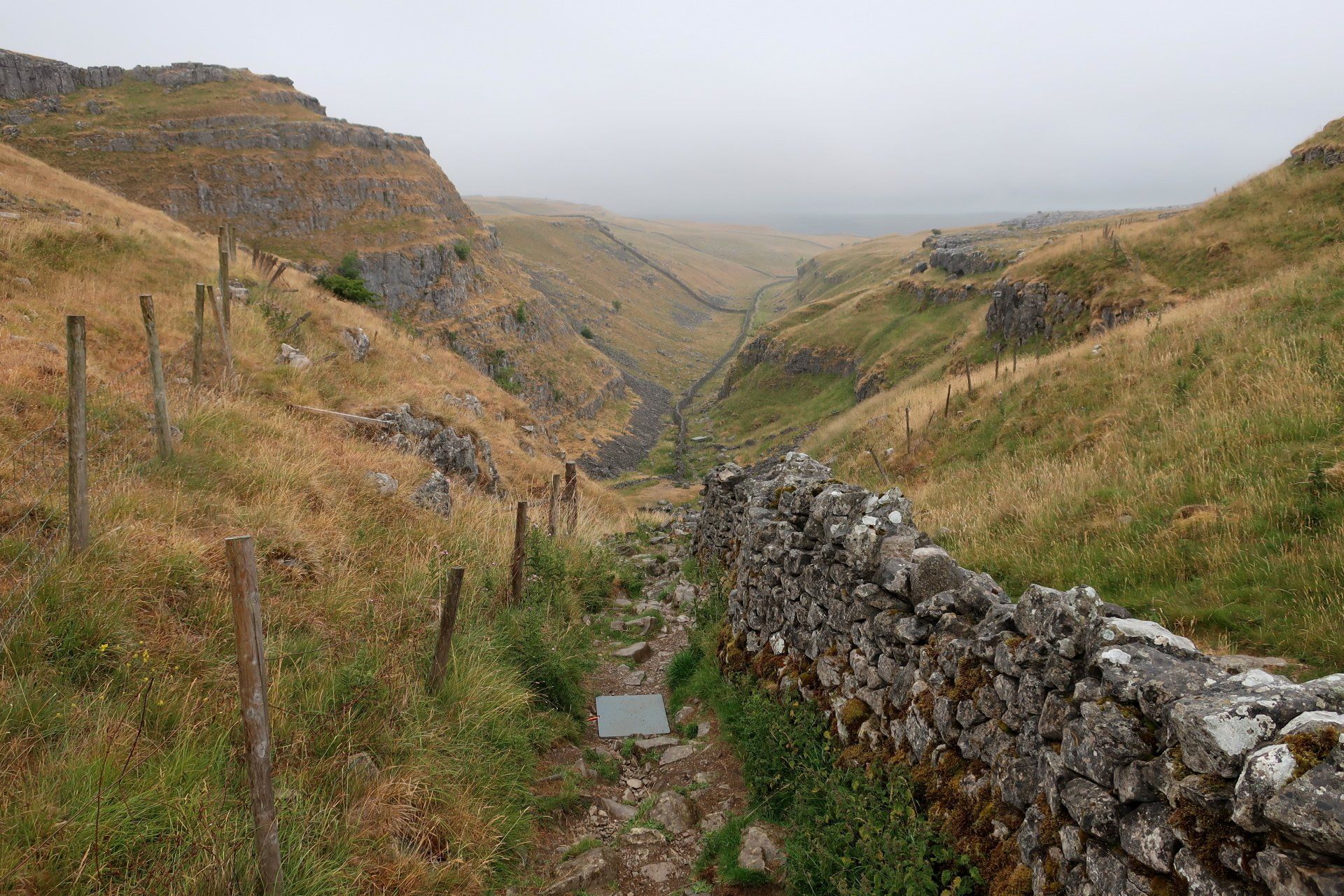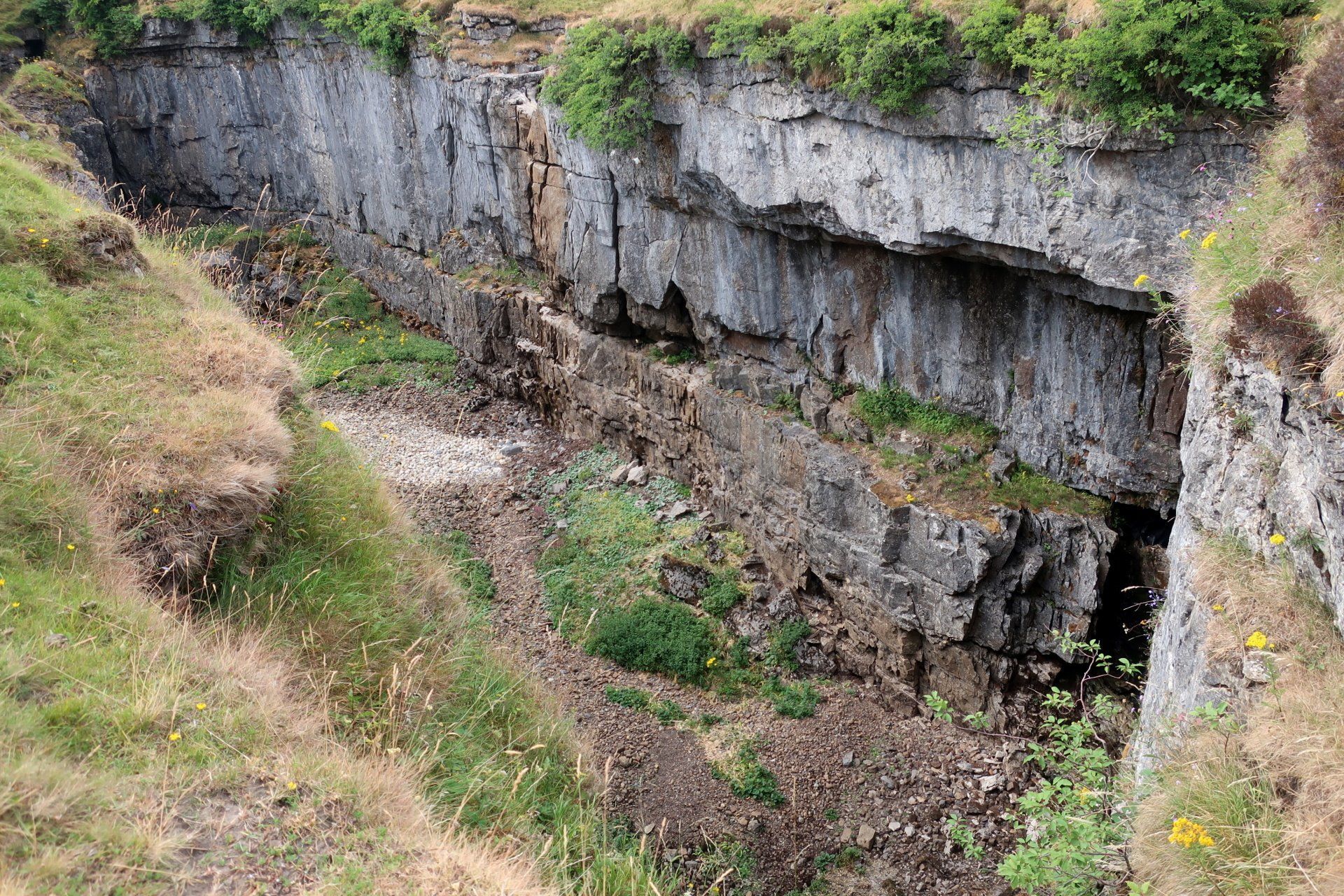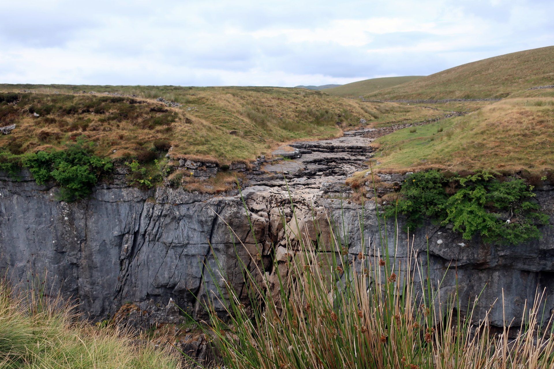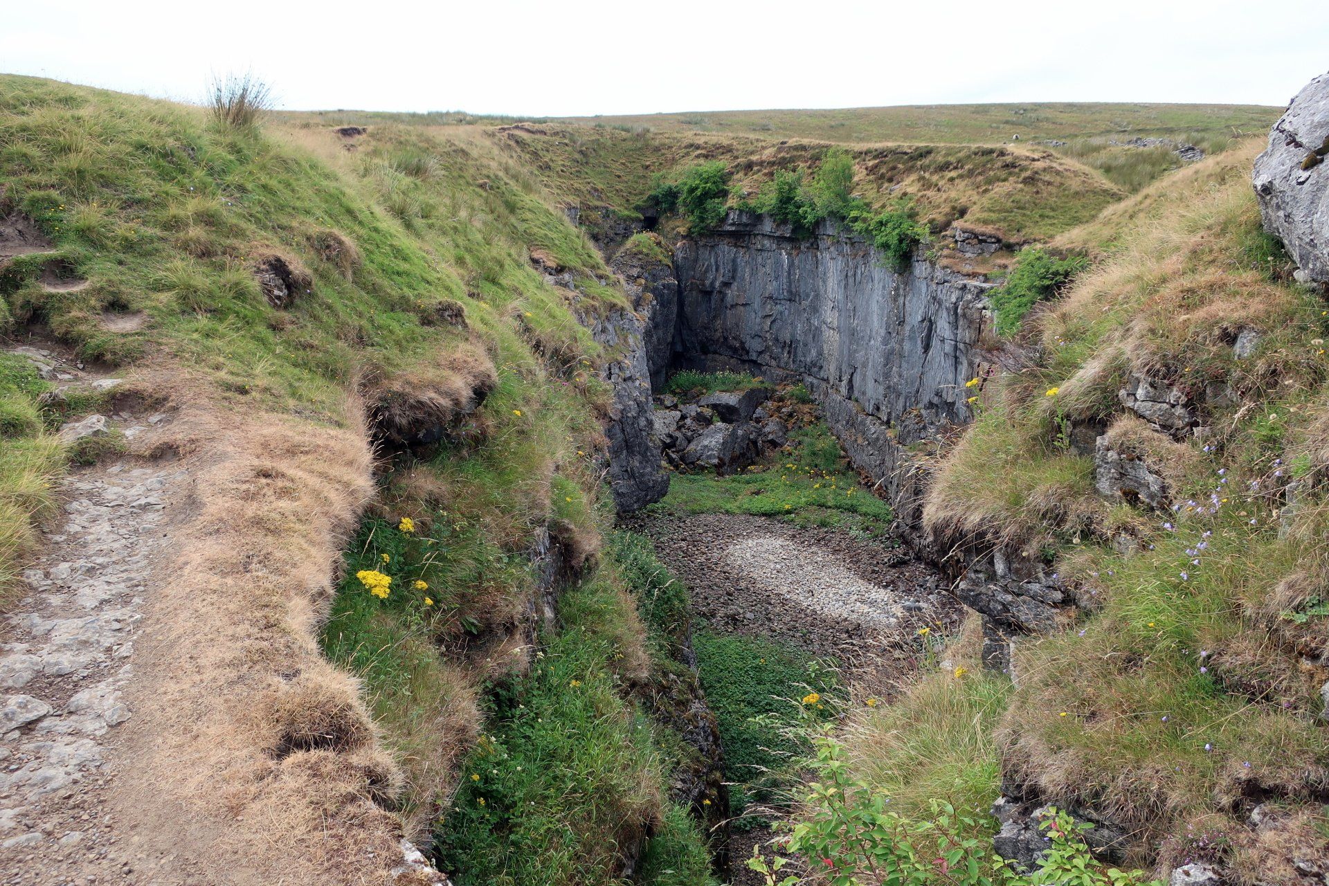 I could just continue along the path but summon a bit more energy and visit Hull Pot. I have seen this on TV, a huge pot-hole in the limestone with a magnificent, gushing waterfall. Unfortunately, not even a trickle today, another example of the dry months, so I miss out on seeing Hull Pot in all its glory. Ah well, you can’t have it all and I will take the dry ground walking conditions any day.