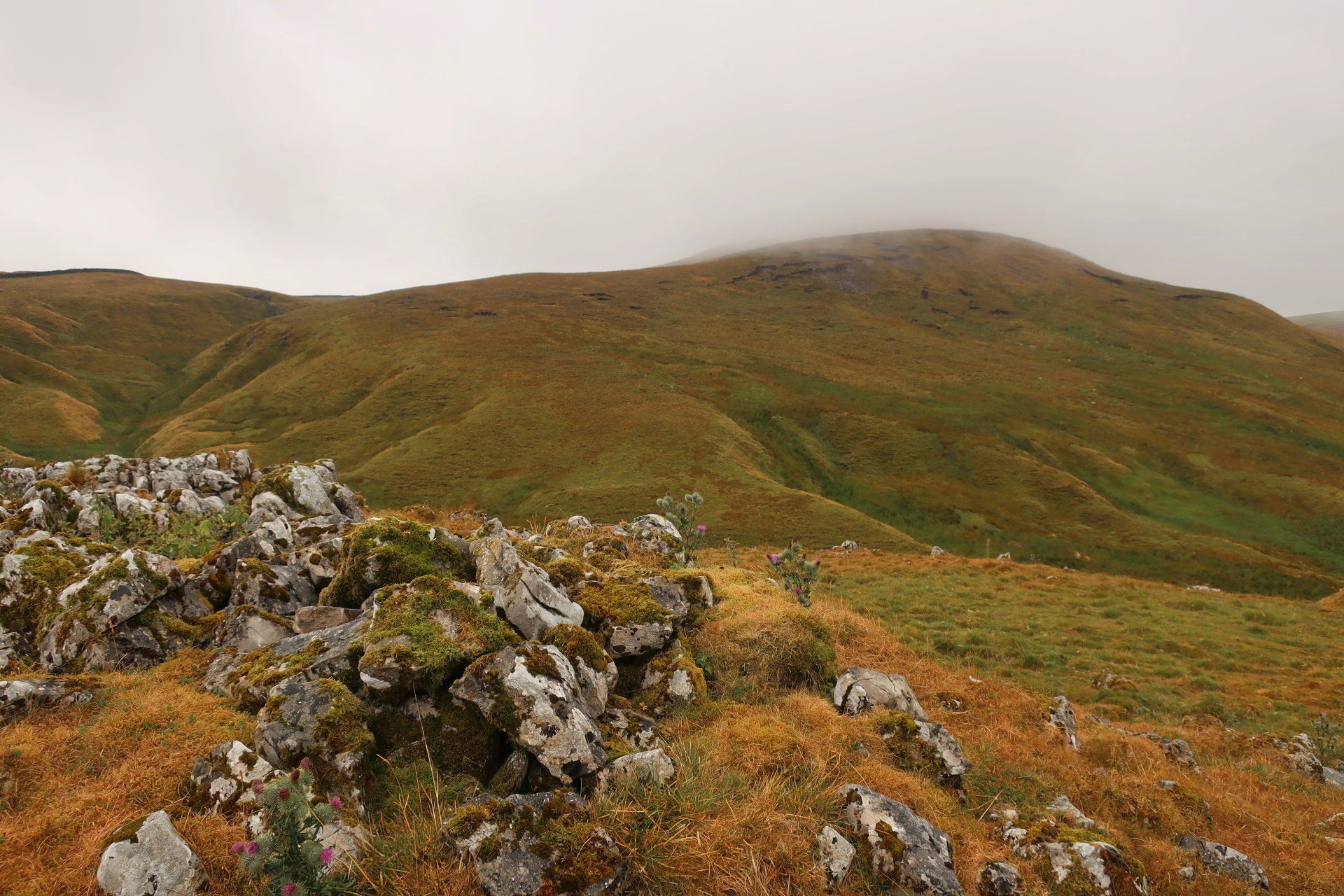 At the top there is a section of moorland and I get into wet gear as although the rain is relatively light the area is exposed and with a bit of a wind so I need to be wrapped up. I pass a group of youngsters about to set off, all kitted out and receiving instructions from their leader, maybe DOE expedition or something?