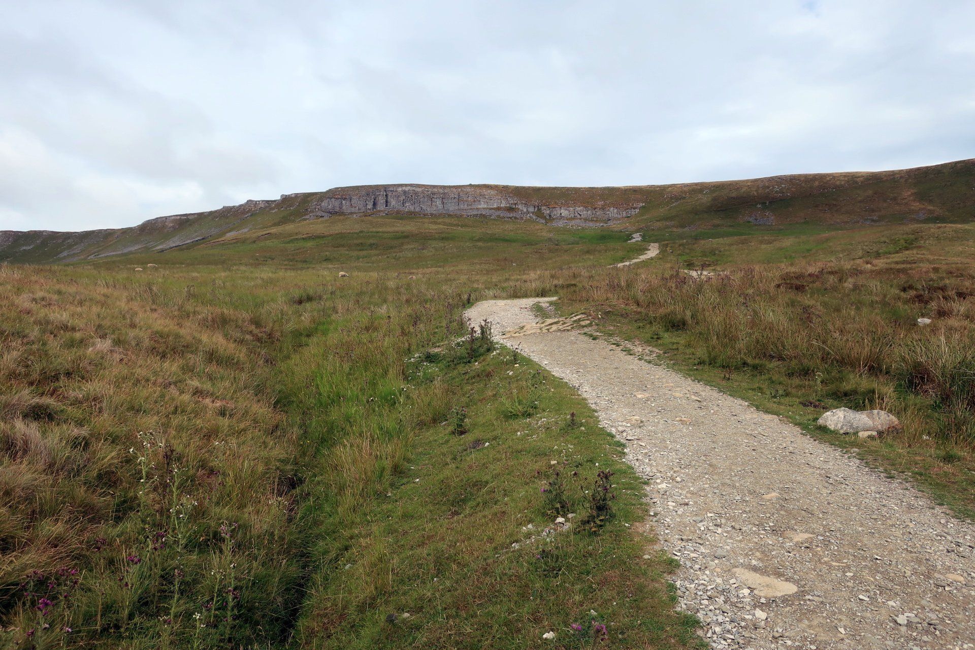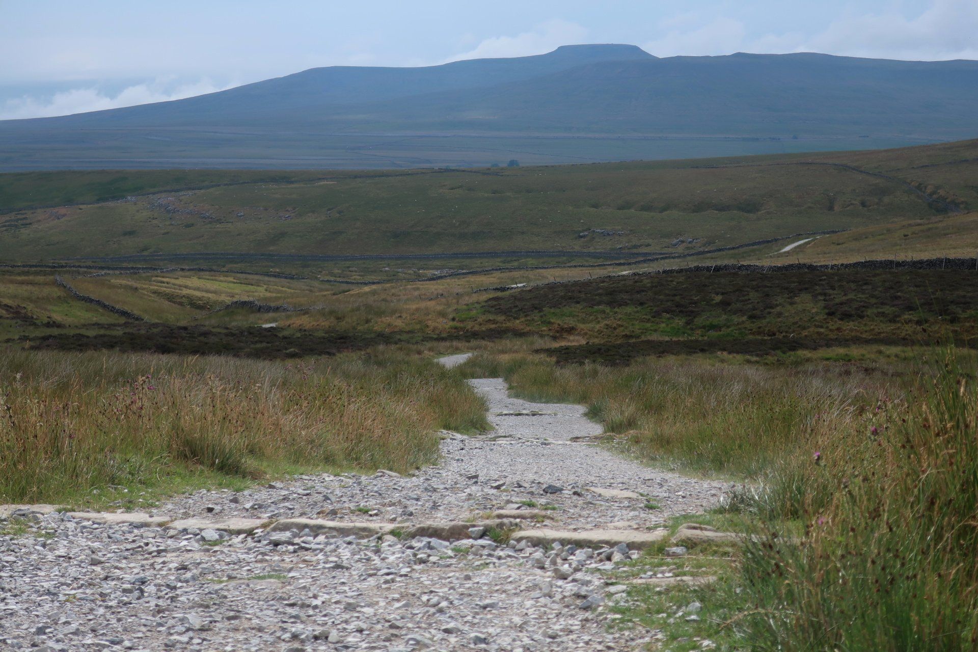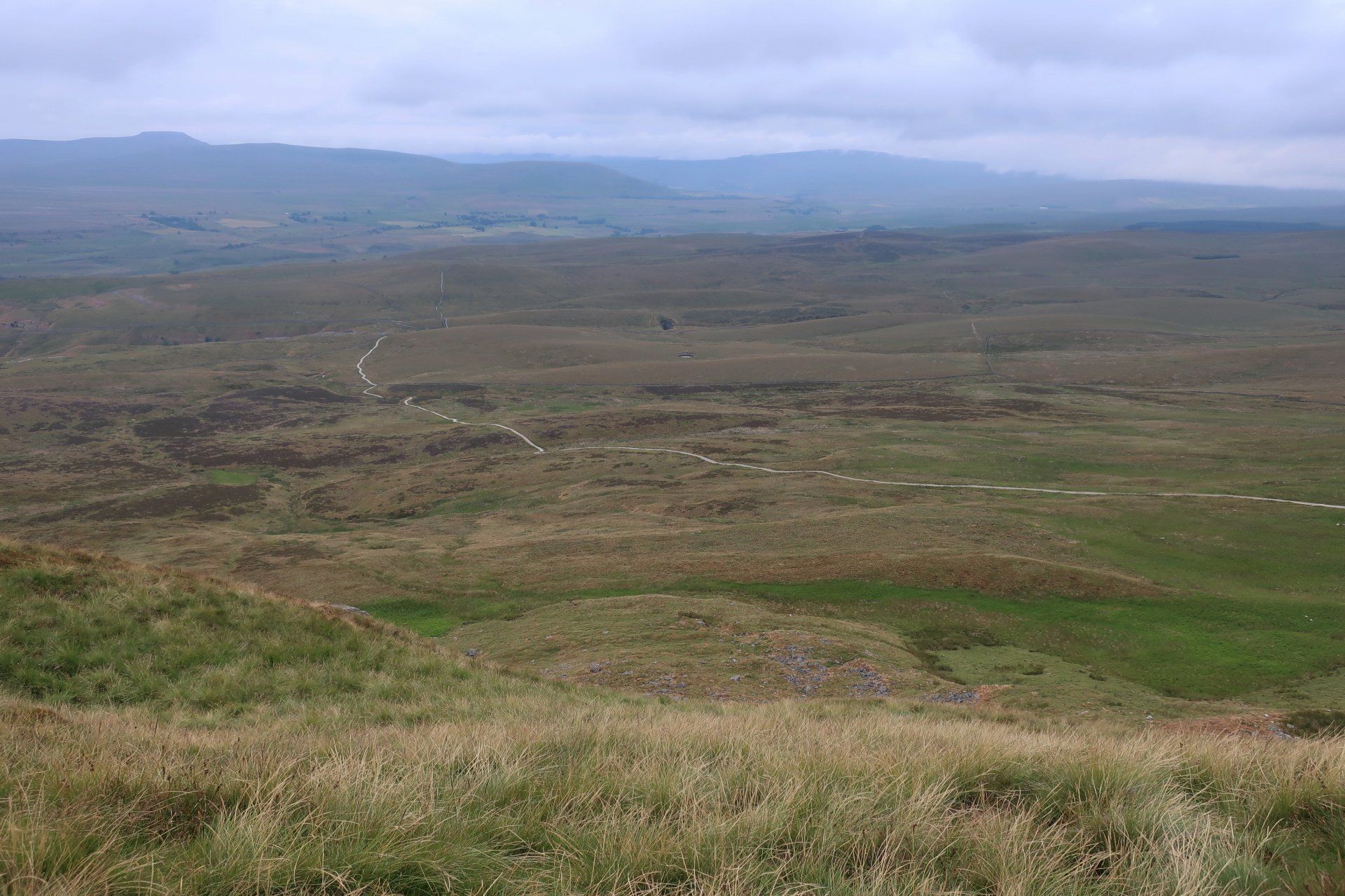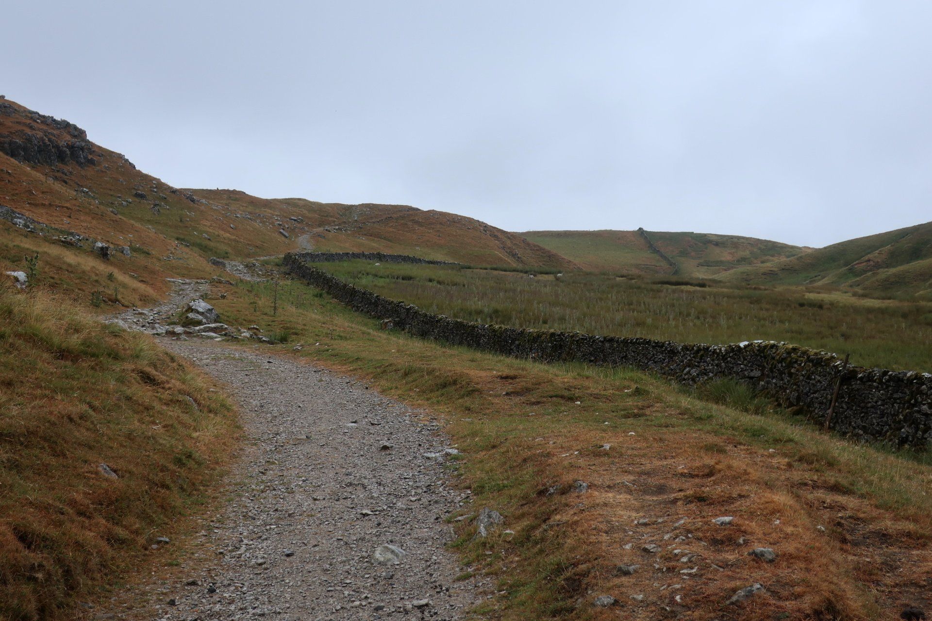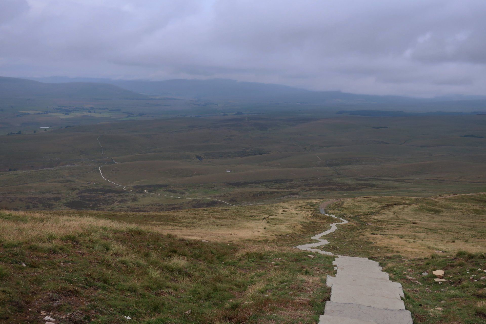 The path becomes a long, gentle descent and about a third of the way I stop for a break, have some food and take in the scene. Whilst still overcast, Ingleborough is clear to see, Whernside may be viewable but if so is lost in cloud. Having completed PYG – something I thought unlikely given the forecast at the start of the day – I am well pleased and I sit and reflect on my adventures to date. This is what I wanted from the DHW and it certainly is not disappointing me so far.