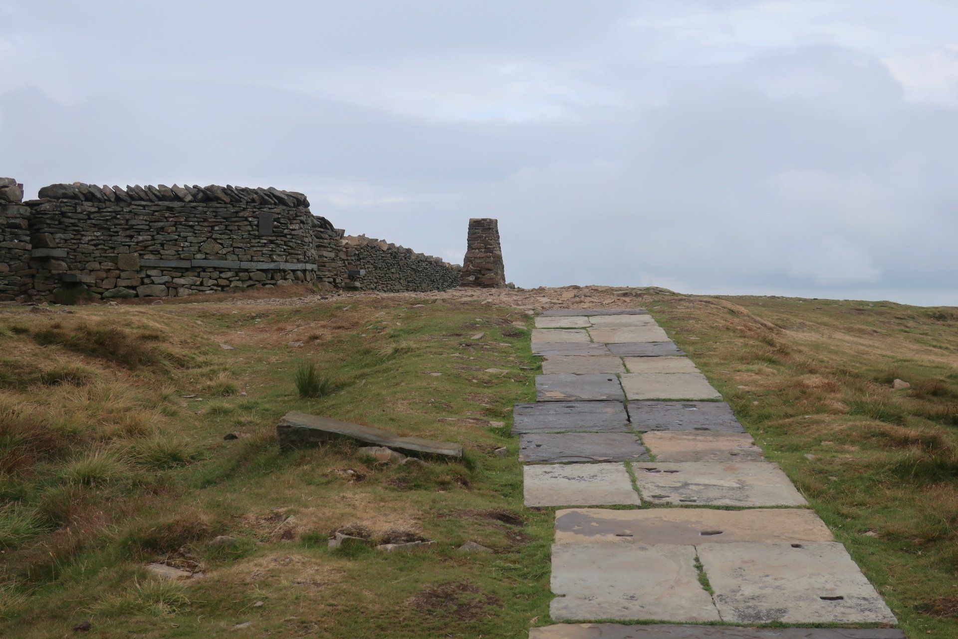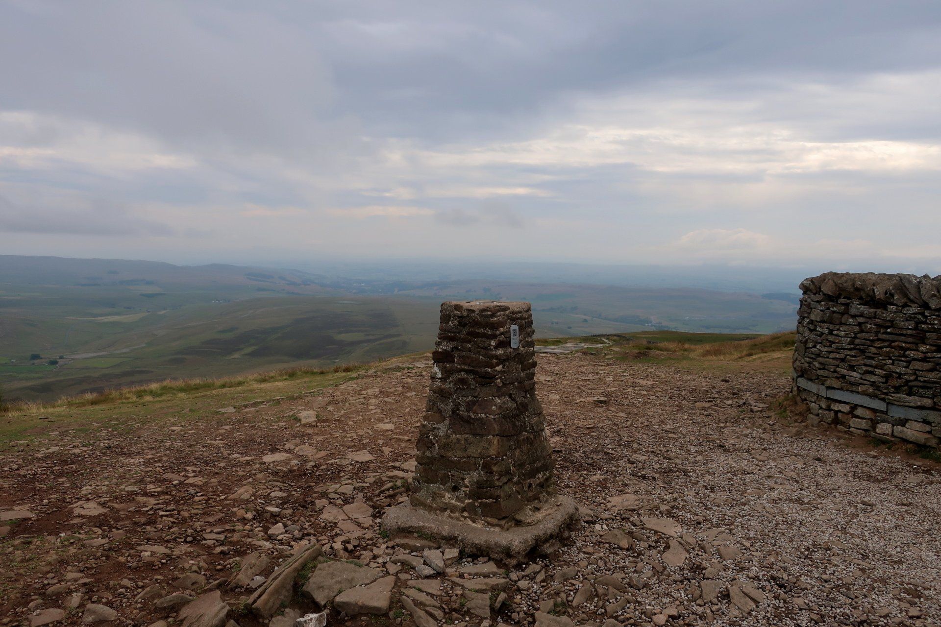 Some limestone flag stones form the final ascent to the summit and that longed for trig point (694m). I marvel at the view around me, the biggest factor being the scale, I am really aware of being so high up – did I really climb up here!